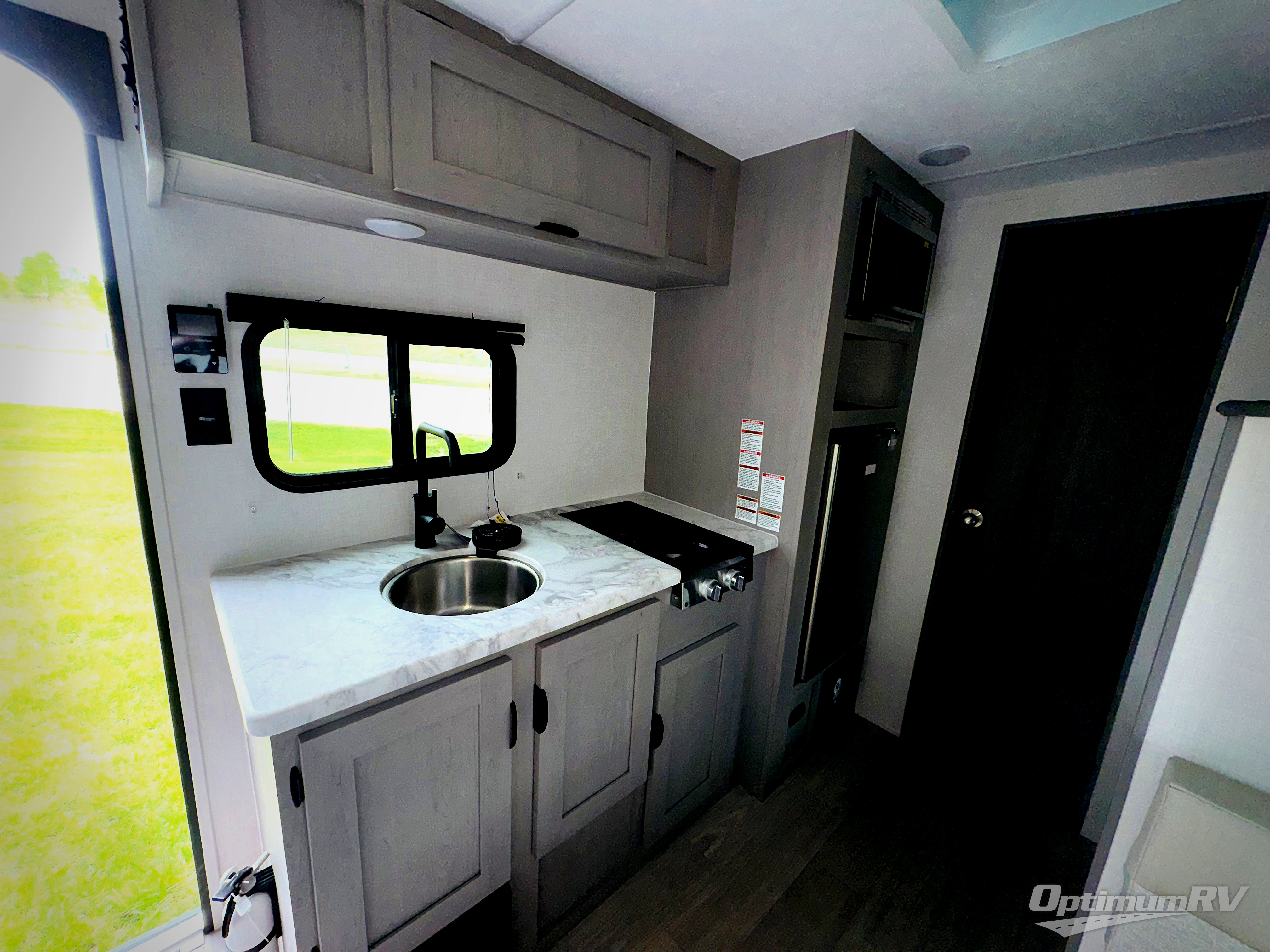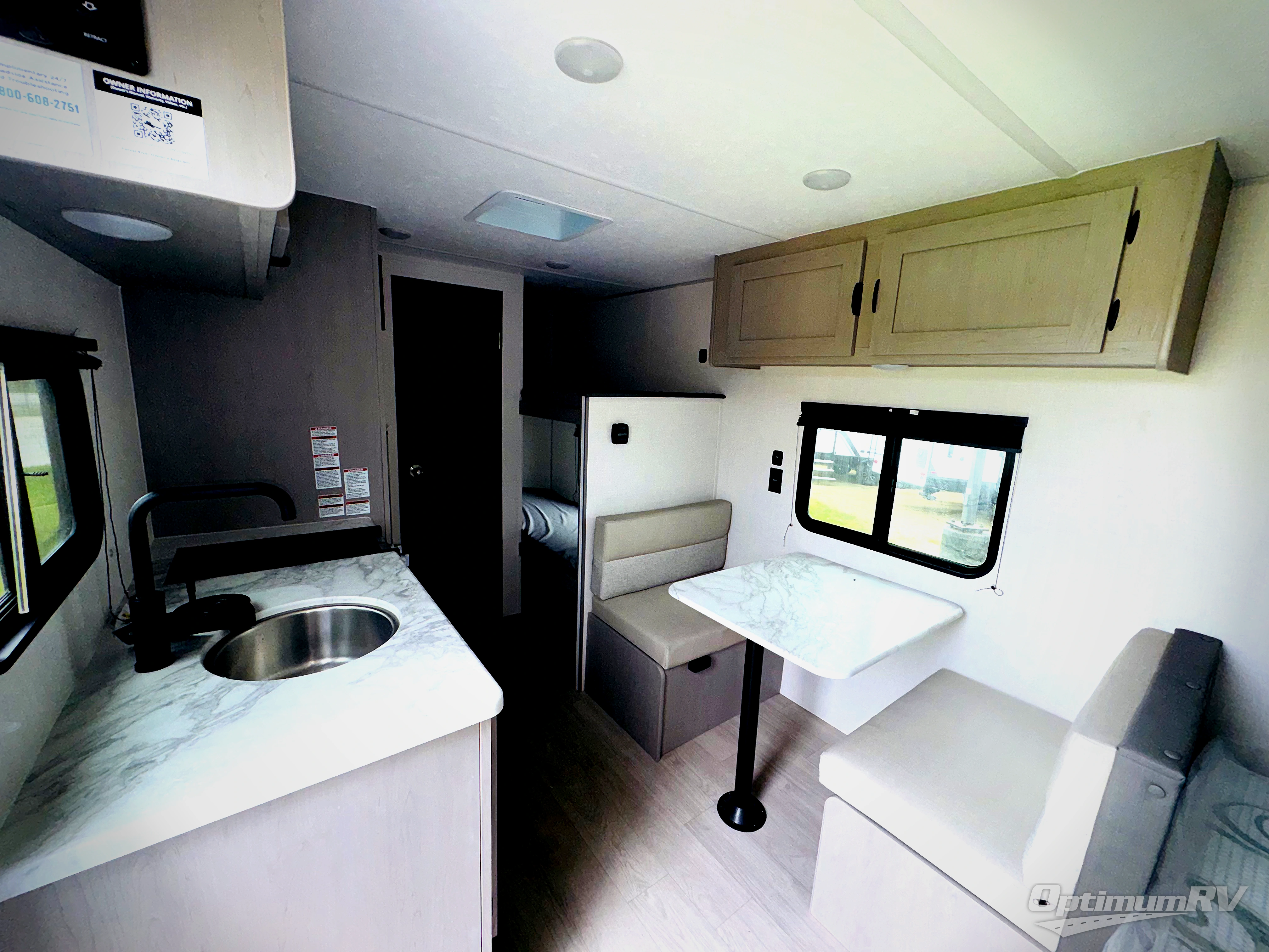 This is the perfect travel trailer for a family of four or five since it includes bunk beds for the kids, and a queen bed up front as well as a booth dinette that can be converted to sleep one more. There is an induction cooktop to cook meals on, and a sink to easily clean up each day. You can dine at the booth dinette or take your plate outdoors to sit under the 10' power awning with LED lighting. This model also includes a 24" x 36" shower to get cleaned up each day. Get an early start on family vacations with this travel trailer in tow!