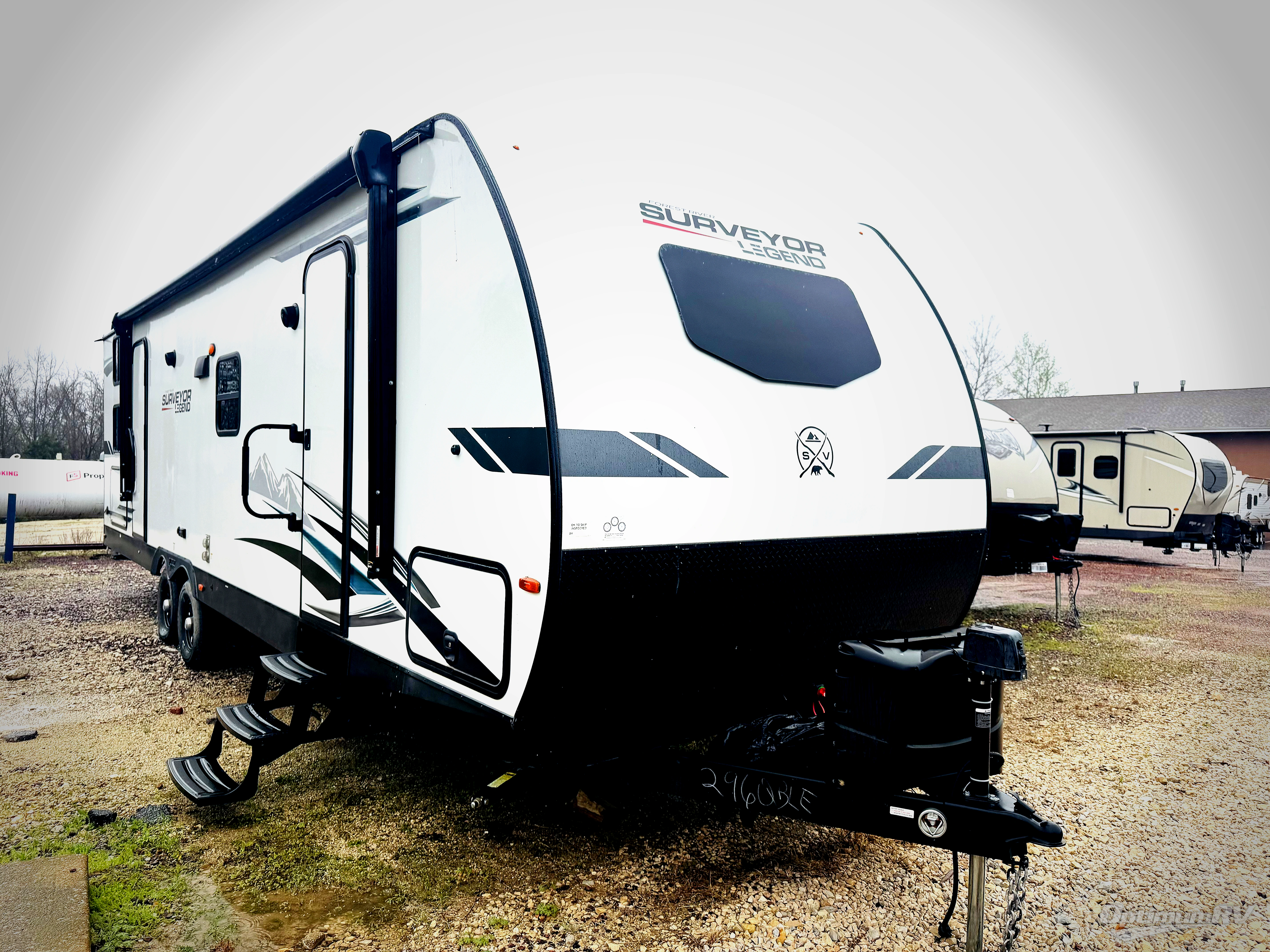 With any Surveyor Legend travel trailer by Forest River you will enjoy quality craftsmanship, convenient amenities, and at-home comforts. The Azdel composite panels provide a longer-lasting trailer, and the Lippert axles leaf spring suspension will make towing easier than ever. You will enjoy many interior comforts, such as modern frame edge cabinets, designer Shaw lino flooring, an Indura-Kleen Evergreen mattress, and EZ-access dinette storage to bring along board games, flashlights, and throw blankets. The magnetic baggage door catches allow you to easily pack up your gear, and the friction hinge entry door(s) will make coming and going smooth as ever. Each model includes a 30K BTU ducted furnace, or a 20K BTU furnace in the Sub-4's, a 15K high performance A/C, plus a fully enclosed and heated underbelly to keep you comfortable through spring, summer, fall, or winter!