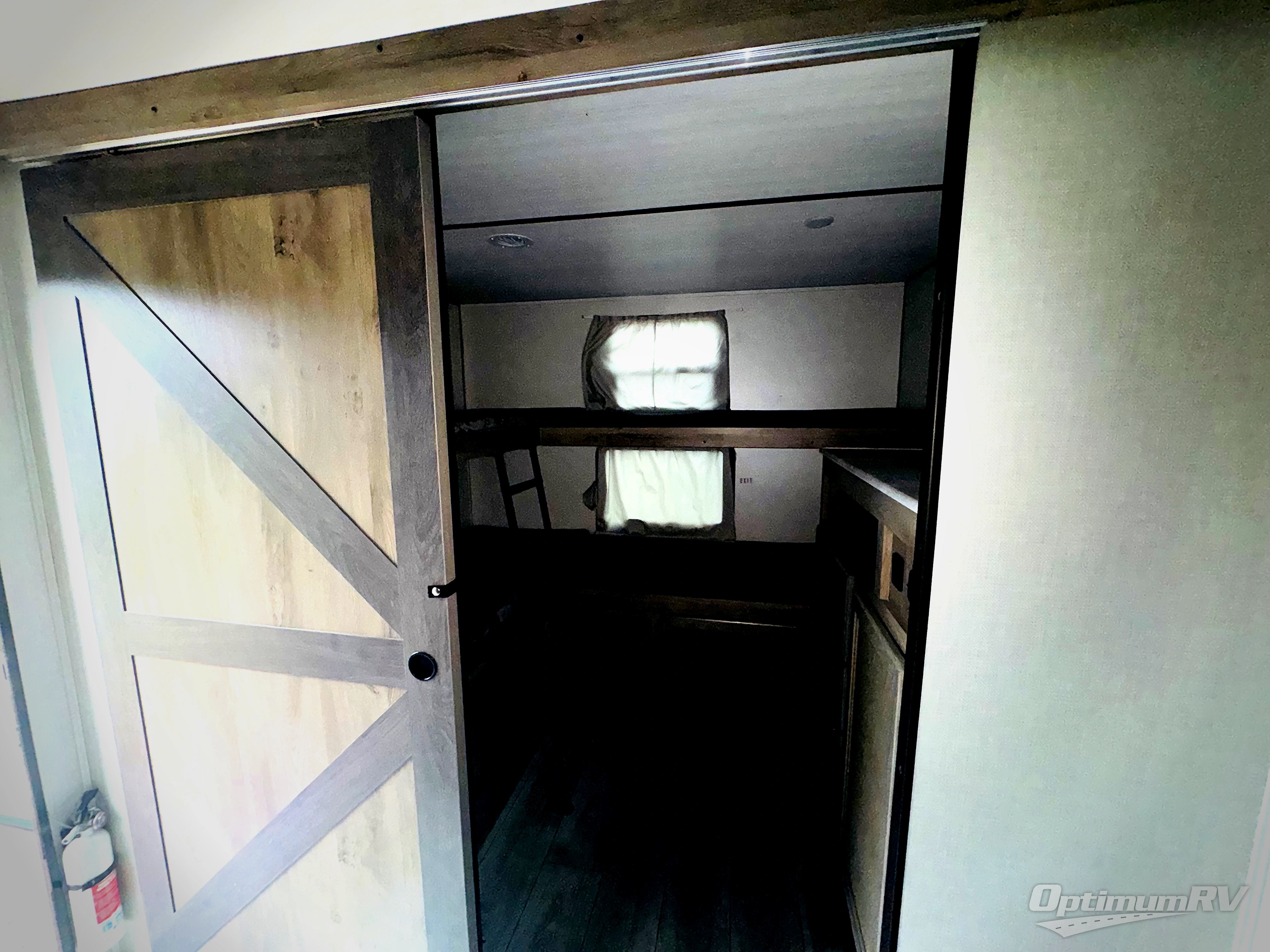 This spacious travel trailer is perfect for those who need plenty of sleeping space! There are four bunks in the bunkhouse for little ones or your friends, and the front master bedroom will feel just like home with its queen-size bed and dual drawers. You'll find a sofa and U-shaped dinette within the large slide in the main living area, and there is a walk-in pantry to store food, jackets, or umbrellas. Don't overlook the exterior that includes an outside kitchen, a 21' one touch electric awning, and outside storage!