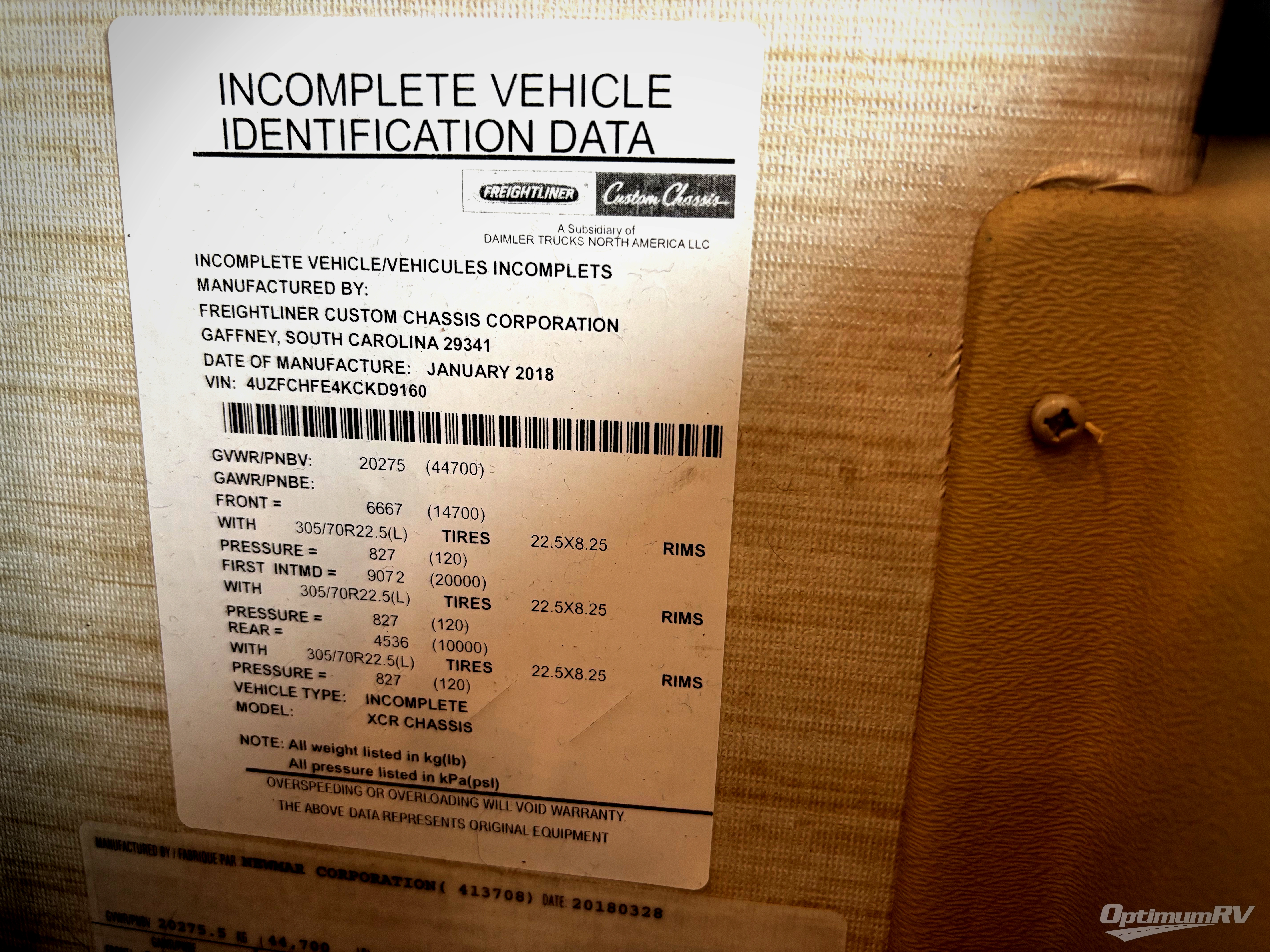 • VIN 4UZFCHFE4KCKD9160