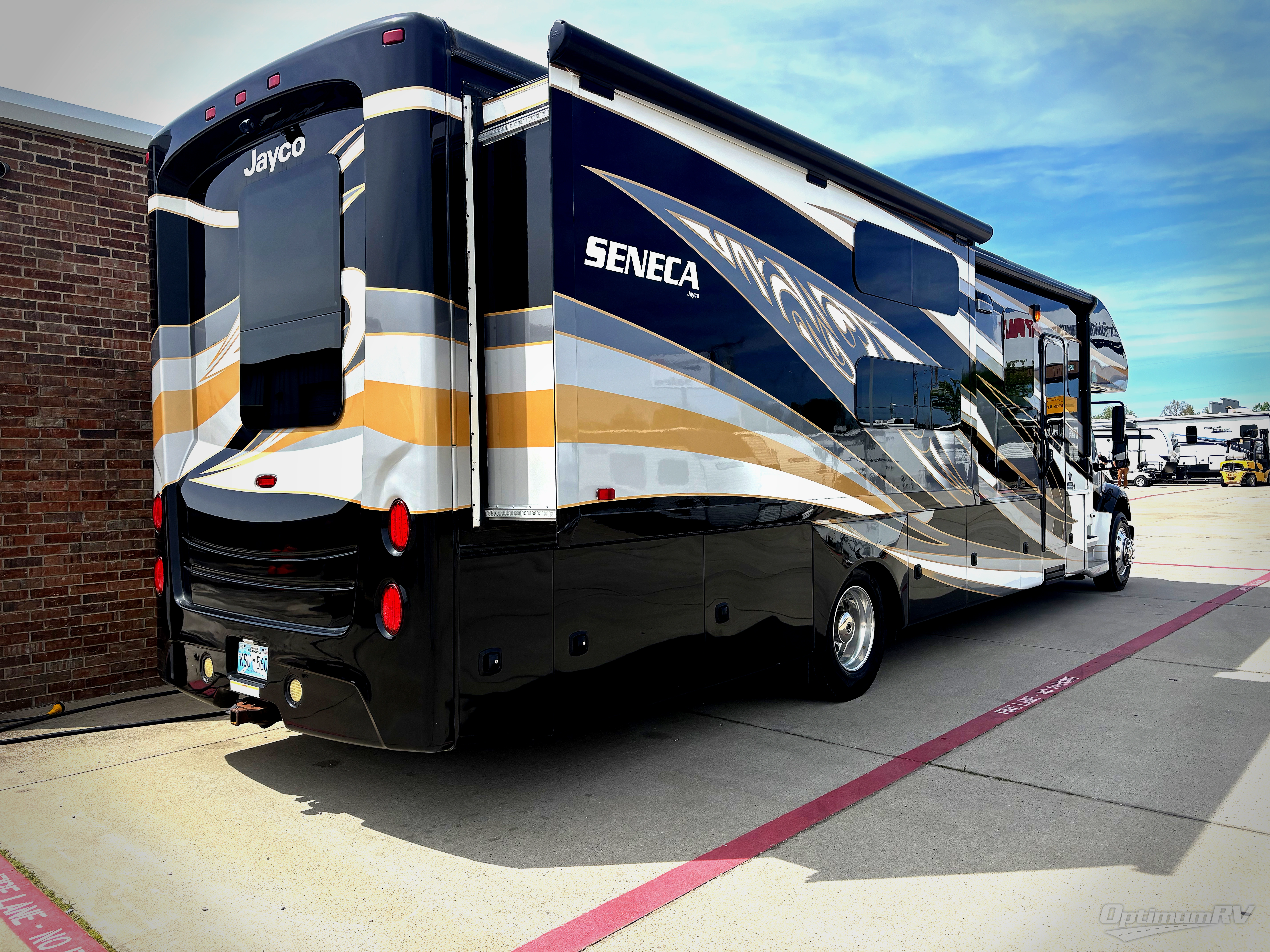 This Seneca 37FS class C diesel motor home by Jayco offers double slides for more interior space, a set of bunk beds for family and friends, and a cab-over queen bed, plus more!