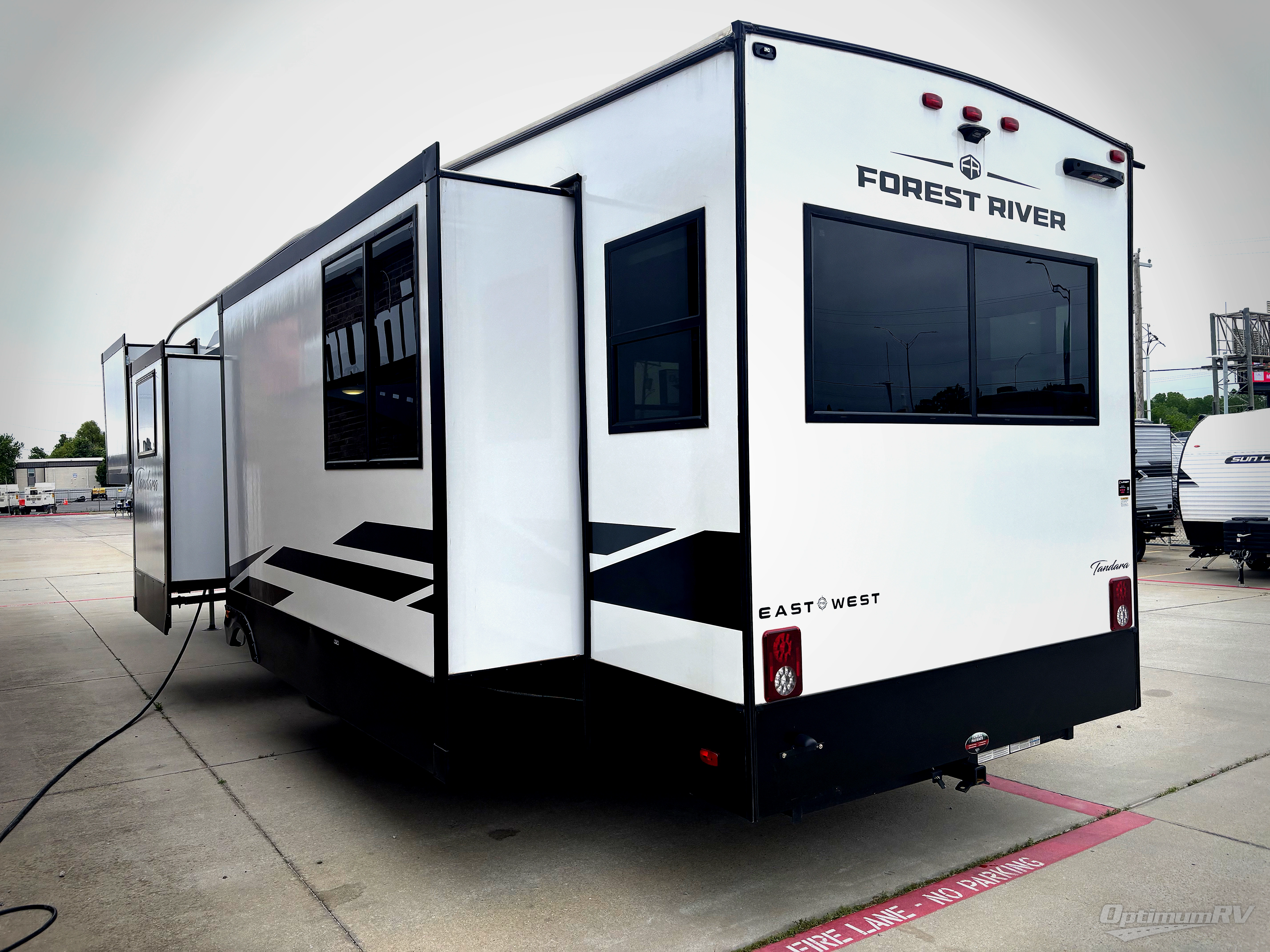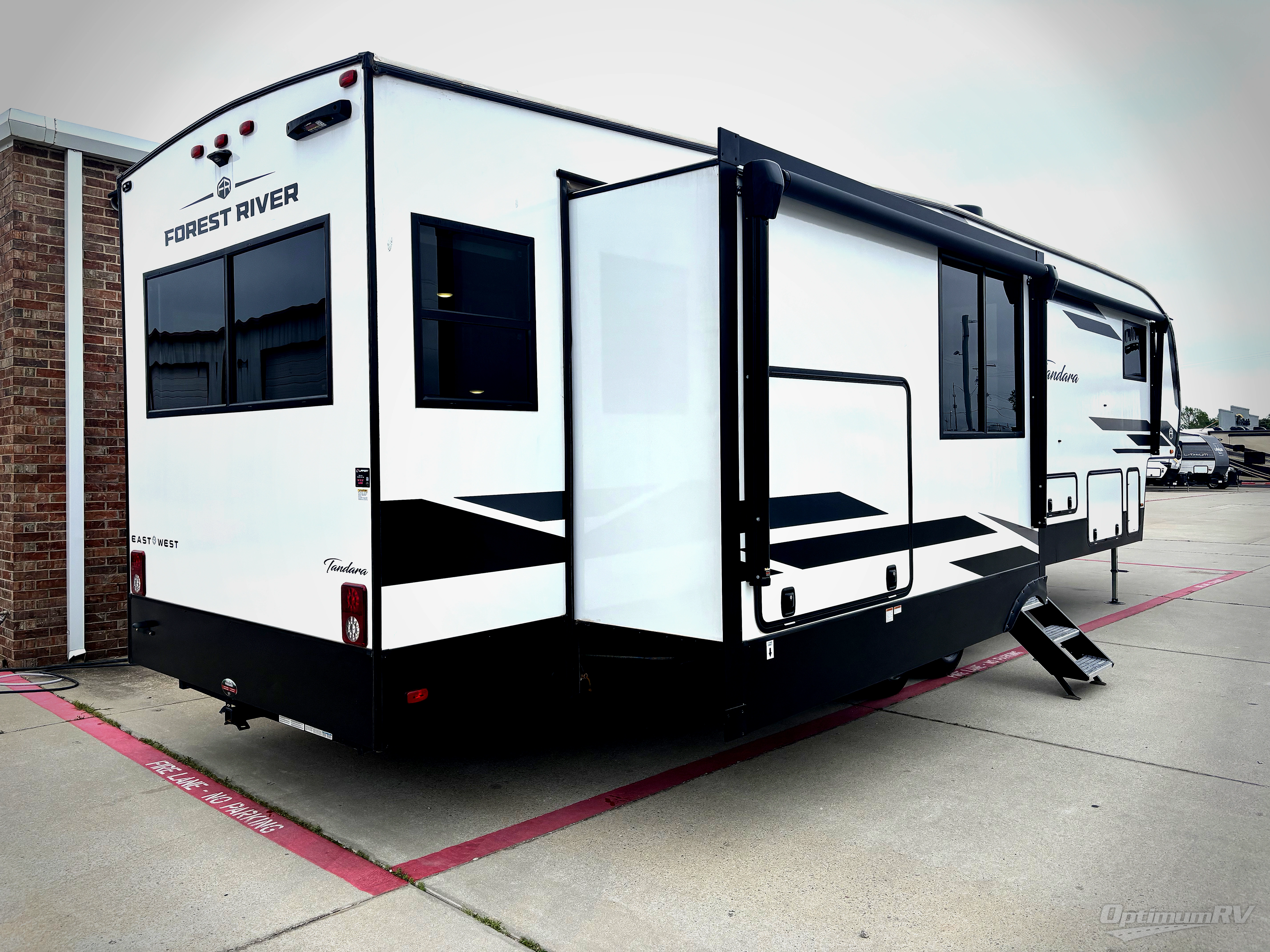 With any Tandara fifth wheel by EAST TO WEST, you will enjoy many standard features to make each trip enjoyable. The Tandara Luxury Package includes a universal all-in-one docking station, a 60k BTU on-demand tankless water heater, a 50" LED Smart TV, plus more depending on the model you choose. You will also appreciate the Tandara Extended Season Package with ductless flooring, dual attic vents, plus a heated, insulated and enclosed underbelly for added protection. Each model features Alphaply TPO roofing and a slick gel coated fiberglass exterior, and the Tandara Towing Package will make each journey smooth. Head inside to find LED lighting, ball bearing full extension drawer guides, oversized underbed storage, and and many more comforts!