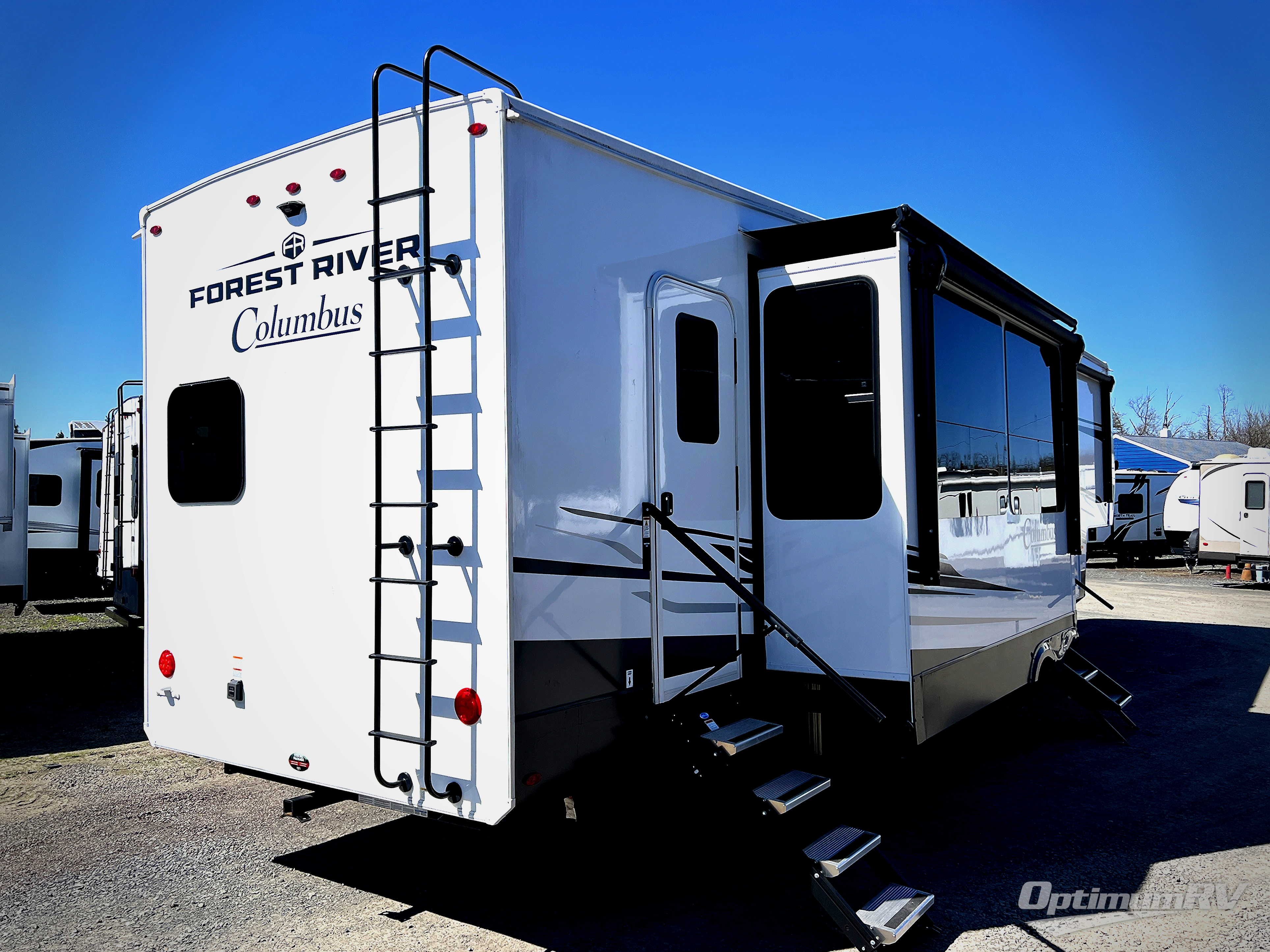 Experience a different camping life with residential furnishings and high end features in each one of these Palomino Columbus fifth wheels! The 101" wide body lets you walk around more throughout and the all-welded aluminum-frame superstructure has a snap-in ceiling molding to hold up through every adventure. Don't leave any of your gear behind either when you can easily store it in the climate controlled drop frame storage area. On the exterior, you'll find a heated utility convenience center, an outside sprayer to keep the dirt outside where it belongs, and magnetic compartment door holds to keep them from falling on you as you grab your items. Plus, there are some modern features that will really seal the deal like the Wi-Fi Booster with 4G LTE capability prep, upgraded true solid-surface countertops, power theater seating with USB charging, and a 260W solar panel for off-grid camping!