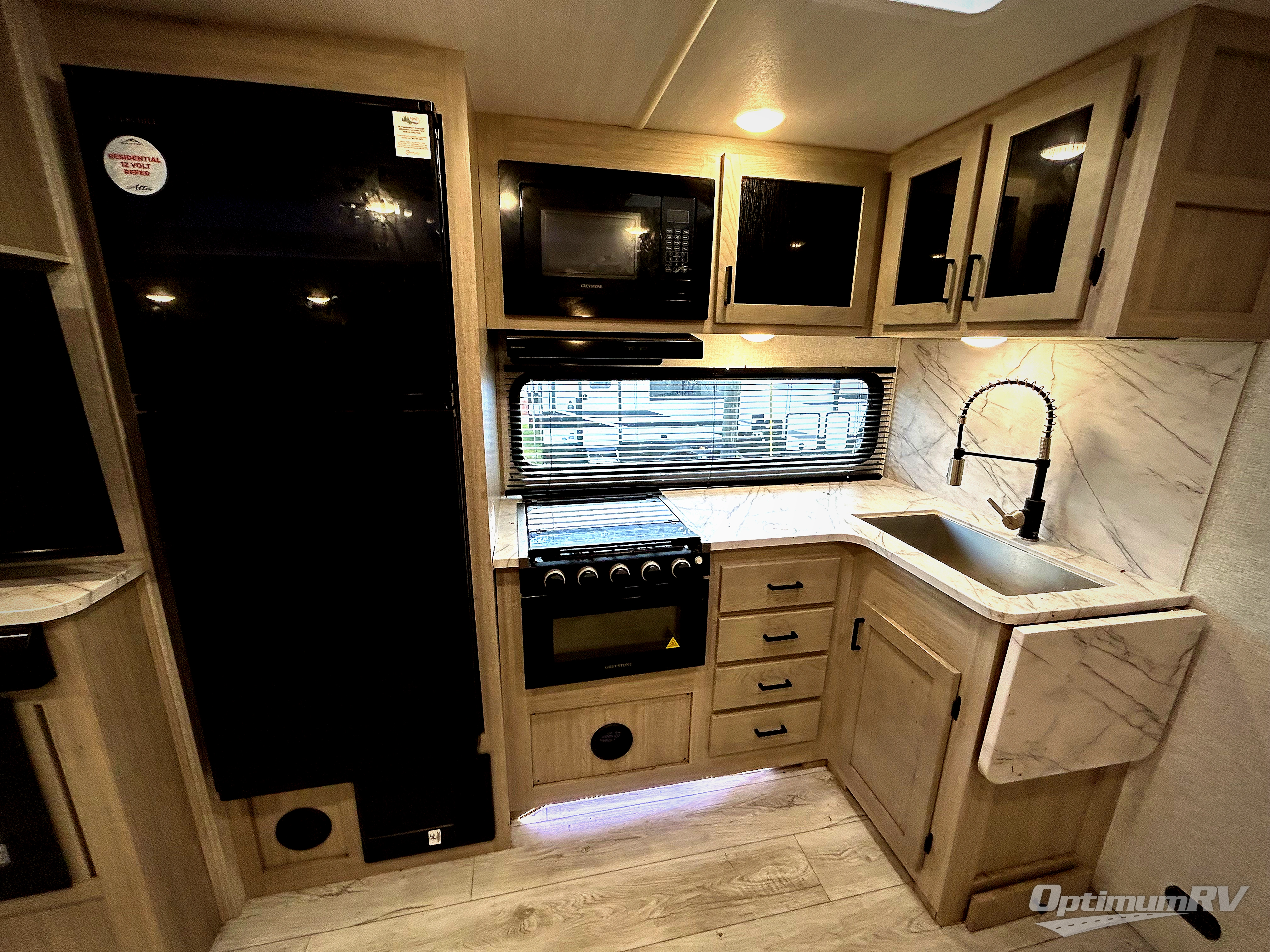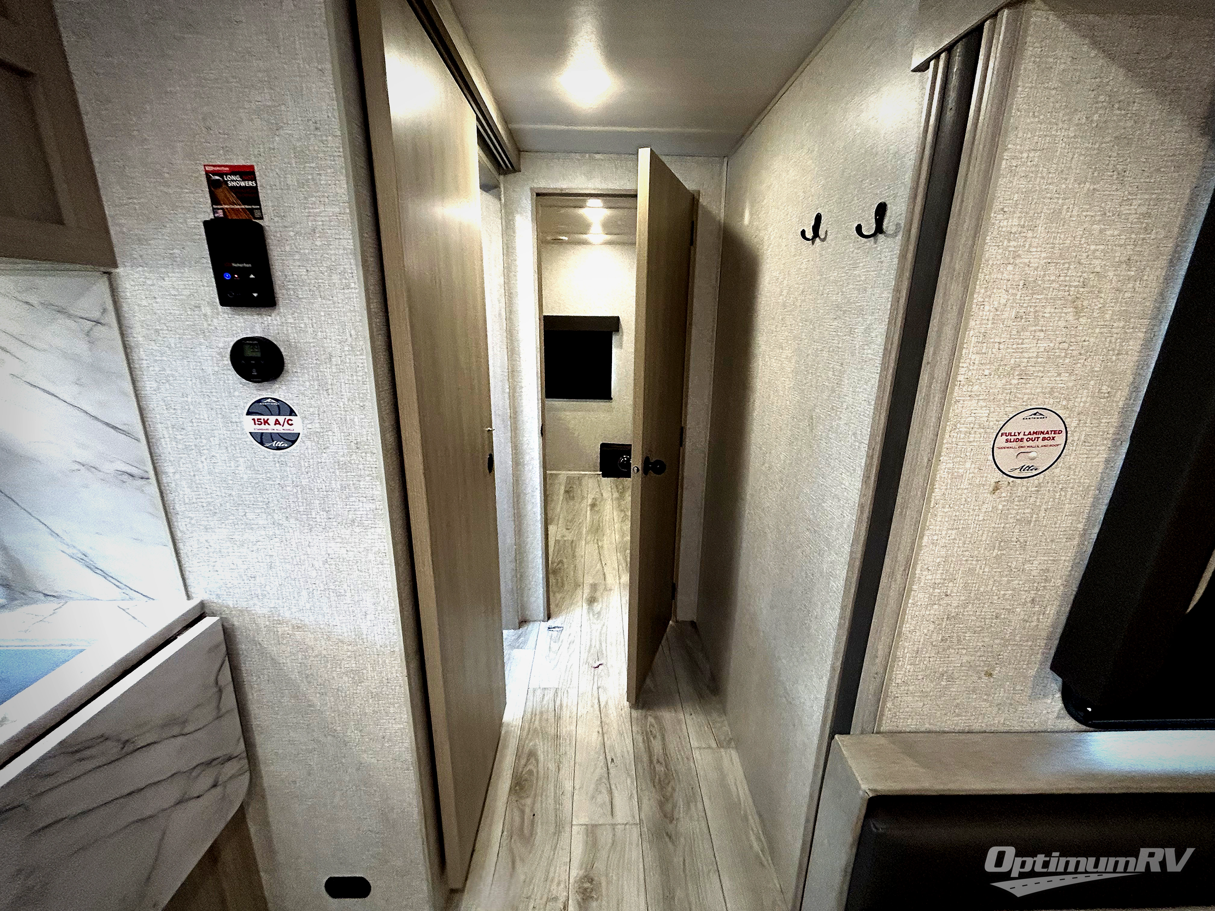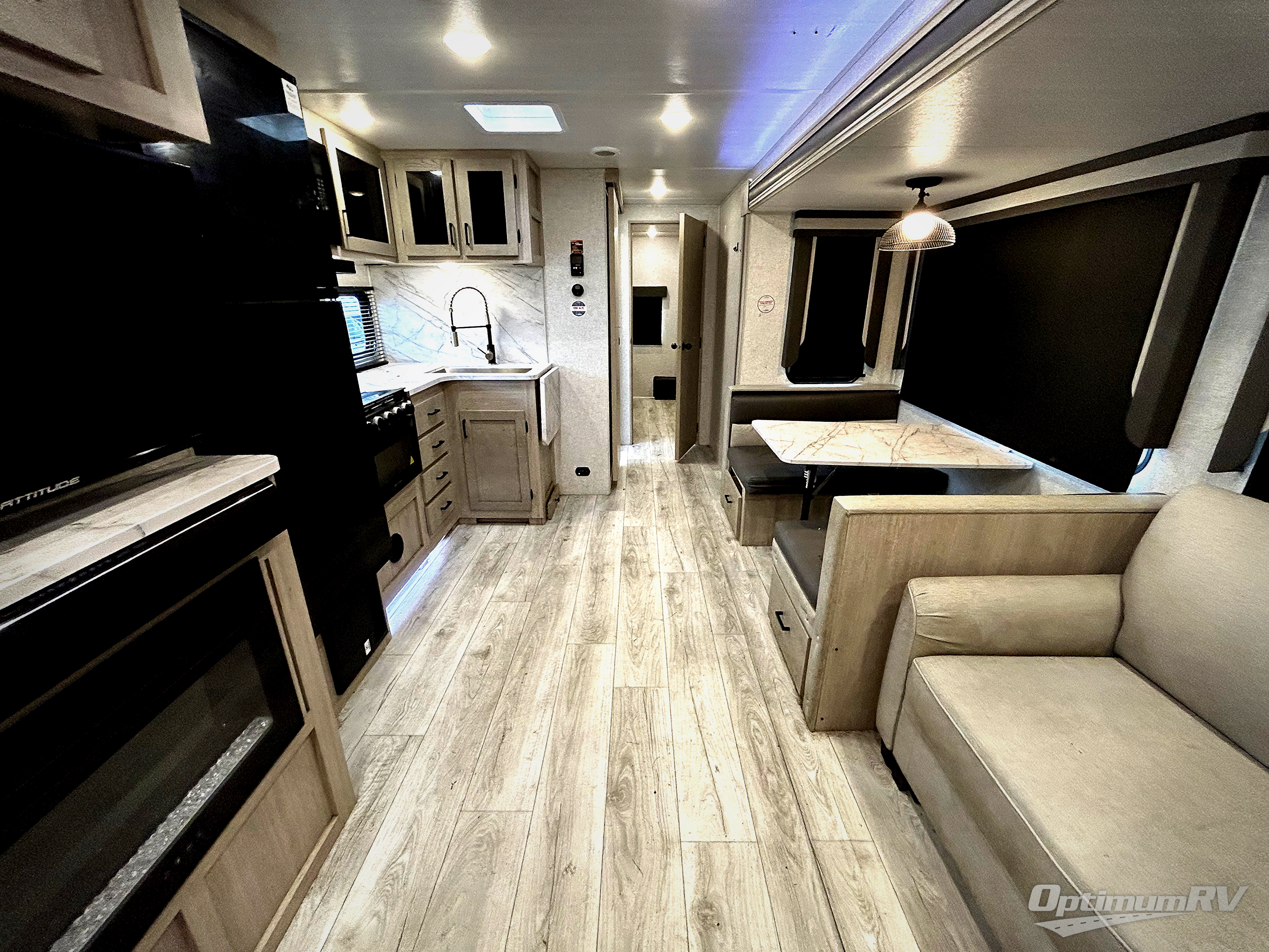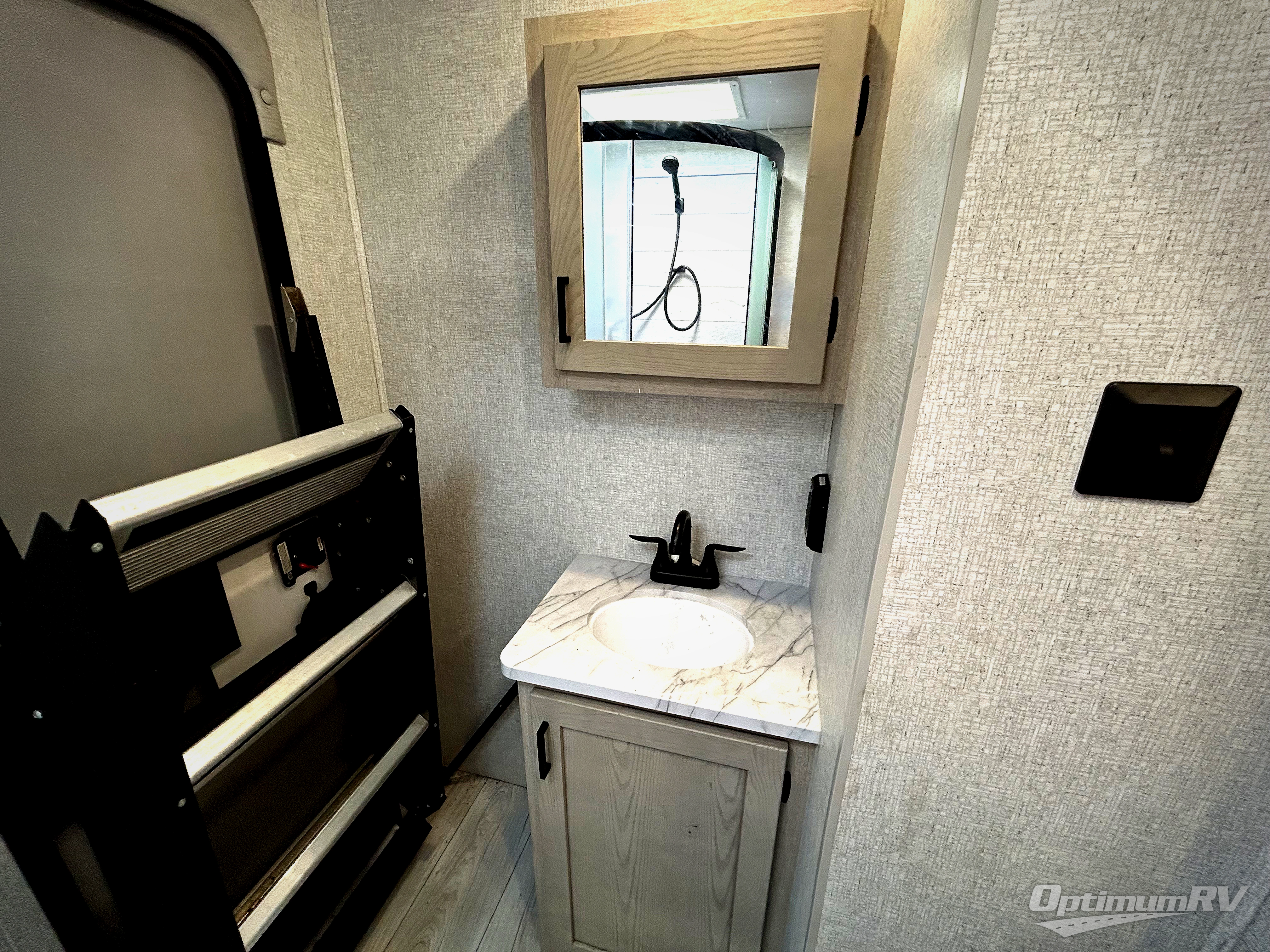 If you're looking for a travel trailer to take tailgating, this Alta model is the one! After you've unloaded the pass-through storage and set up the 21' power awning, start lunch on the outside kitchen! Since there are dual entry doors you can enter in through the main living area, or the full bath for convenience. The little ones are sure to spend most of their time in the rear bunkhouse that includes a flip-up bunk under the sofa, plus a second bunk across the room. The adults can visit at the booth dinette or on the tri-fold sofa, and check out the front private bedroom with sliding doors and a king bed for all-around comfort!