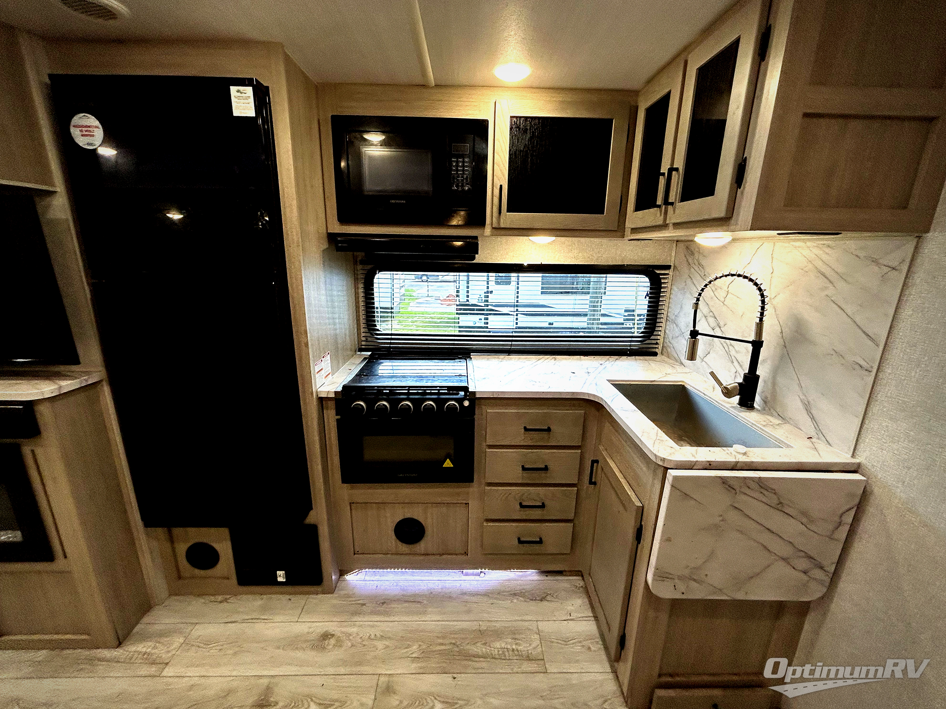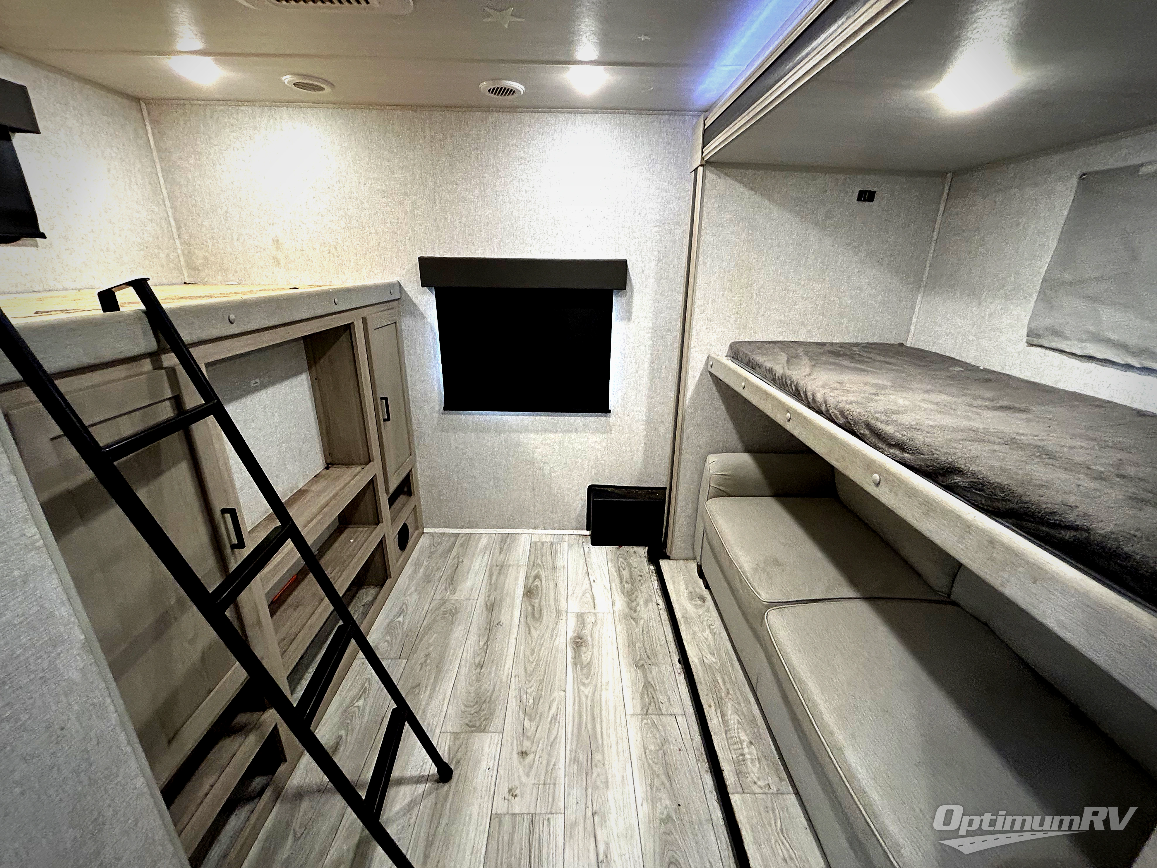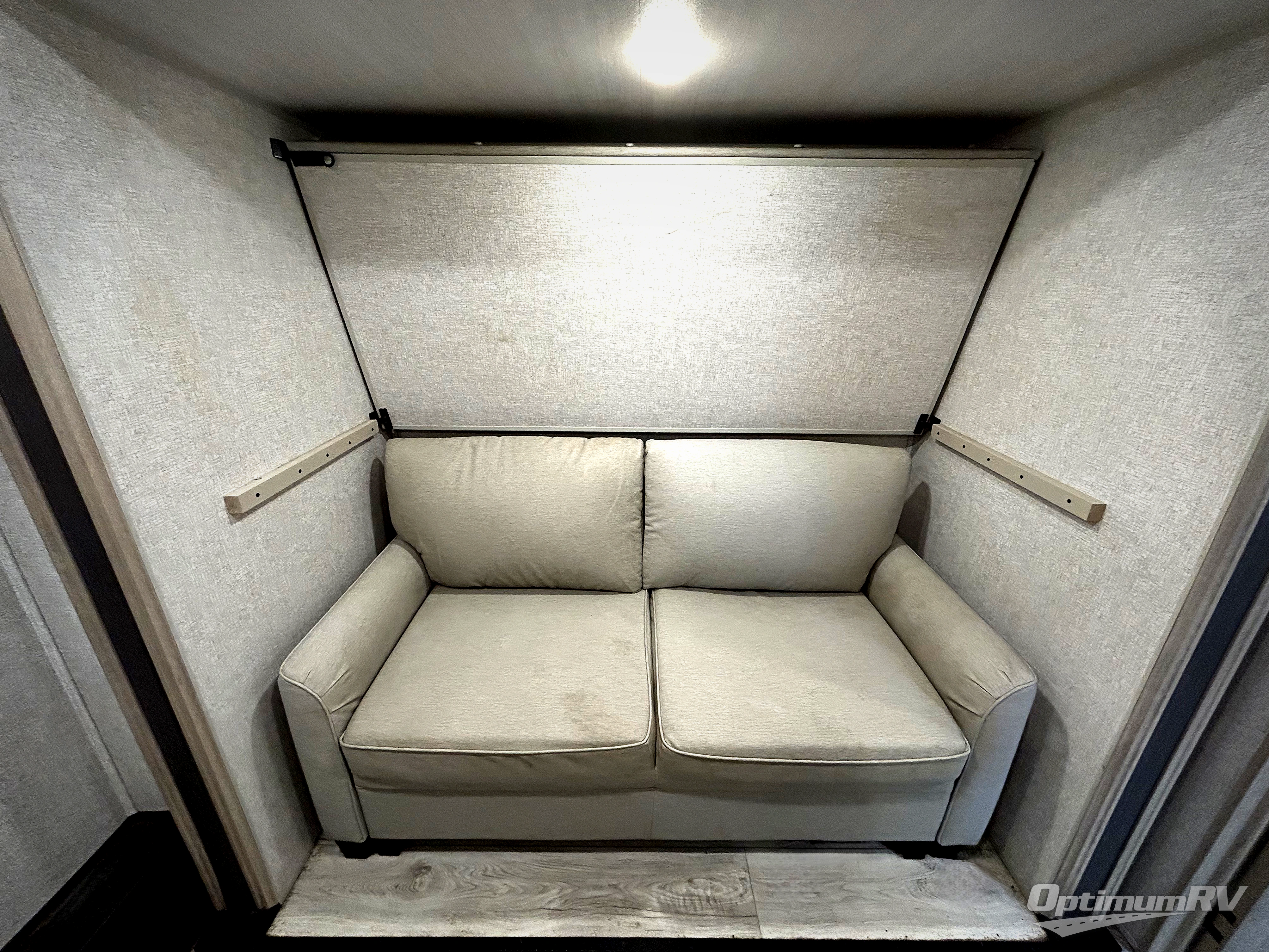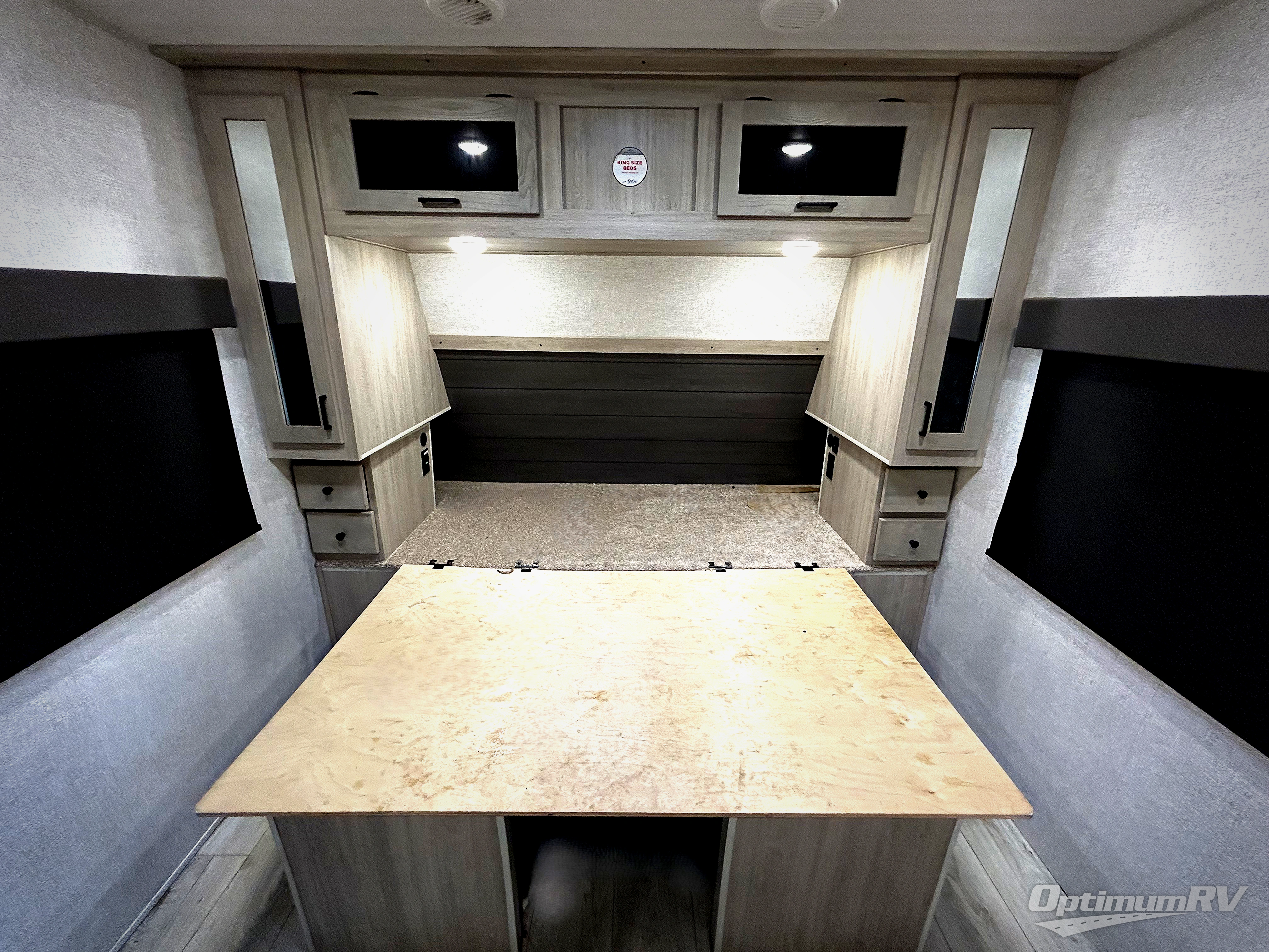 If you're looking for a travel trailer to take tailgating, this Alta model is the one! After you've unloaded the pass-through storage and set up the 21' power awning, start lunch on the outside kitchen! Since there are dual entry doors you can enter in through the main living area, or the full bath for convenience. The little ones are sure to spend most of their time in the rear bunkhouse that includes a flip-up bunk under the sofa, plus a second bunk across the room. The adults can visit at the booth dinette or on the tri-fold sofa, and check out the front private bedroom with sliding doors and a king bed for all-around comfort!
