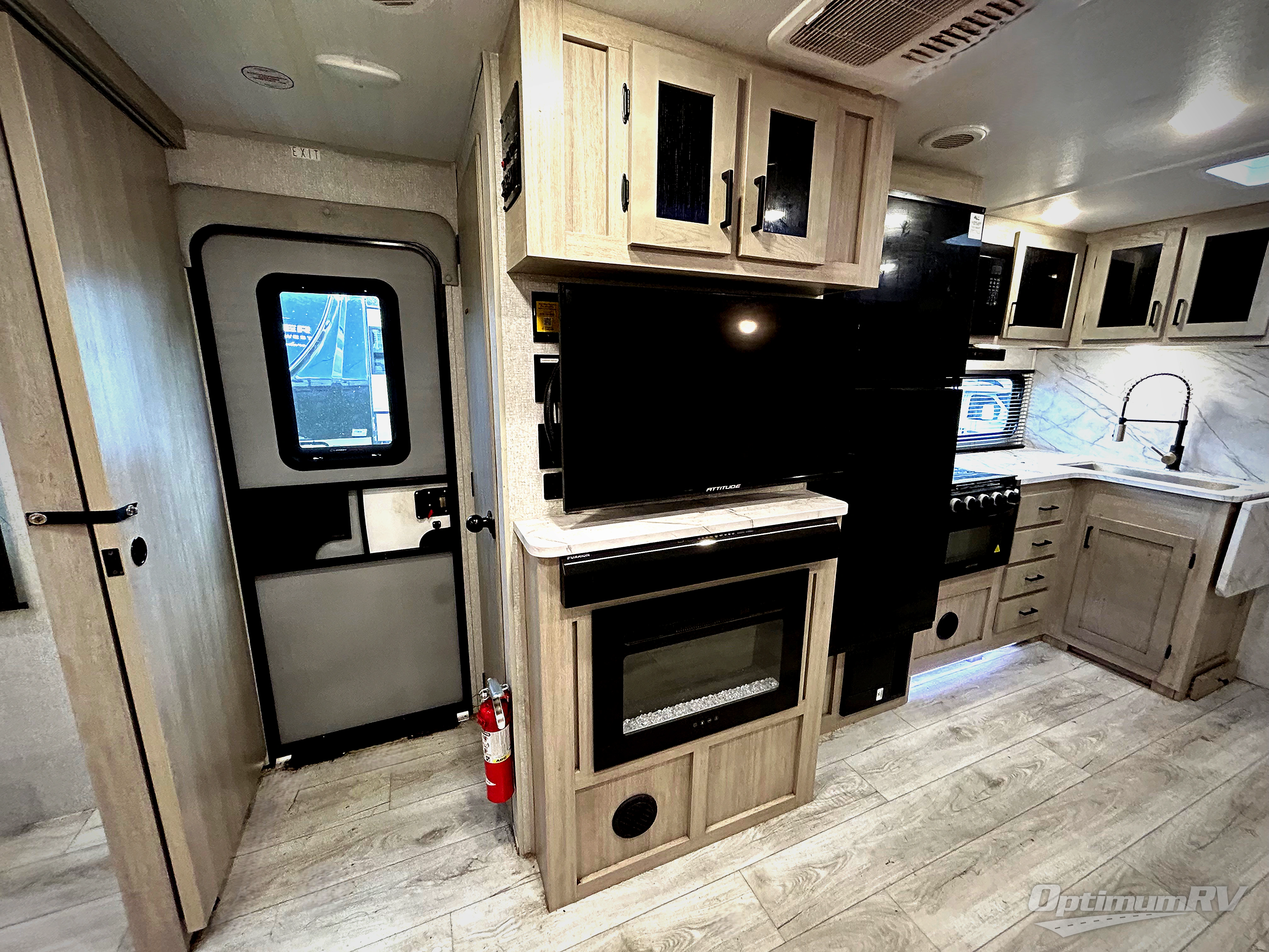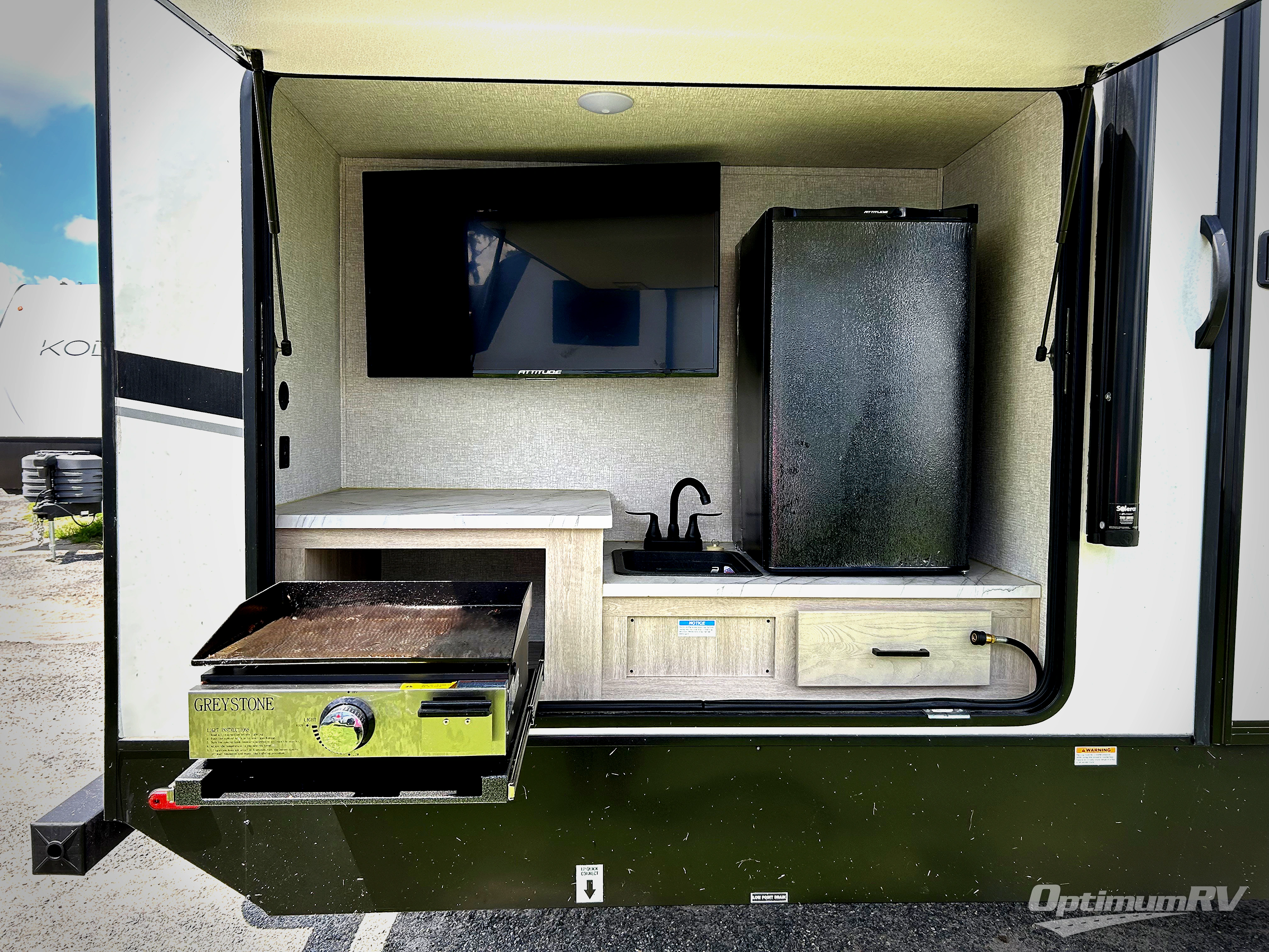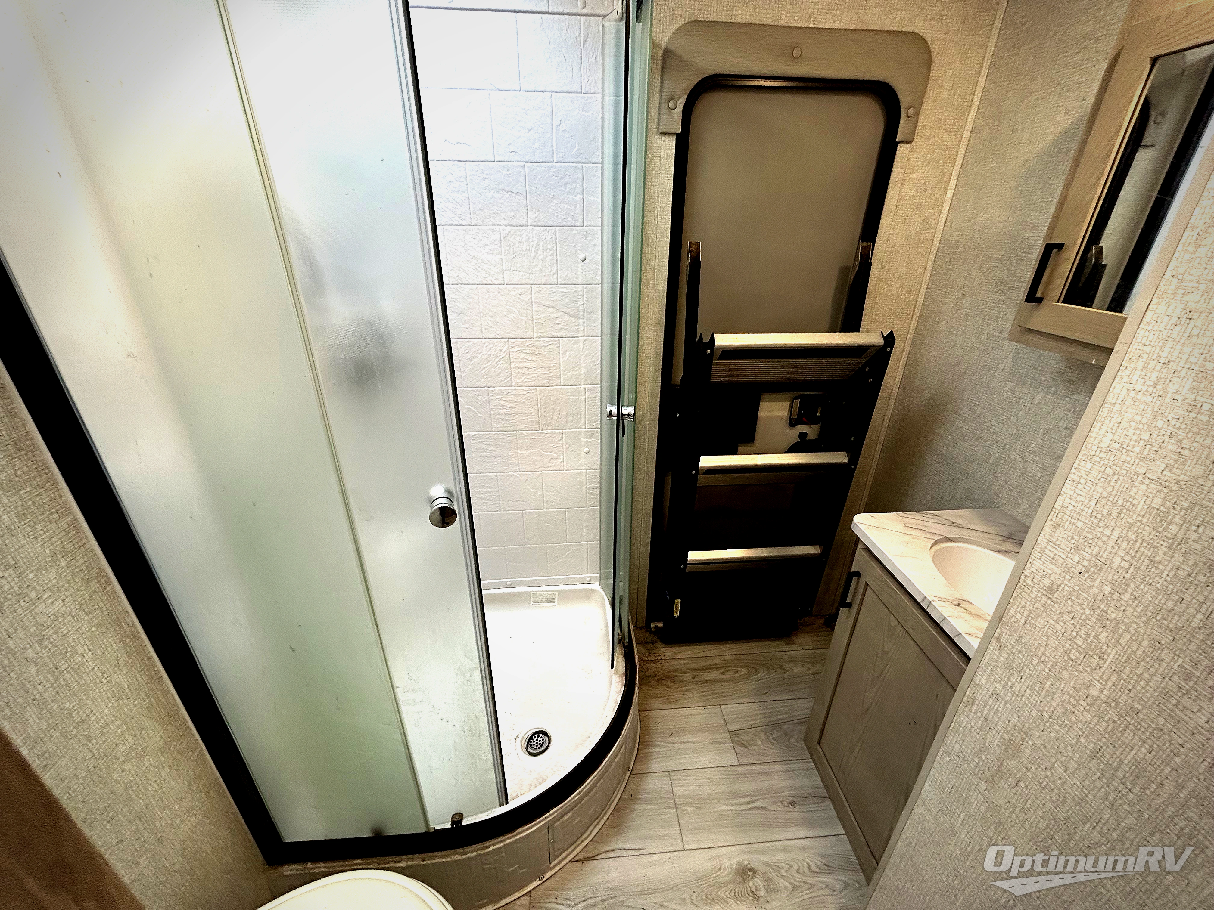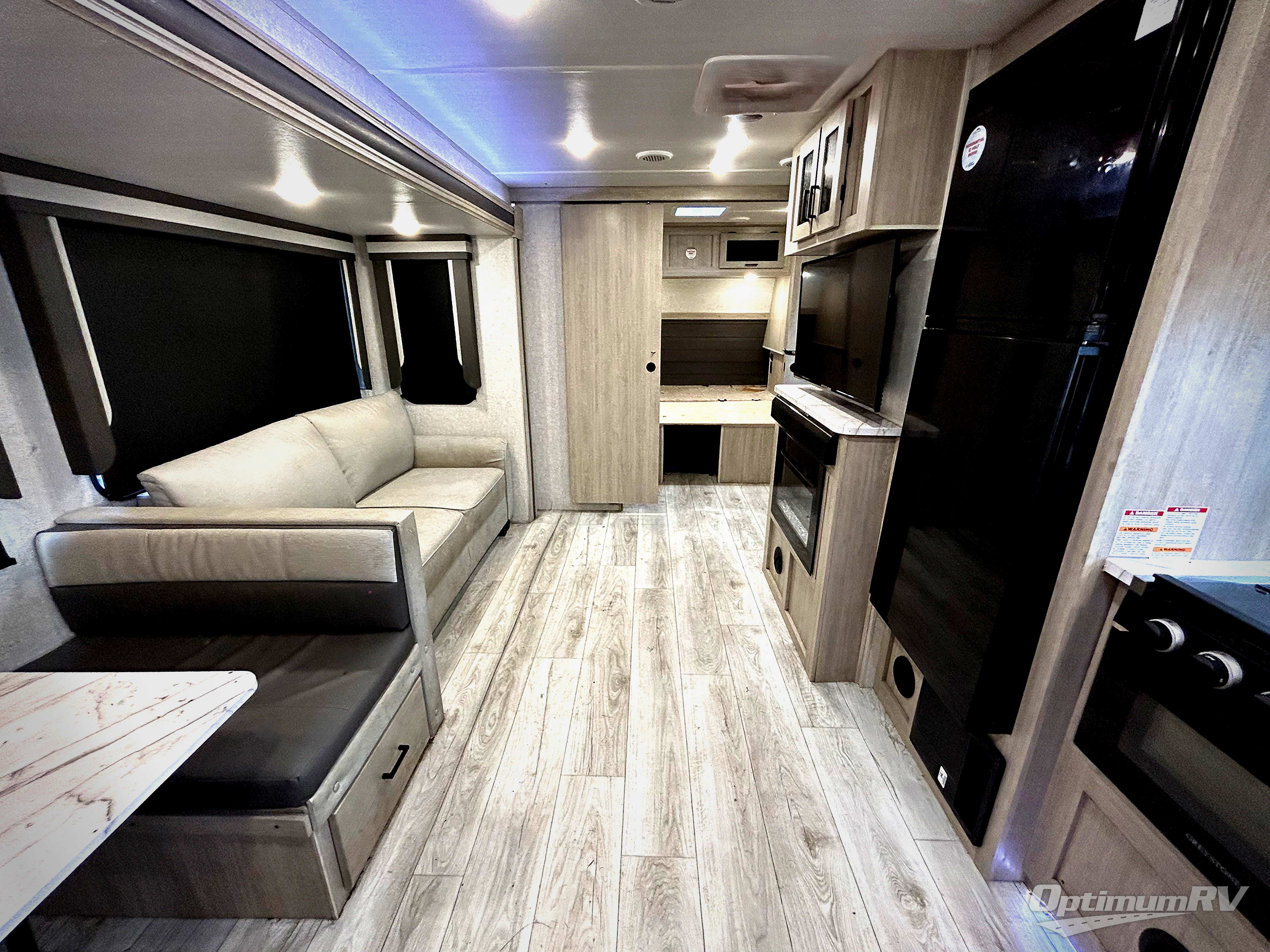 If you're looking for a travel trailer to take tailgating, this Alta model is the one! After you've unloaded the pass-through storage and set up the 21' power awning, start lunch on the outside kitchen! Since there are dual entry doors you can enter in through the main living area, or the full bath for convenience. The little ones are sure to spend most of their time in the rear bunkhouse that includes a flip-up bunk under the sofa, plus a second bunk across the room. The adults can visit at the booth dinette or on the tri-fold sofa, and check out the front private bedroom with sliding doors and a king bed for all-around comfort!
