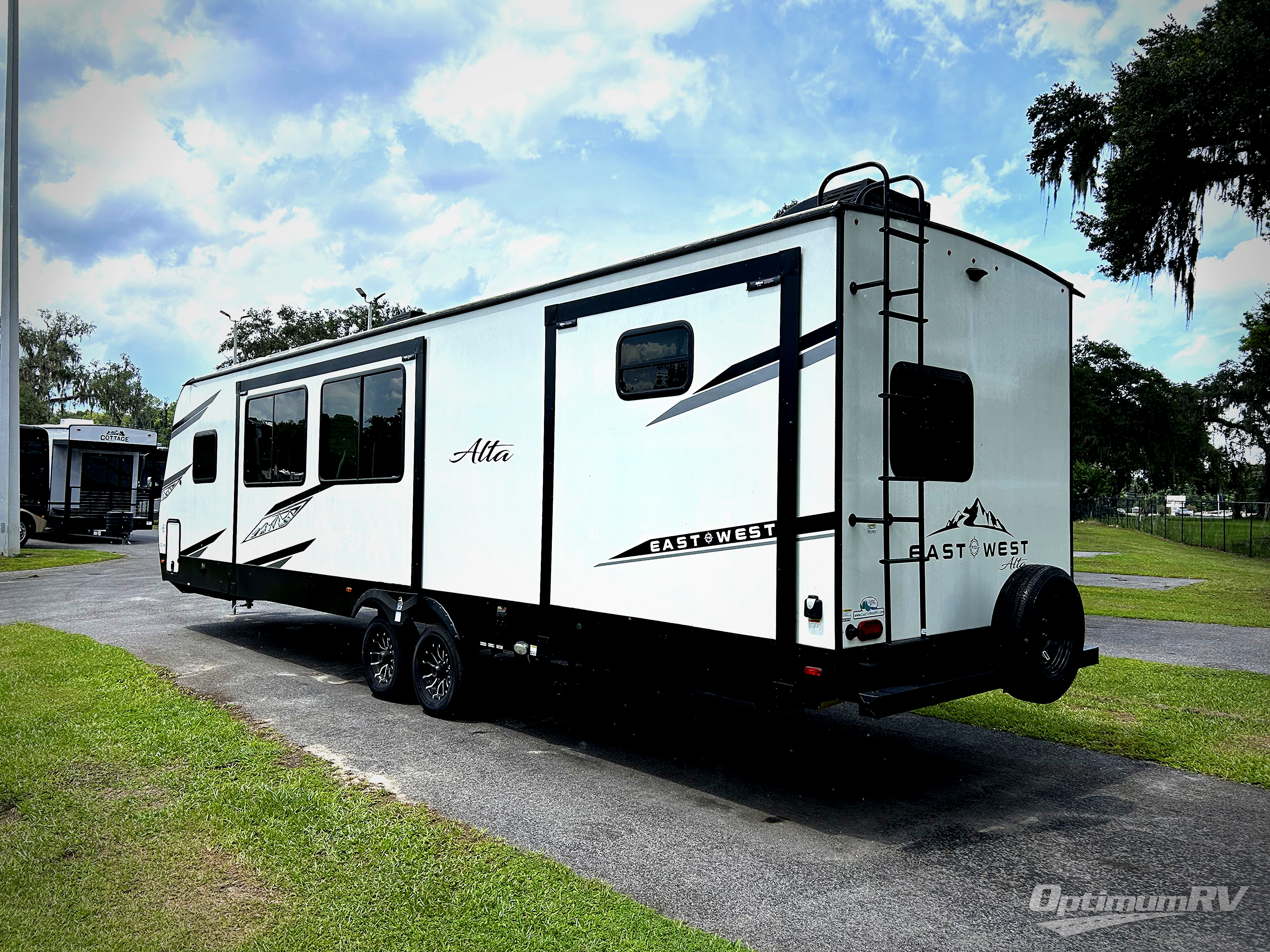 Each Alta travel trailer by EAST TO WEST is constructed with a 5" vacuum bonded roof, flush floor slide outs (where applicable), and diamond plate front rock guard for added protection. Outside, you'll find marine-grade exterior speakers, a universal docking station, and back-up camera prep that can be added to make maneuvering in and out of campgrounds easier than ever. There are USB charging stations for your tablet or phone and designer solid surface countertops you are sure to love. The furnace and 15,000 BTU ducted A/C with quick cool will keep you comfortable in any season, and the 81" interior ceiling height will provide ample space to move about without feeling confined. Start a new adventure in an Alta travel trailer today!