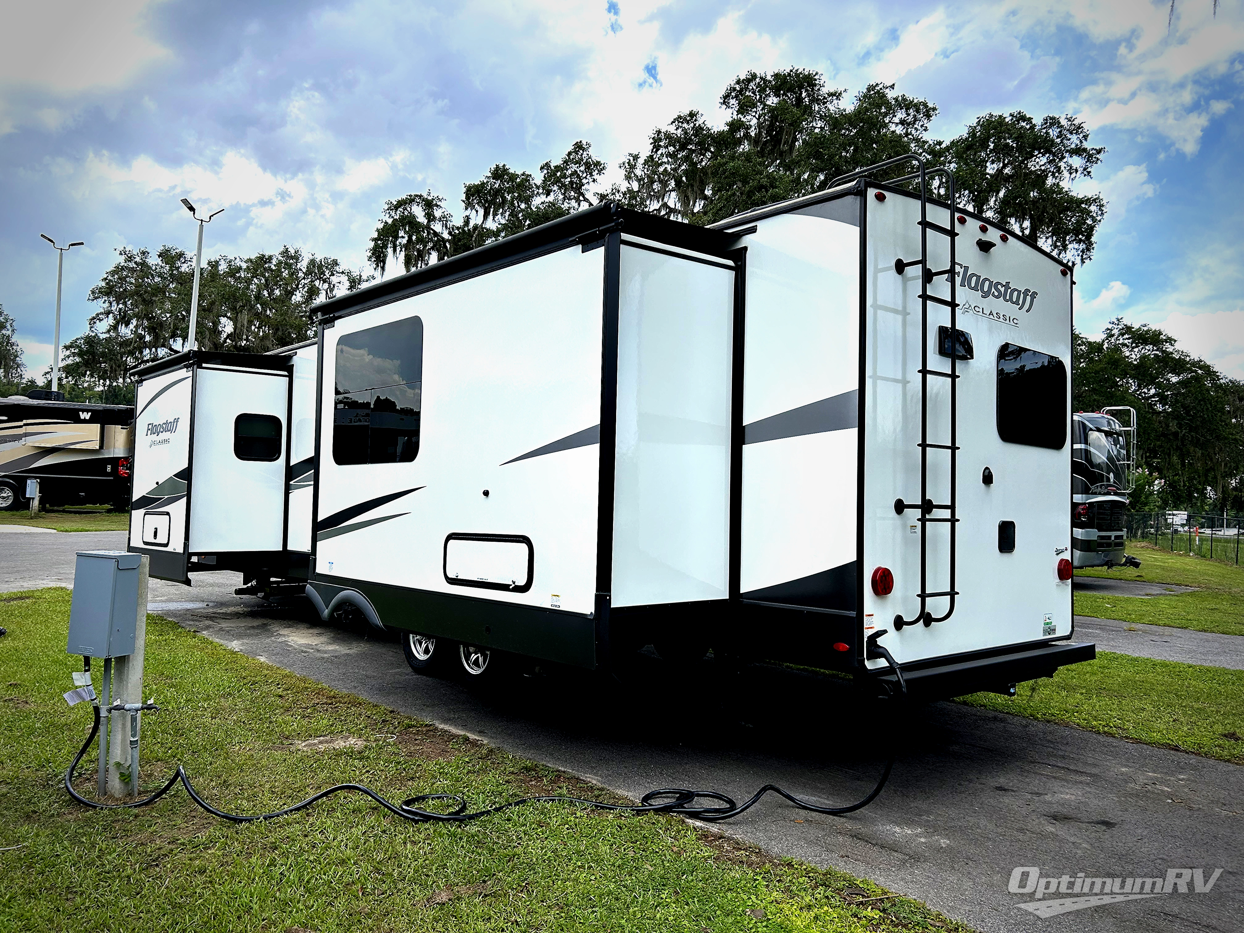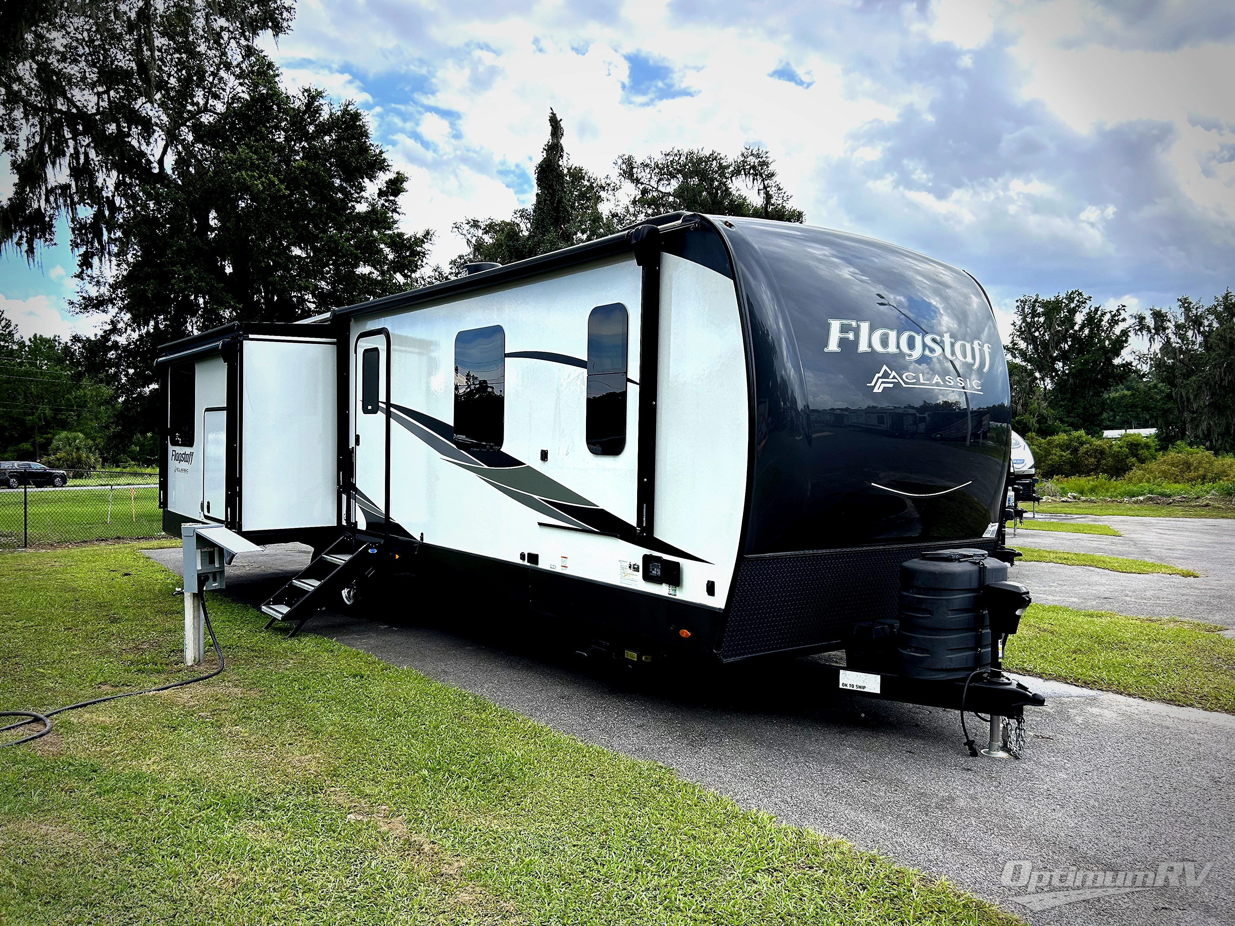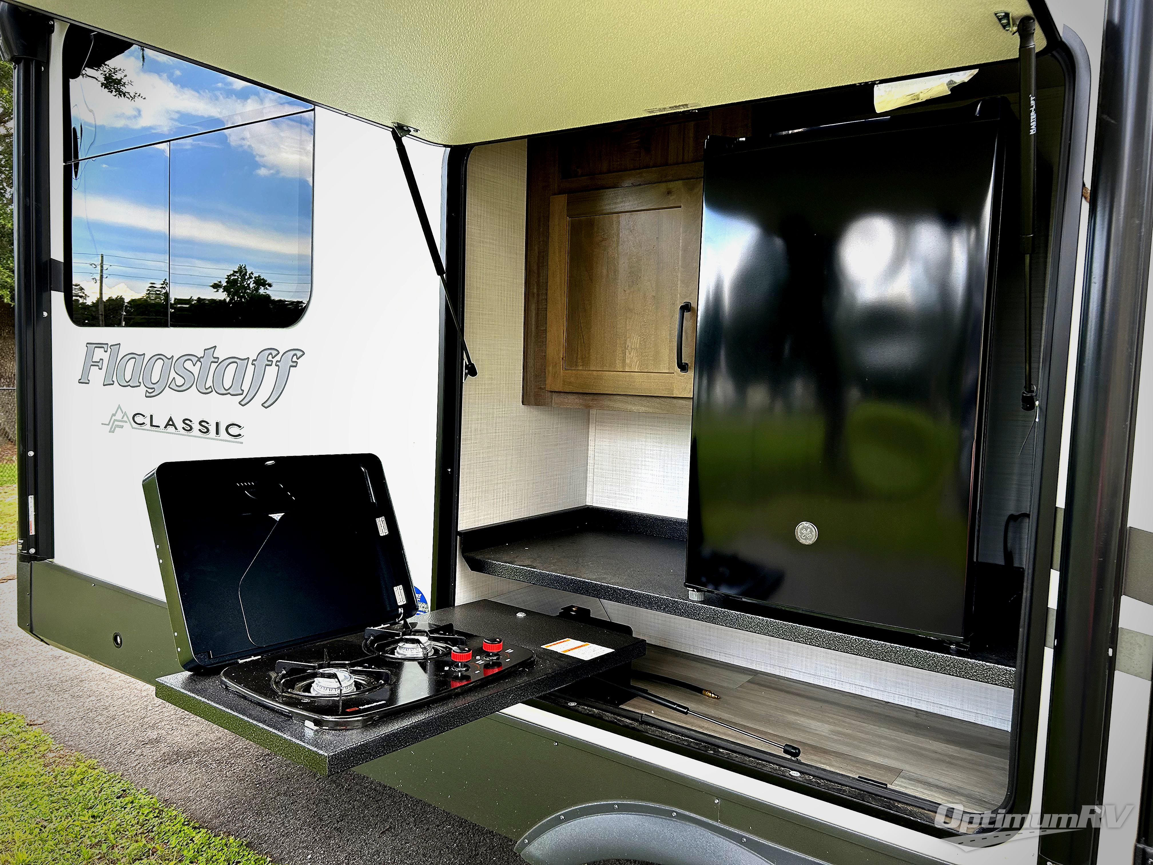 Each one of these Forest River Flagstaff Classic fifth wheels or travel trailers will be your home on wheels! Their quality craftsmanship and attention to detail shines through the surface-coated steel I-beam frame on fifth wheels, the enclosed underbelly, the radius roof with vaulted interior ceilings, and six-sided fully aluminum-framed floor, walls, and roof. Towing your unit will be easy with the torsion axle, Rubber-Ryde suspension, and nitrogen-filled Goodyear Endurance tires. You will even reduce your use of water with the Showermiser water saving system in the bathroom. A few other convenient features you will enjoy include a control panel with WeRV app control, a designer headboard and bedding, and an outside shower with hot and cold water. Come choose your favorite one today!