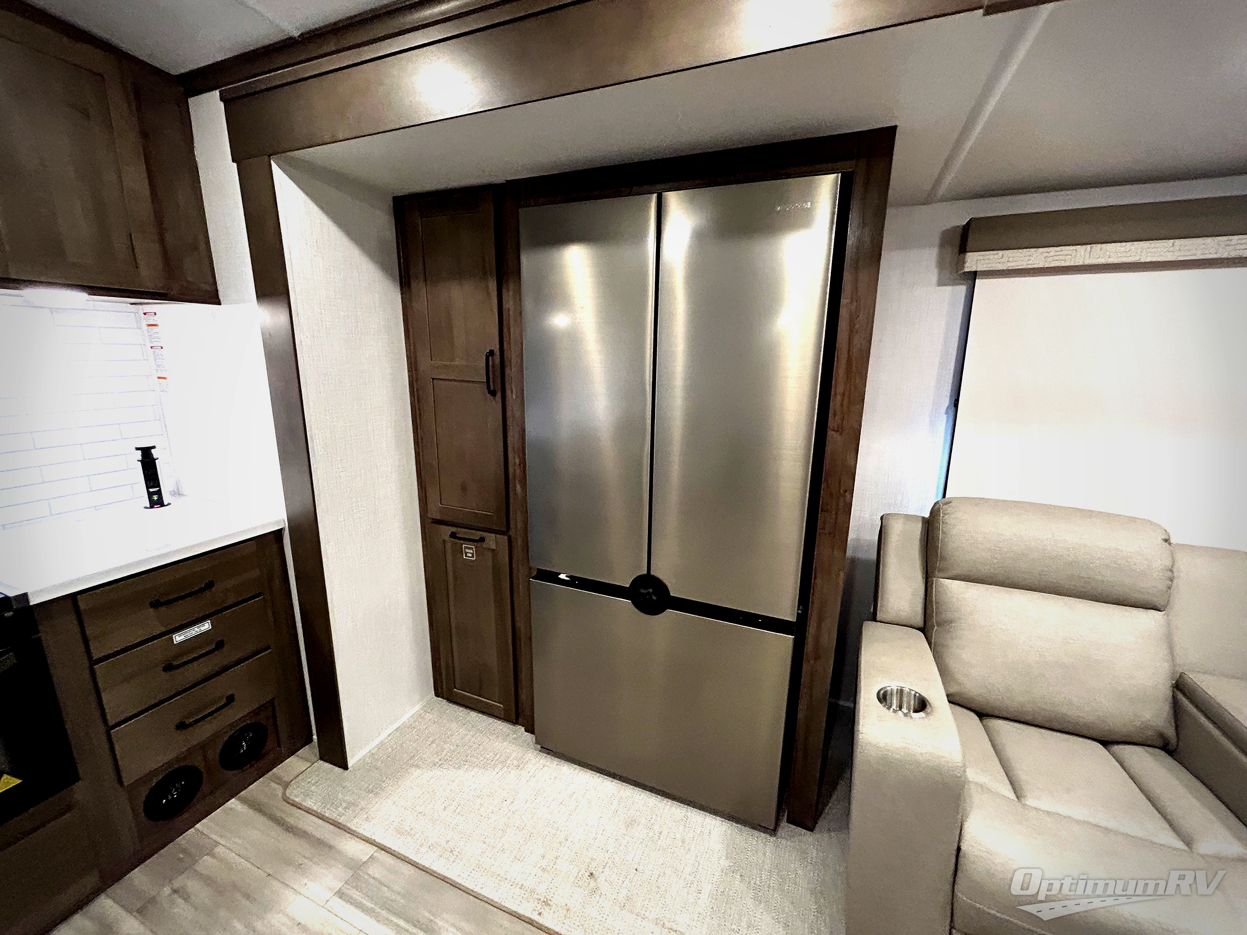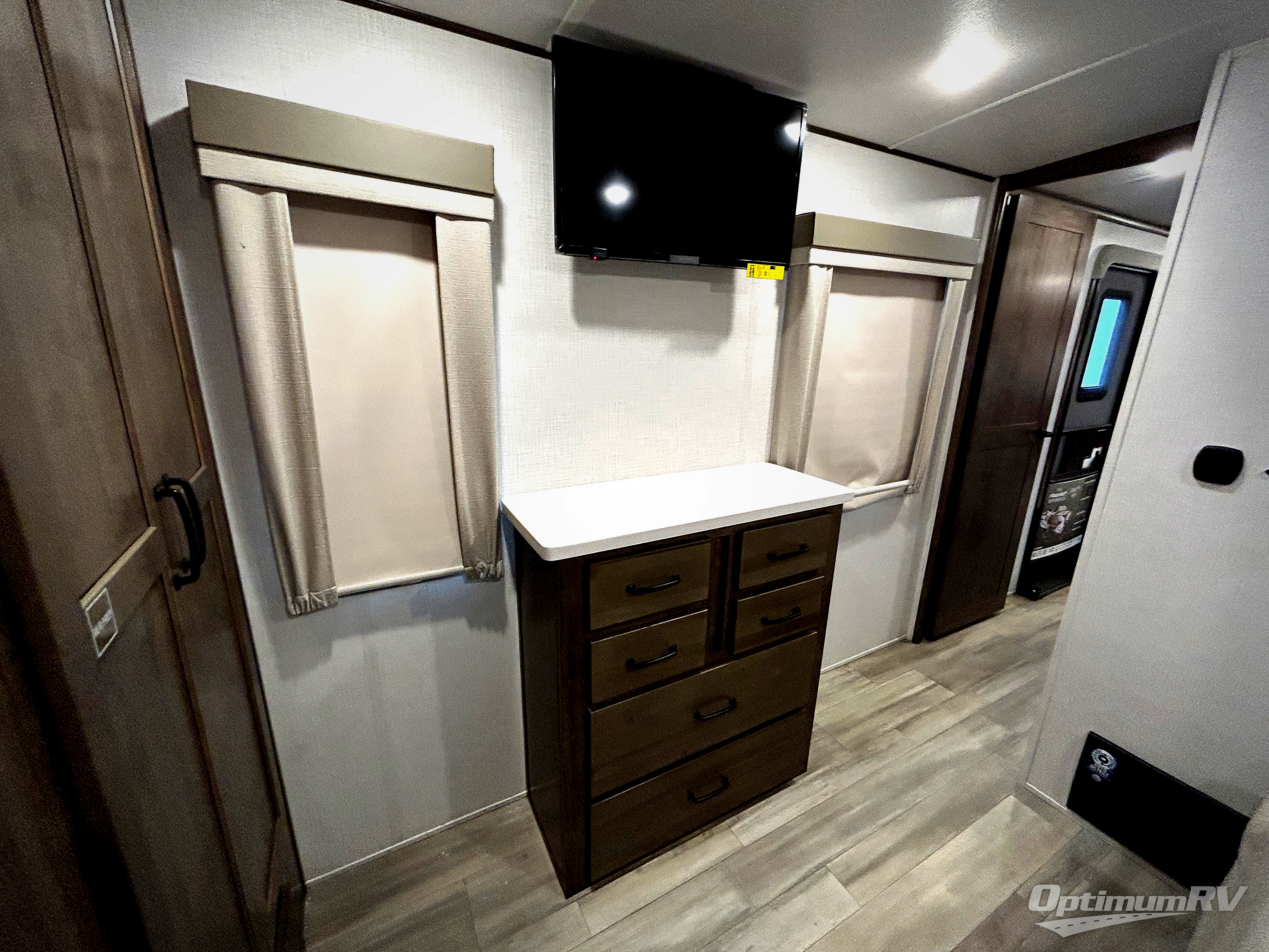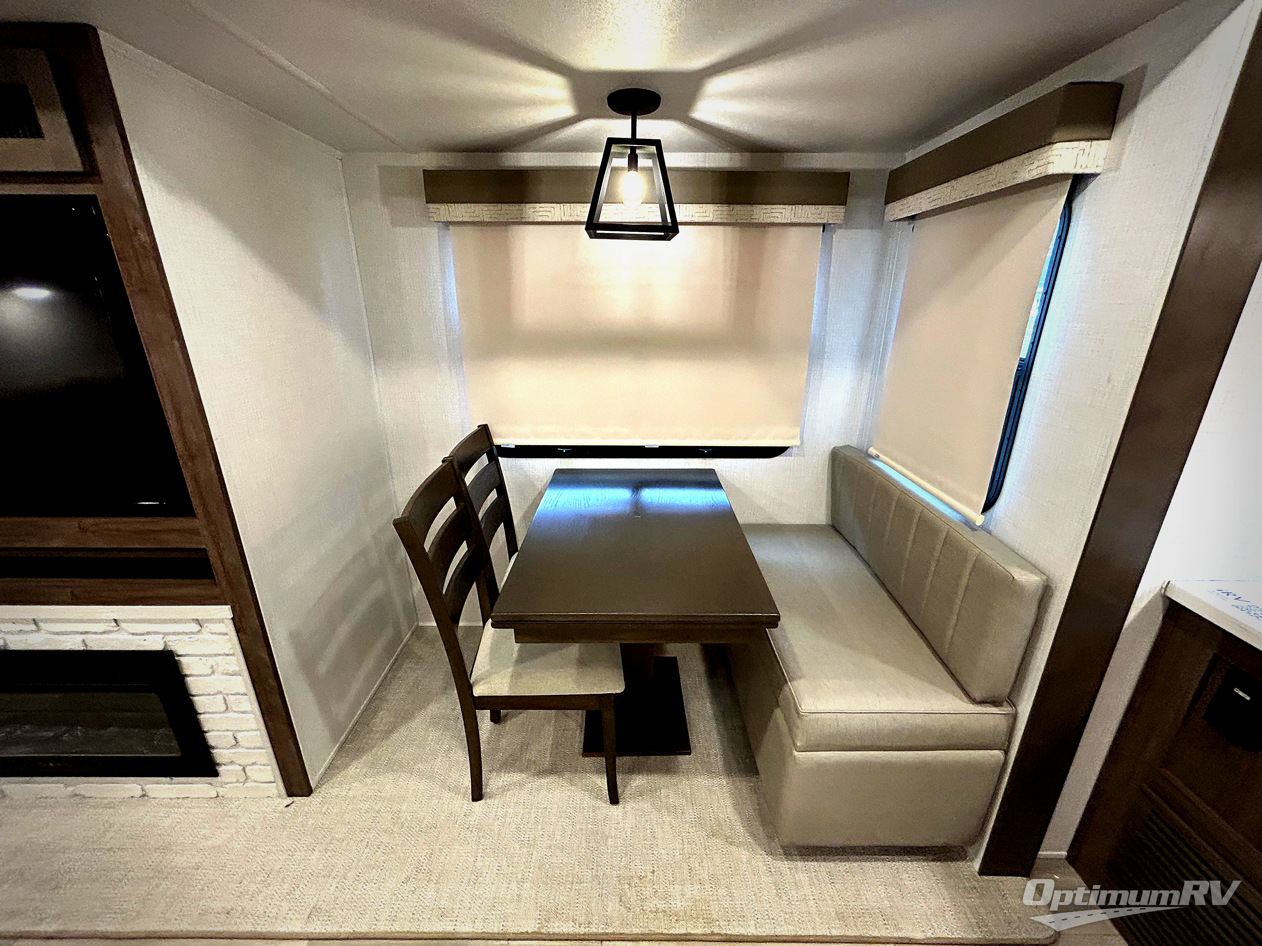 Three slides in this travel trailer provide more interior space! The rear kitchen has everything the chef will need to prepare home-cooked meals and a large pantry to store everyone's favorite snacks, or they can head to the outside kitchen and breathe in some fresh air while they cook. The 44" booth dinette is not only great for enjoying meals and playing card games, but it is also great for transforming into an extra sleeping space. You can even transform the 60" hide-a-bed sofa into a sleeping space too. The dual-entry bathroom is easy for everyone to access especially those staying in the front private bedroom. In the bedroom is a queen bed slide to lay your head at night, a dresser with an area prepped for an optional TV, and a front wardrobe with washer and dryer prep.