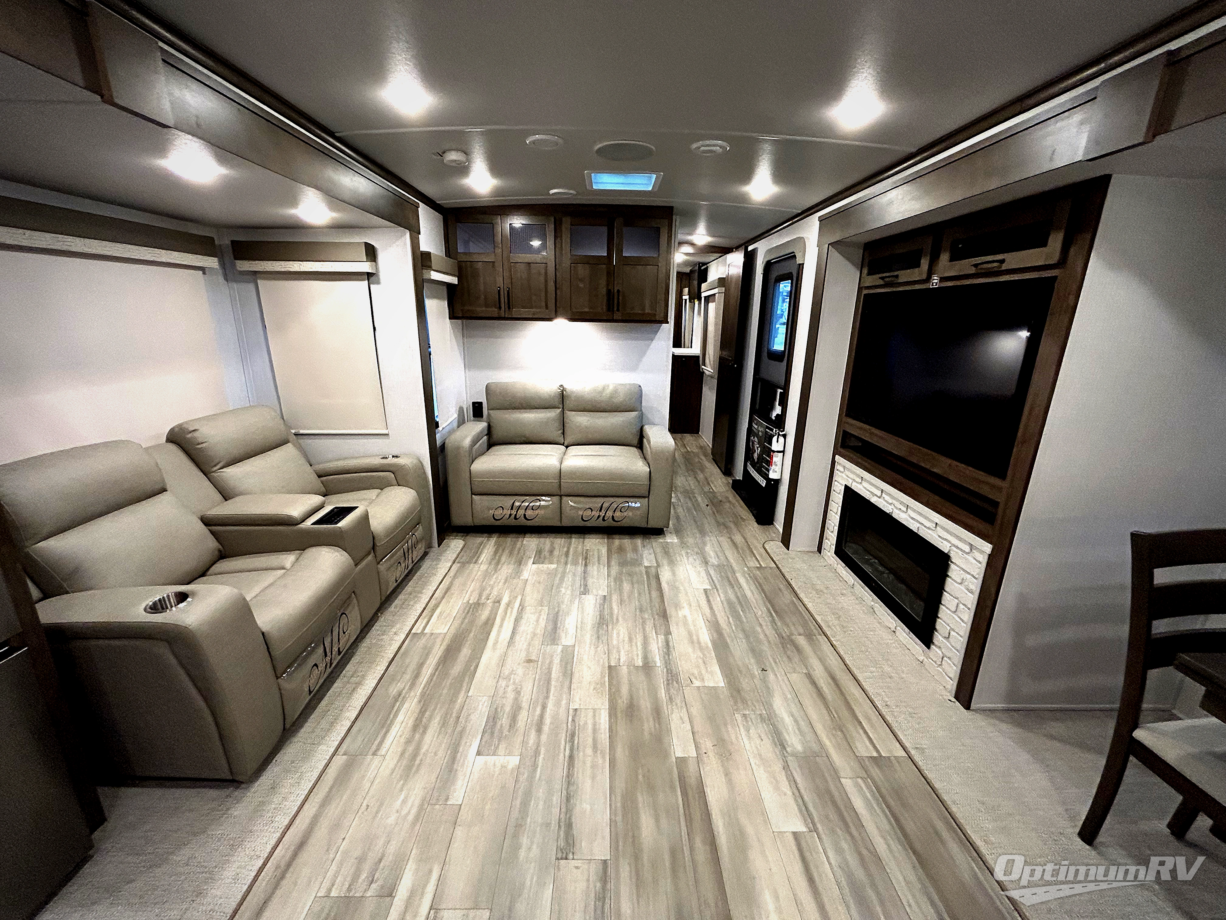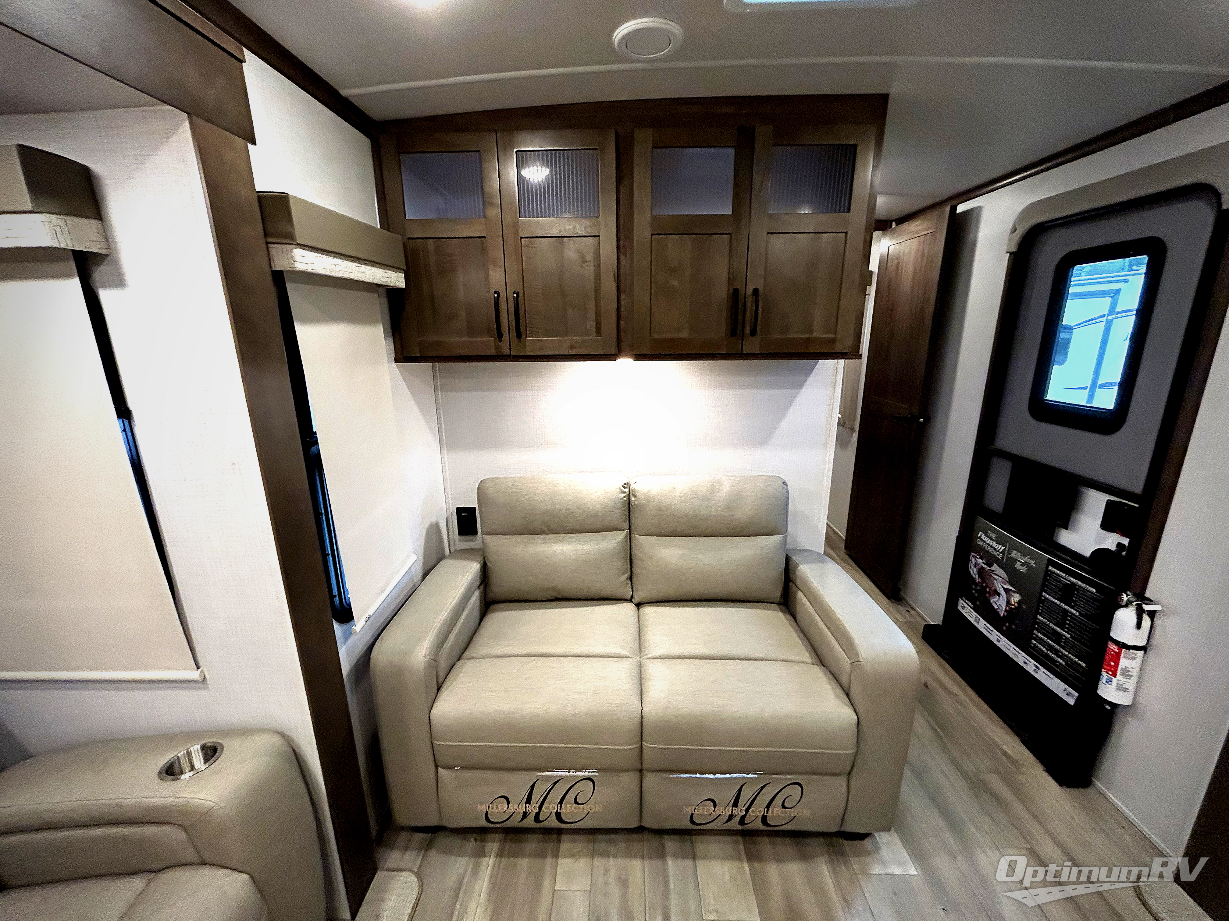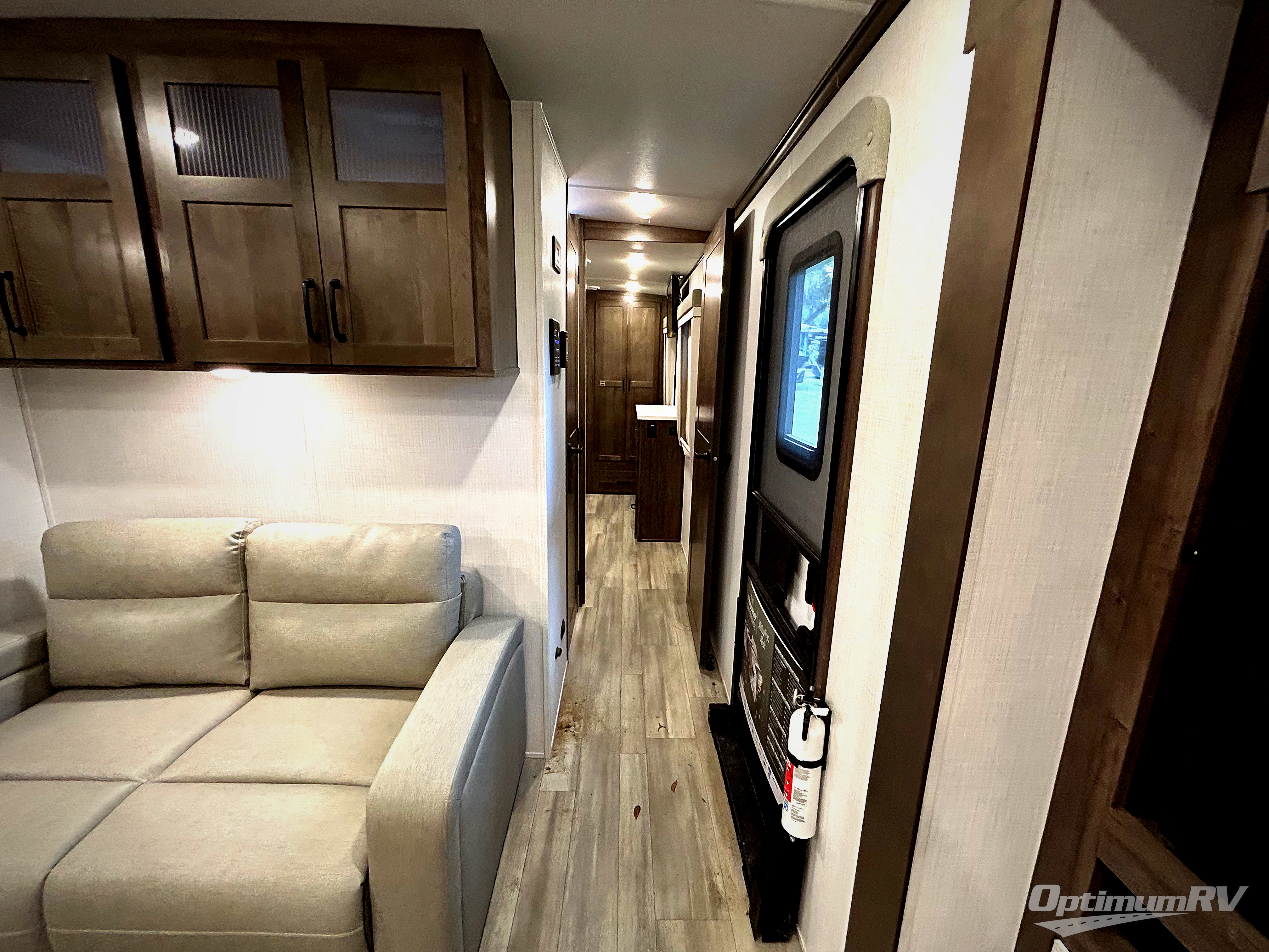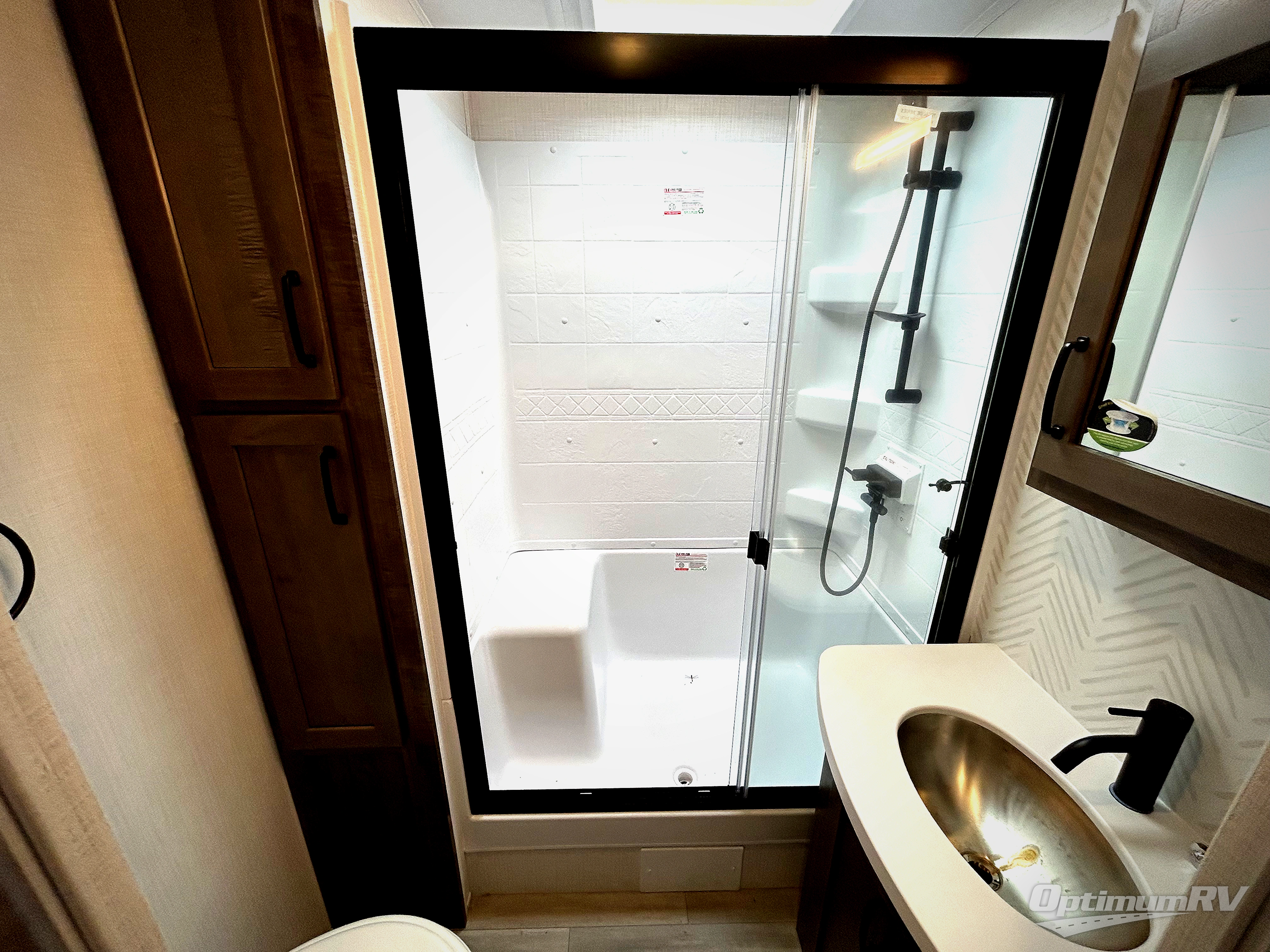 Three slides in this travel trailer provide more interior space! The rear kitchen has everything the chef will need to prepare home-cooked meals and a large pantry to store everyone's favorite snacks, or they can head to the outside kitchen and breathe in some fresh air while they cook. The 44" booth dinette is not only great for enjoying meals and playing card games, but it is also great for transforming into an extra sleeping space. You can even transform the 60" hide-a-bed sofa into a sleeping space too. The dual-entry bathroom is easy for everyone to access especially those staying in the front private bedroom. In the bedroom is a queen bed slide to lay your head at night, a dresser with an area prepped for an optional TV, and a front wardrobe with washer and dryer prep.