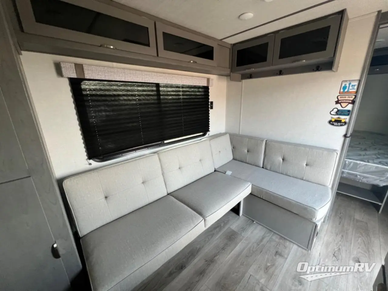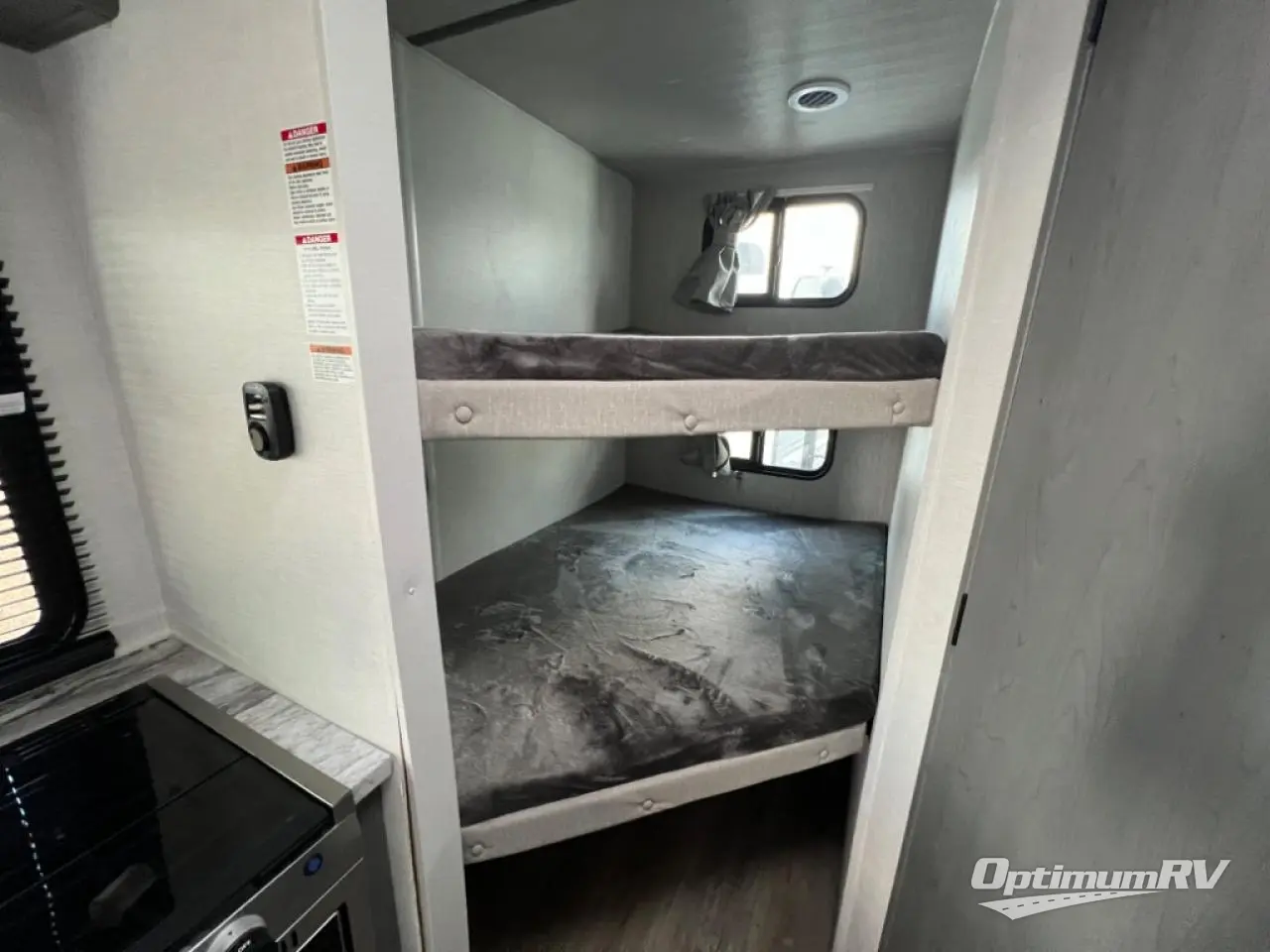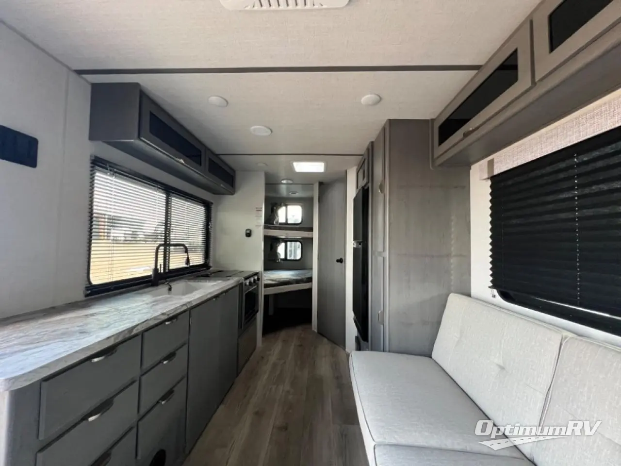 This Limited Edition model resembles the layout of 2300RBLE, but you'll enjoy added double-size bunks in the rear corner, with a full bath in the other rear corner! You'll have the front private bedroom all to yourselves with a king bed and dual wardrobes, and other guests can sleep on the L-shaped sofa with a chaise when it's not being used to relax on. The kitchen on this Ozark includes a two burner cooktop with a glass top, a microwave oven, and a panoramic window by the sink so you can have open views as you clean up. There is also a walk-in pantry and an 8 cu. ft. refrigerator that is 128% larger than normal!