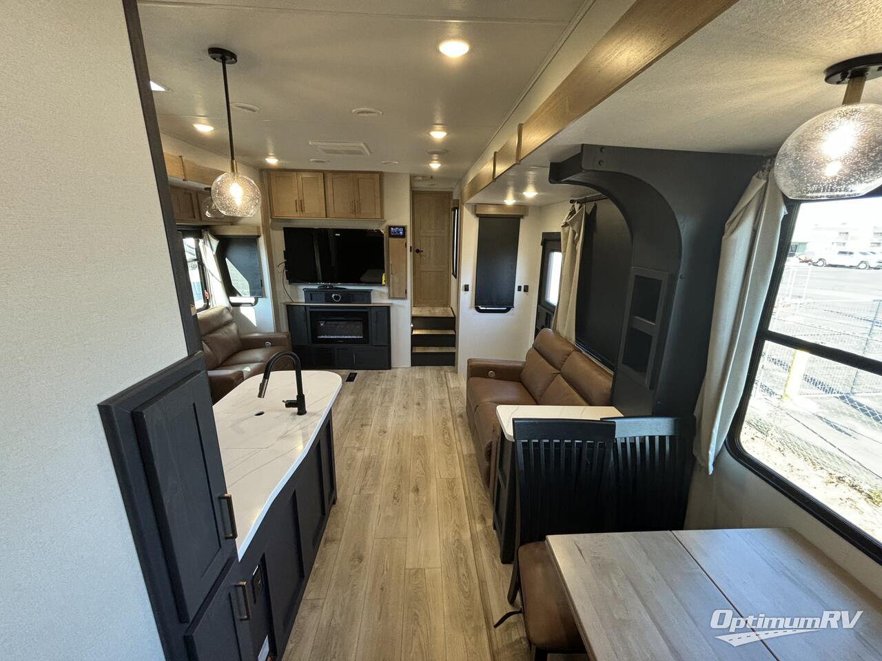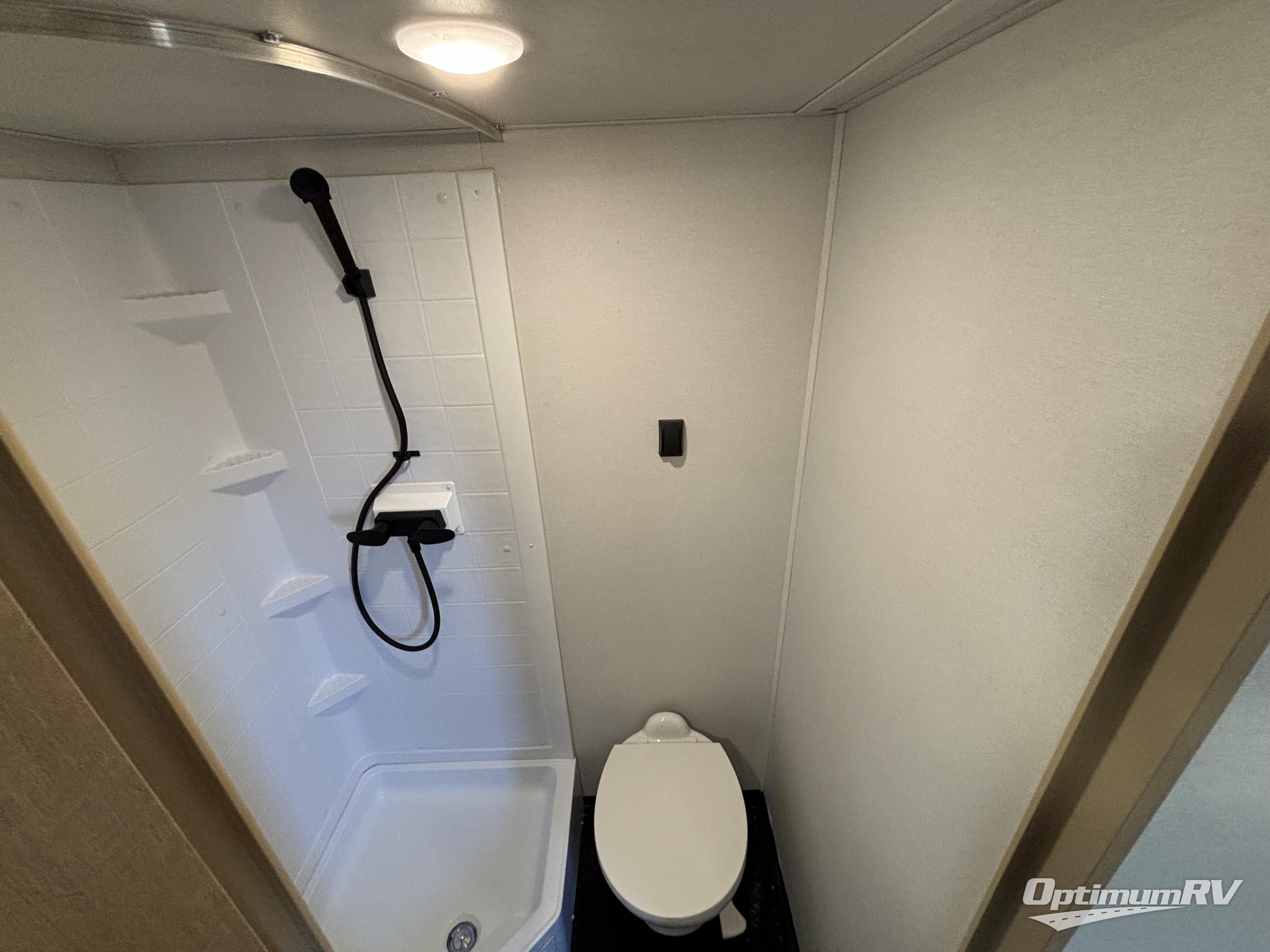 This toy hauler with two full bathrooms is a clean decision! You can prepare delicious home cooked meals for everyone in the fully equipped kitchen with island peninsula for plenty of prepping space, plus there is a hutch to store your dishes. The garage has a bathroom with a neo-angled shower so mud doesn't get tracked throughout the rest of the unit and two loft areas for extra sleeping space. With two awnings, you are sure to stay protected rain or shine and one of the awnings even protects the Grill N Go three burner griddle combo. Enjoy a good night's rest on the tilting king bed slide, keep your clothes looking their best with the front wardrobe, and the washer and dryer prep give you the option to make laundry day easier than ever. You will also have quick access into the dual entry bath!