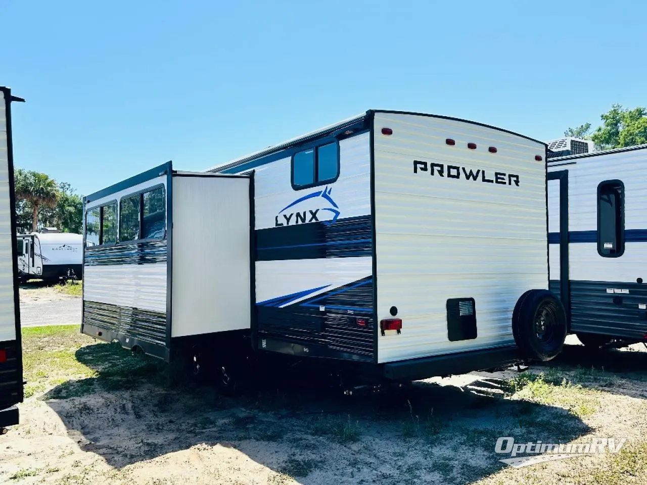 Get ready for comfortable and easy camping with the Prowler Lynx travel trailers by Heartland. These models feature durable construction with a performastructure aluminum front wall, cambered structural steel I-beam frame, and a fully walkable roof. The MEGA bright pass-through storage features 52 cu. ft. of exterior storage with mega sized access doors, LED lights, and a finished interior to keep your gear secure. You'll fall in love with the at-home kitchen that includes Duralast countertops, a residential refrigerator, plus a stainless steel double bowl undermount sink for easy clean-up. These travel trailers also feature panoramic windows, an EZ clean interior, USB charging ports throughout, and many more comforts! Don't let the Prowler Lynx travel trailers slip away. Choose your favorite floorplan today!