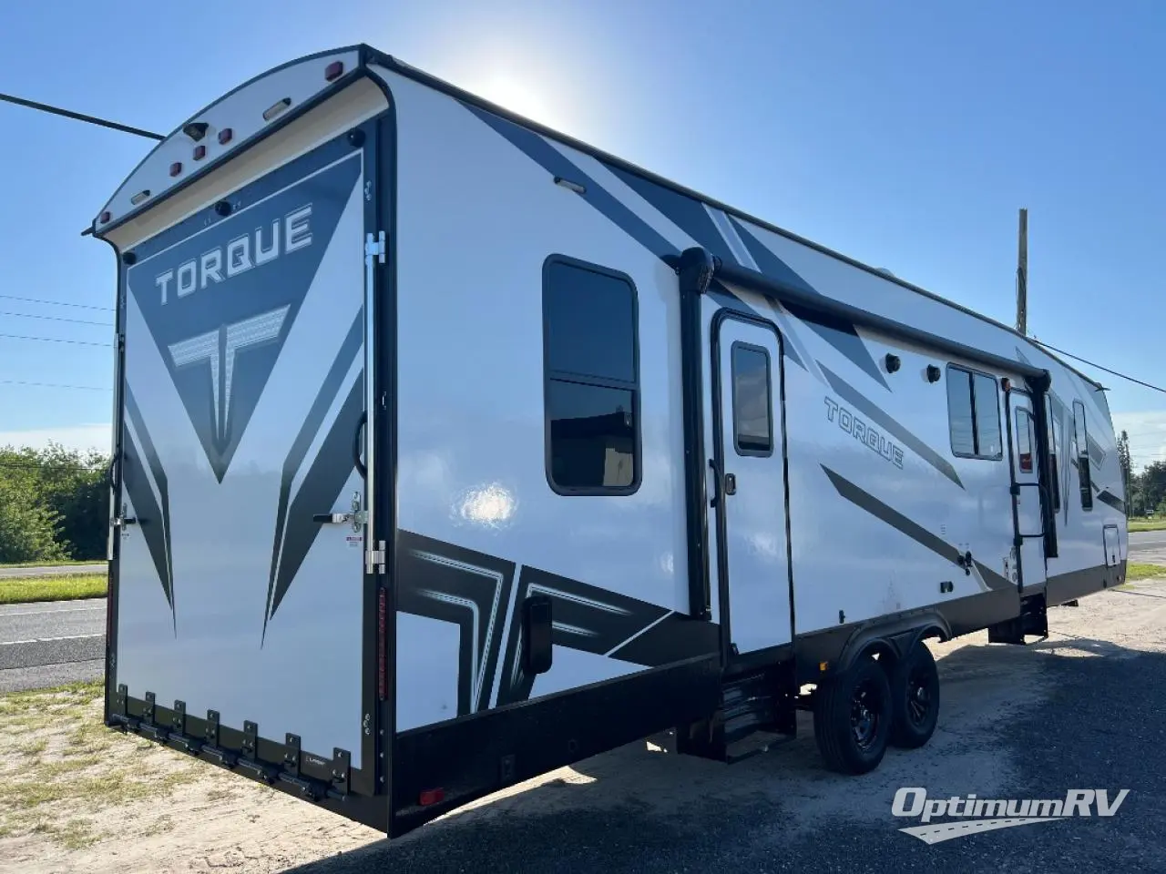 With any Torque toy hauler travel trailer or fifth wheel by Heartland you will find Azdel laminated sidewalls, a wide-body design, and rack and pinion slide outs that fully support the slide out floors. Each drive to the lake will be smooth thanks E-rated tires and E-Z flex suspension with shock absorbers, and there are professional installed tie-downs to keep your toys secure. Head inside to find a culinary kitchen workspace with full-height shaker cabinetry, the largest kitchen countertops in the industry, fuel and oil resistant diamond plate TPO rubberized flooring in the garage, and many more comforts. There are also available options that can be added to further customize your Torque toy hauler, such as an LCD TV, a generator, a ramp door patio, and more!