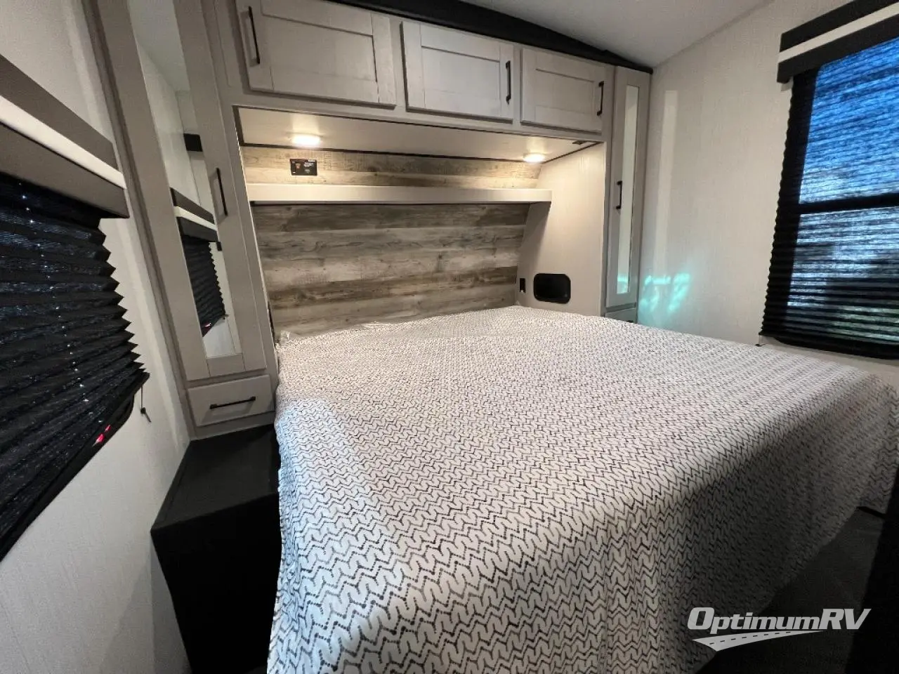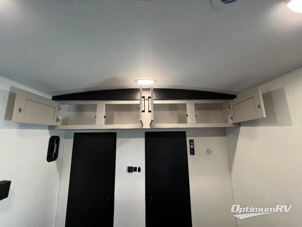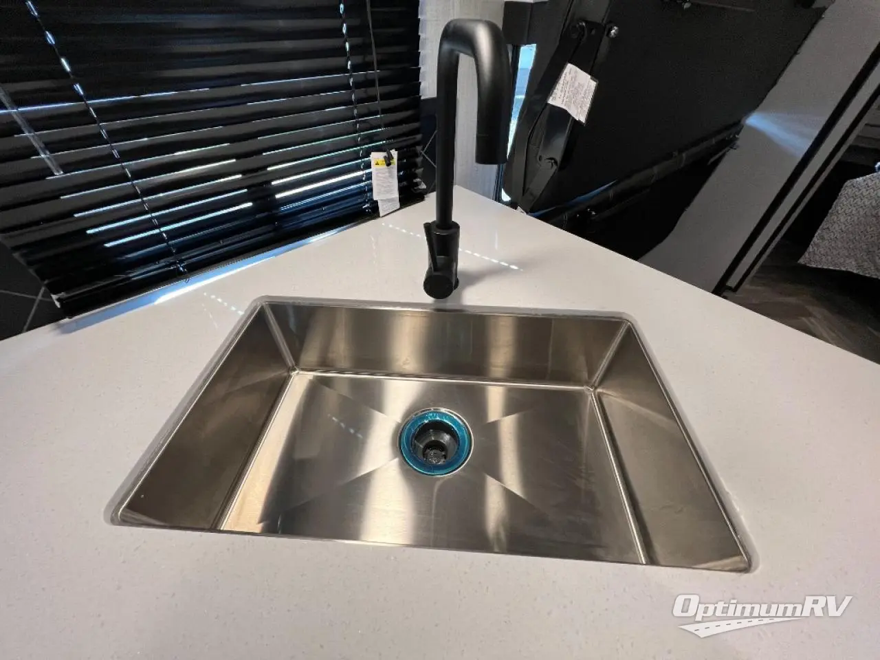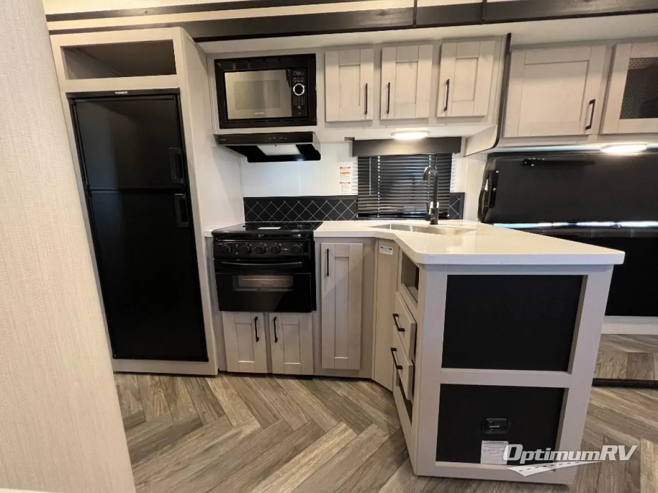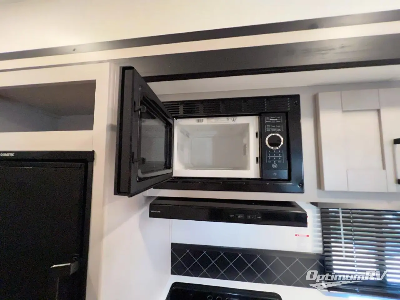Bring the whole gang with you and your off-road toys in this toy hauler with a 13' garage area! Once your toys are unloaded, you can set up the power queen bed above the sofa with a dinette, plus there is one of the dual entry doors to the unit. You can prepare home cooked meals with the three burner cooktop and then eat them either in the garage dinette or the one sided booth dinette seating with a table across from the kitchen. After stuffing yourself full, let your stomach settle on either the sofa or the theater seating then freshen up in the dual entry bathroom with the shower that has a skylight above it for added natural lighting. Enjoy a good night's rest each night on the king bed in the front private bedroom!
