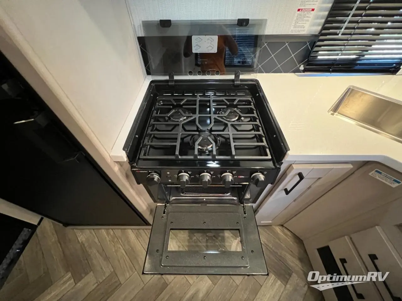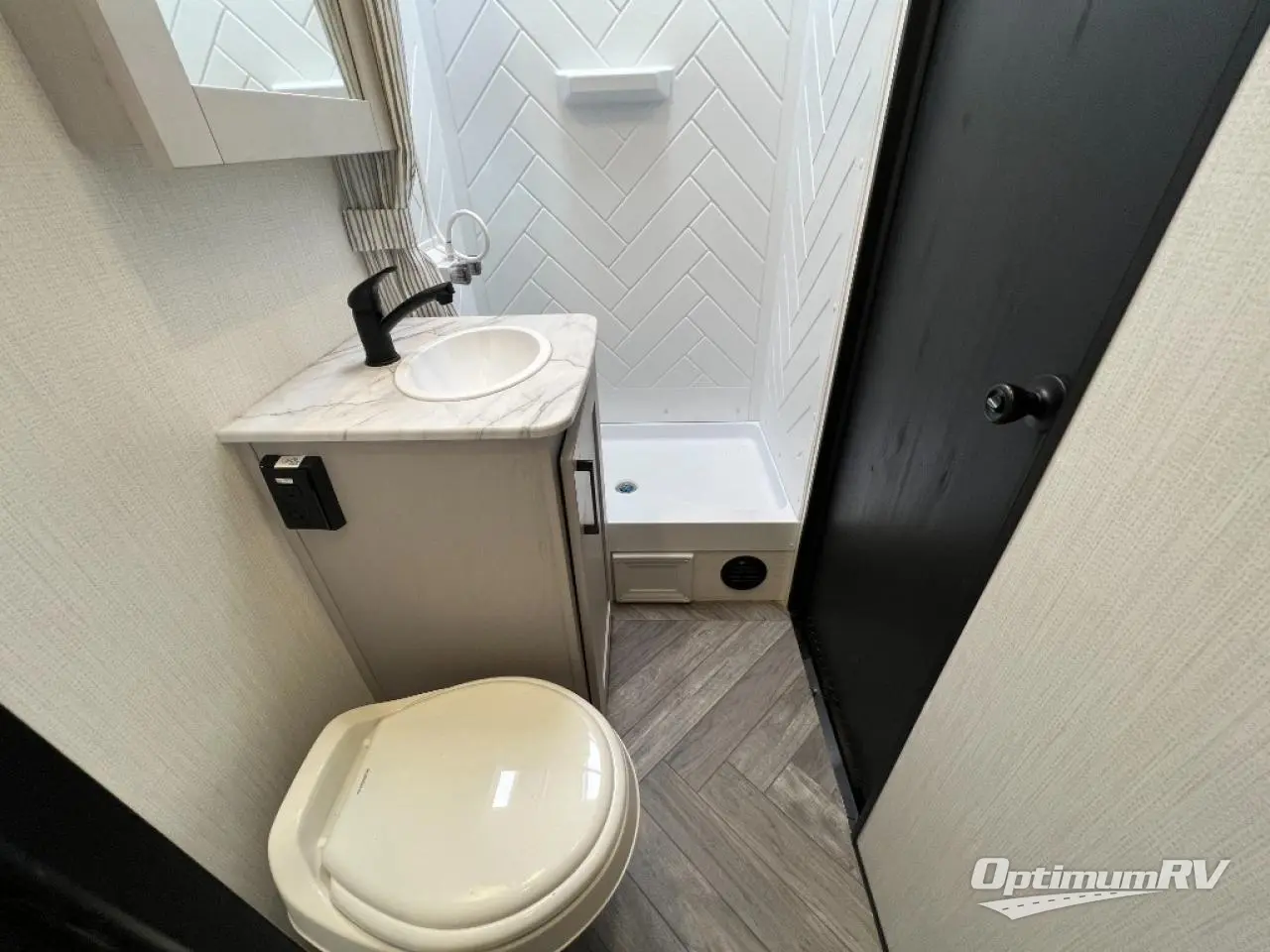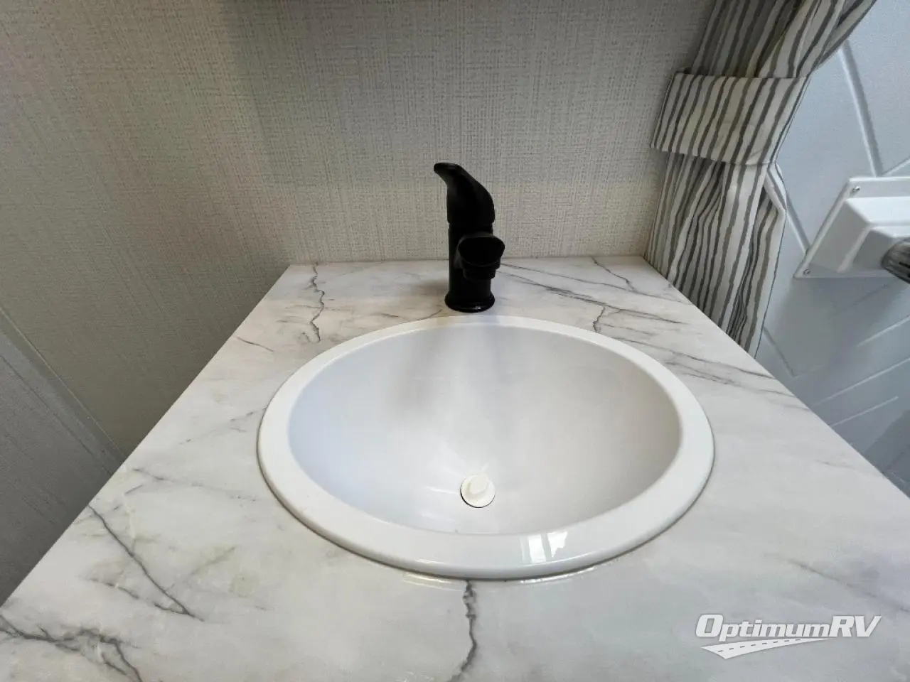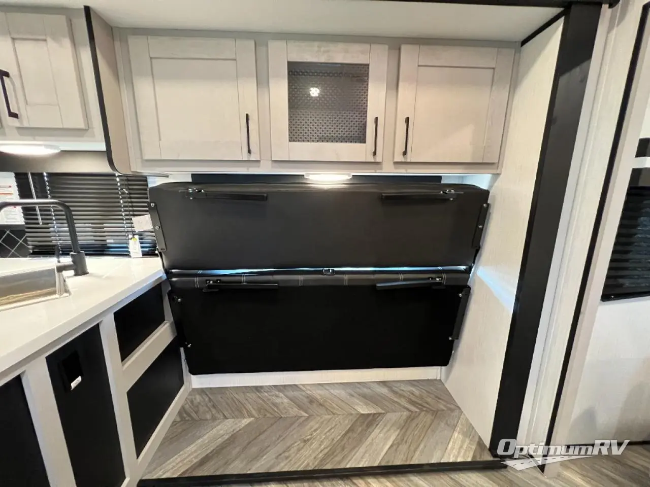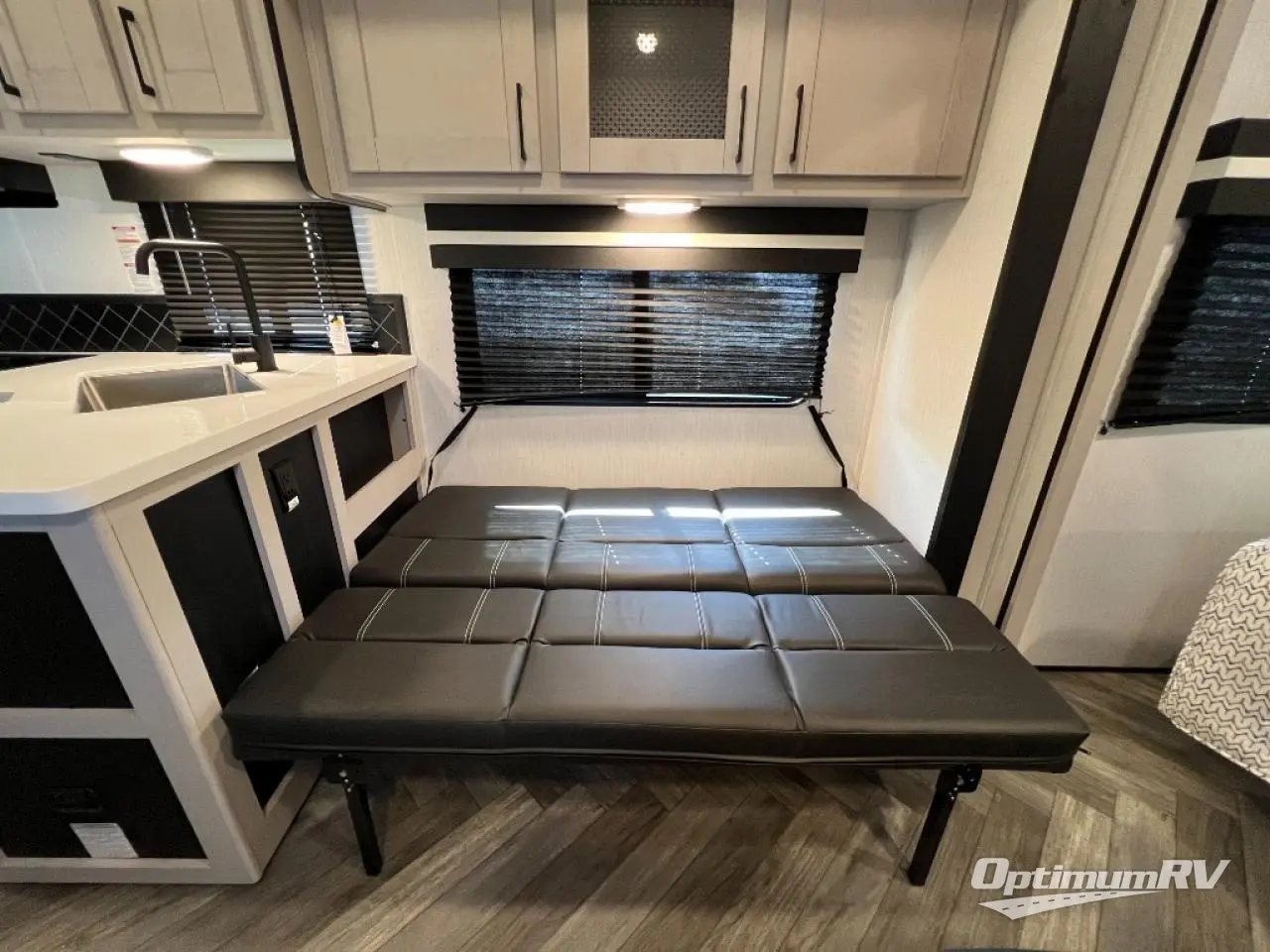 Bring the whole gang with you and your off-road toys in this toy hauler with a 13' garage area! Once your toys are unloaded, you can set up the power queen bed above the sofa with a dinette, plus there is one of the dual entry doors to the unit. You can prepare home cooked meals with the three burner cooktop and then eat them either in the garage dinette or the one sided booth dinette seating with a table across from the kitchen. After stuffing yourself full, let your stomach settle on either the sofa or the theater seating then freshen up in the dual entry bathroom with the shower that has a skylight above it for added natural lighting. Enjoy a good night's rest each night on the king bed in the front private bedroom!