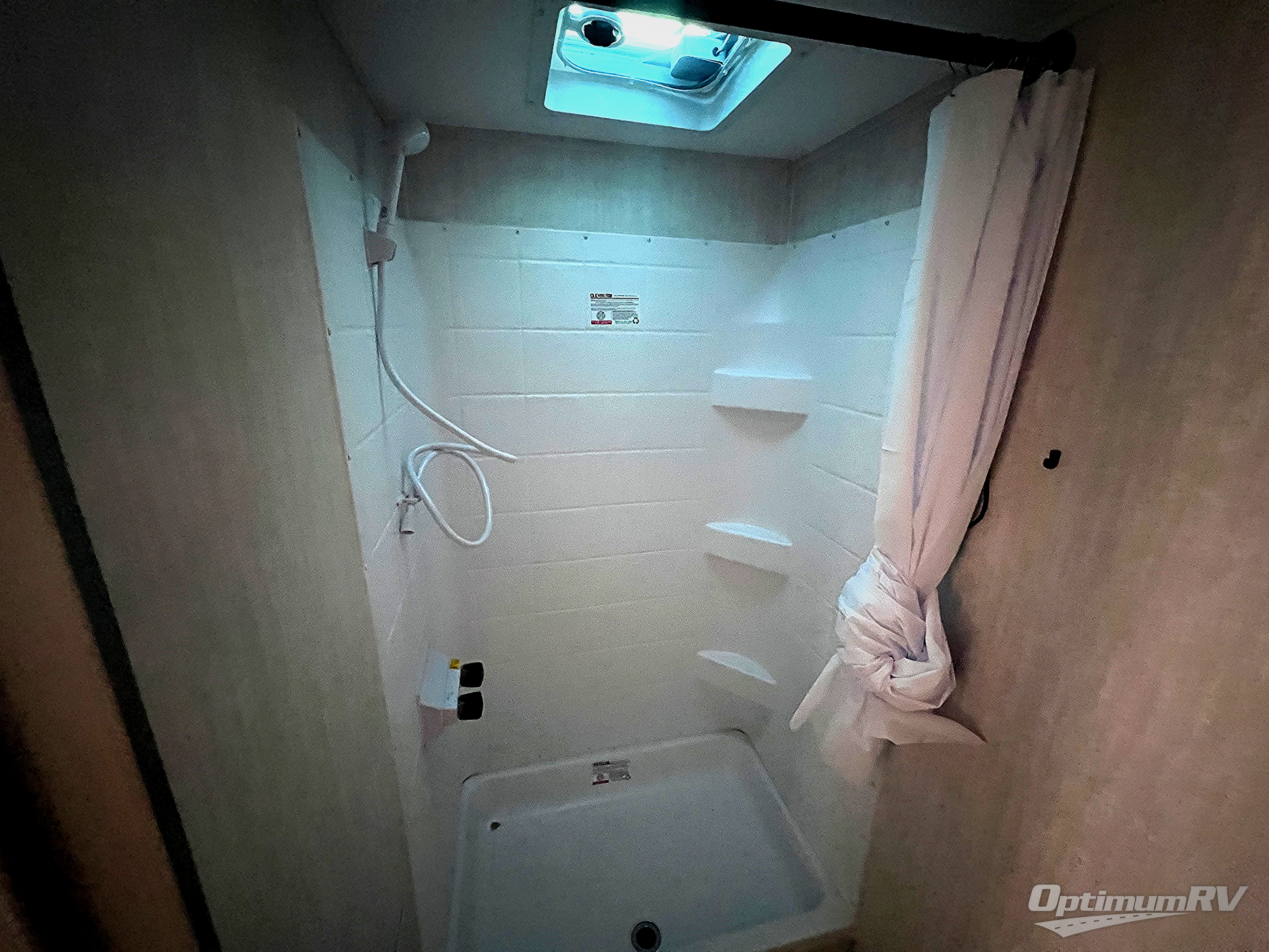 This travel trailer is perfect for a big crowd! Relax to the fullest on the queen bed located in the front bedroom, which also has plenty of space due to its over head cabinet, dual wardrobes and private shelves besides the bed. The double bunk beds are ideal for kids to take a nap, also the U-shaped dinette is another option to use it as a makeshift bed. Take a long bath on the large rear bathroom, special for pamper yourself in the most comfortable way. This model also includes a 12V refrigerator to keep your food fresh, a 2-burner cooktop and a washer/dryer prep; all the comfort of home on the road!