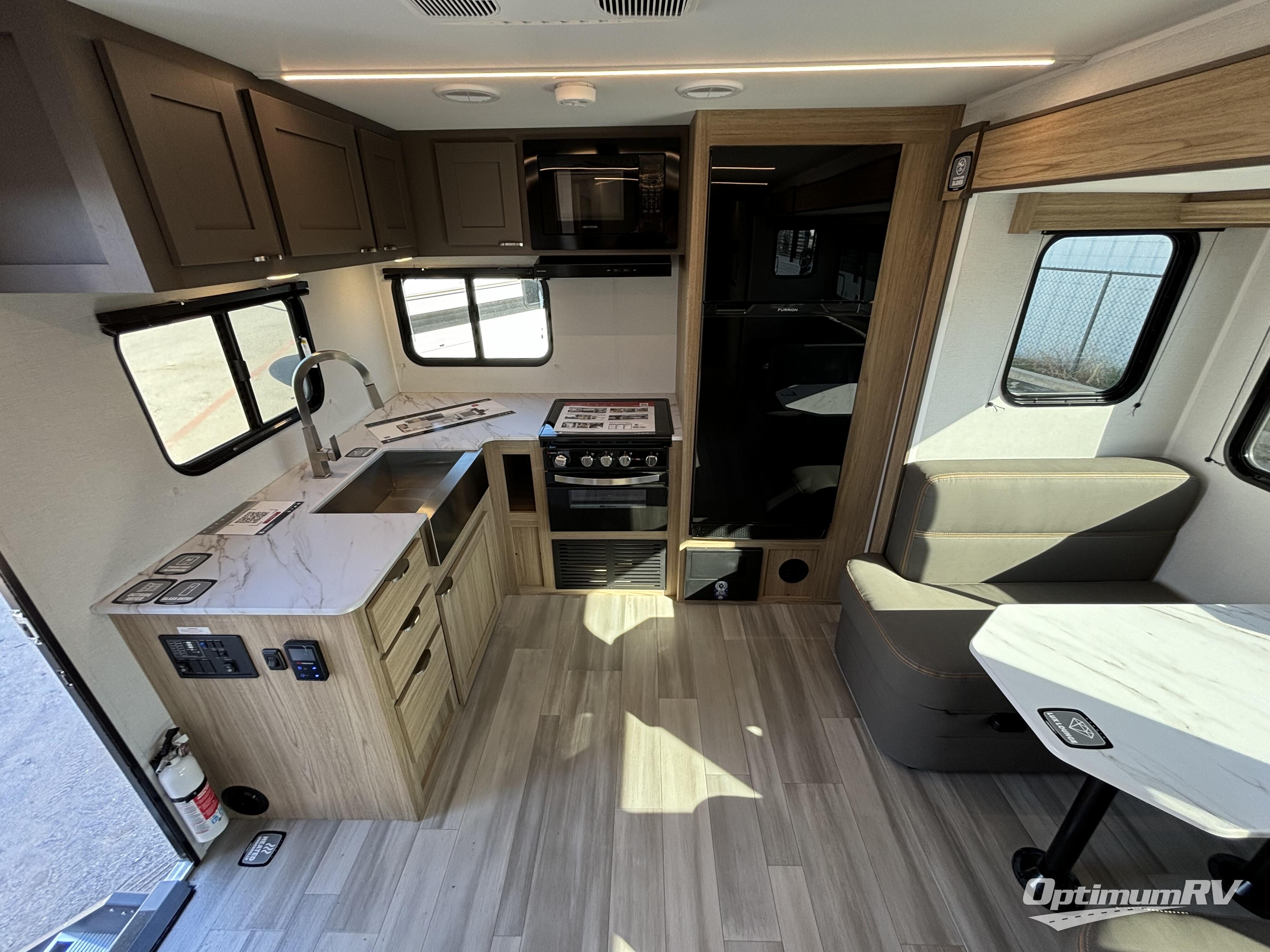 Start a new journey in this cozy travel trailer for five to six. The rear kitchen includes ample counter space to prep meals, a three burner cooktop, plus an entryway walk-in pantry where you can keep dry goods, snacks, and jackets. There is a Lux Lounge and a booth dinette for seating and sleeping space, and the fireplace is sure to make your space feel a little more like home. The spacious full bath is close by the bedroom for convenience, and there is a bedroom closet so you're not living out of a suitcase all weekend!