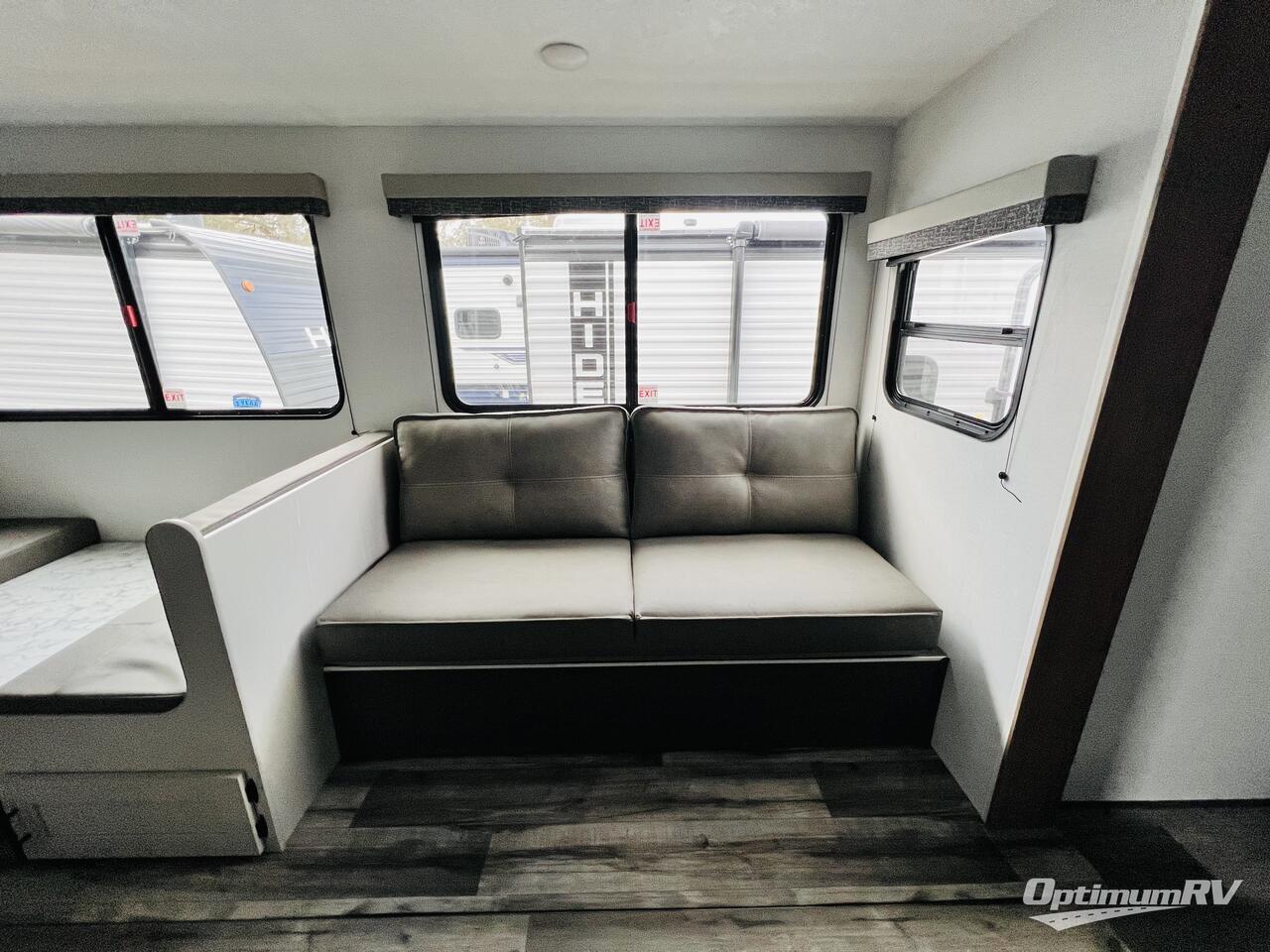 This travel trailer is one your whole crew will love! There is a rear private bunkhouse with double-size bunks for the little ones, a front private bedroom for you, and a booth dinette and jackknife sofa for even more sleeping space! The chef has their choice to cook indoors on the three burner range and microwave oven, or head outdoors to cook on the outdoor kitchen! The full bath will let everyone clean up each day, and the fireplace and large slide out will make your space feel more like home. And don't overlook the pass-through storage and 16' power awning with LED lights!