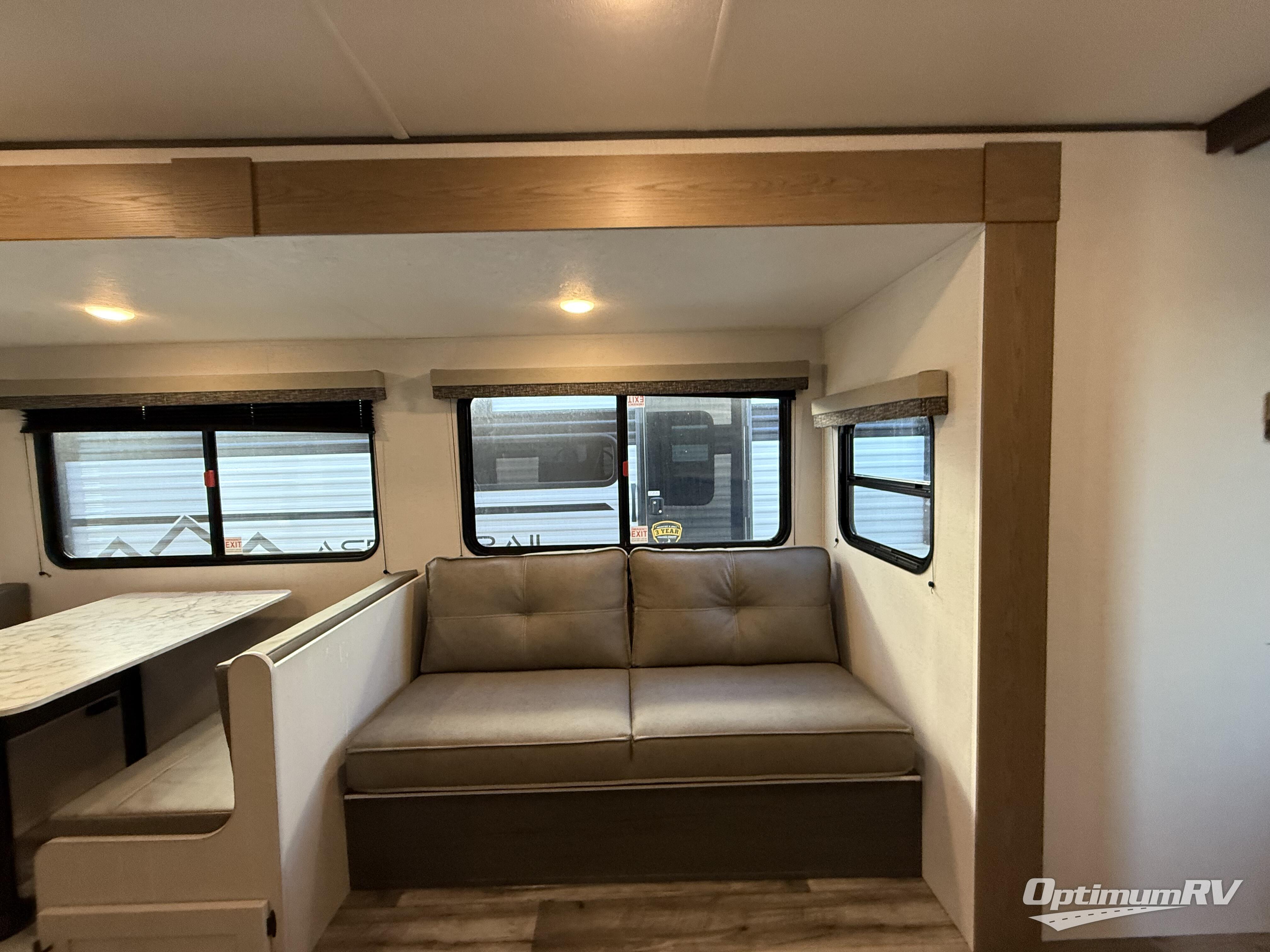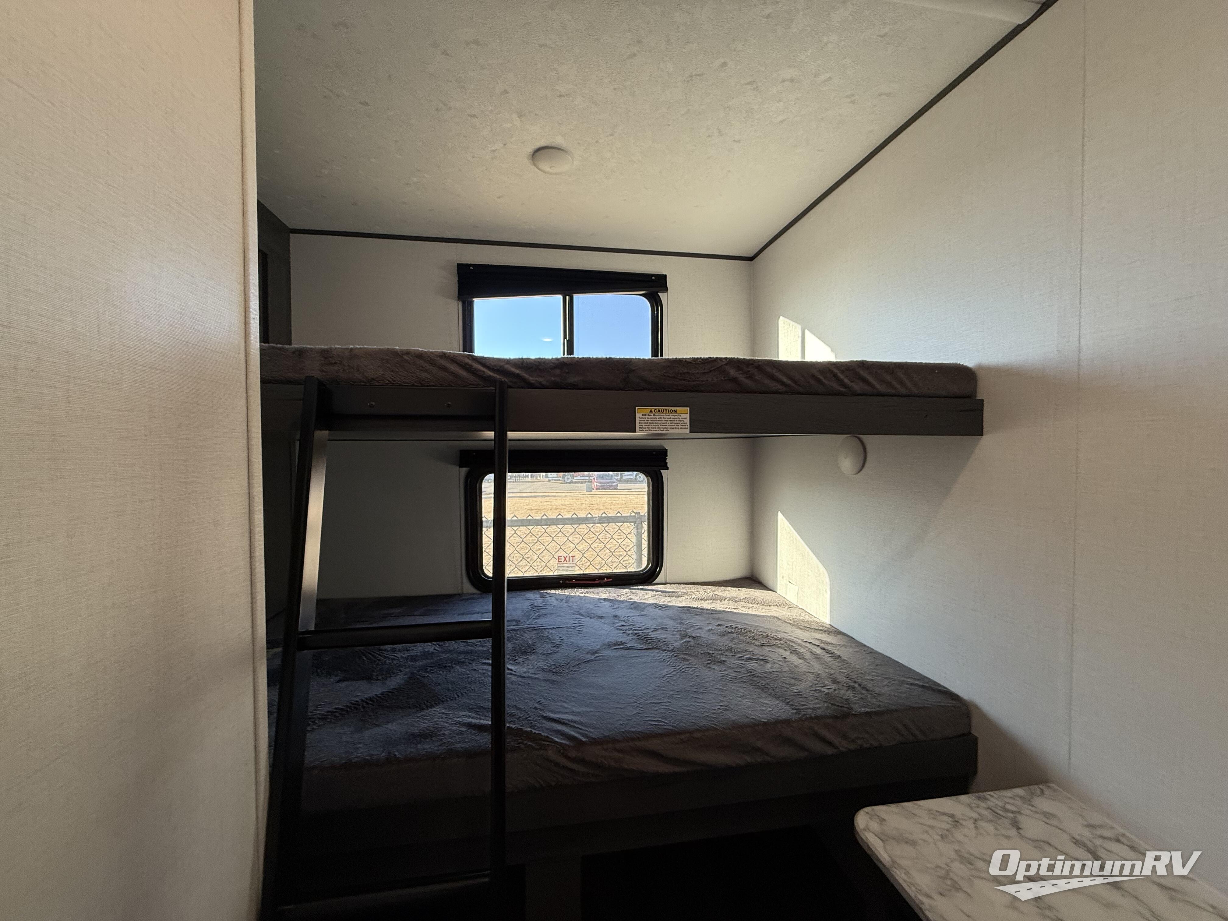 This travel trailer is one your whole crew will love! There is a rear private bunkhouse with double-size bunks for the little ones, a front private bedroom for you, and a booth dinette and jackknife sofa for even more sleeping space! The chef has their choice to cook indoors on the three burner range and microwave oven, or head outdoors to cook on the outdoor kitchen! The full bath will let everyone clean up each day, and the fireplace and large slide out will make your space feel more like home. And don't overlook the pass-through storage and 16' power awning with LED lights!