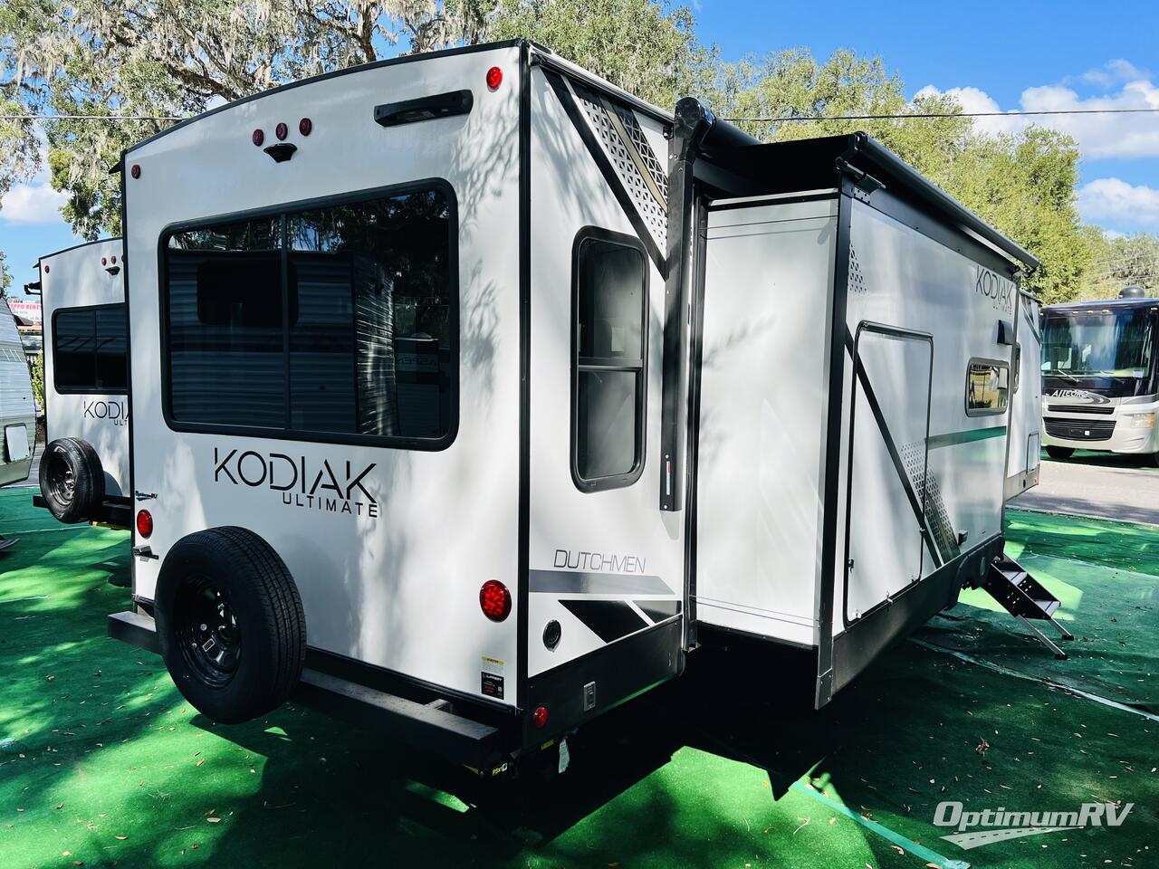 Each Kodiak Ultimate travel trailer by Dutchmen is constructed with an insulated reinforced front cap and diamond plate front rock guard to protect your RV from rock and debris on the way to the campground. The aluminum entry steps are not only dependably, but they collapse and expand quickly so you can get on the road in no-time! These models feature HyperDeck flooring that includes fiberglass reinforced thermoplastic and a fully enclosed underbelly, and the Bear Cave storage allows you to bring along all of your hiking and fishing gear. Some of the interior features you are sure to love are the modern decor choices, dual motion sensory bathroom LED lights, stainless kitchen sink with an apron front, plus a central control panel to easily keep track of your units functions. Your next adventure starts with a Kodiak Ultimate travel trailer!