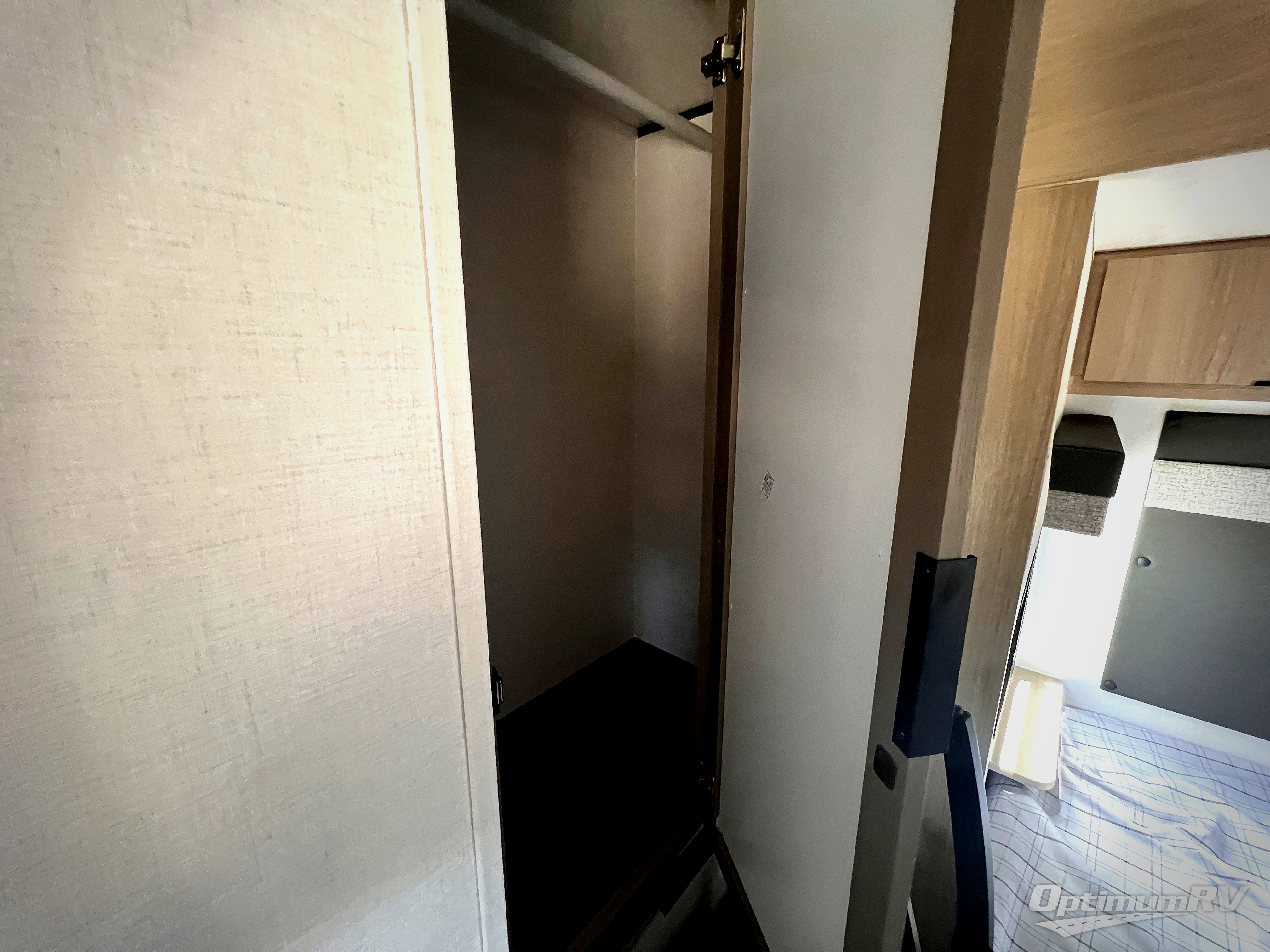 You will love weekends at the lake in this rear kitchen travel trailer that can sleep four to five. There is plenty of counter space in the kitchen, along with a 10 cu. ft. 12V refrigerator, a microwave oven for quick meals, and a booth dinette that can be switched out for an optional standing dinette. Your crew can get cozy on the theater seating with a foot rest directly across from the fireplace and hinged TV with shelving. There is also a jack knife sofa here for more seating and sleeping space for guests. The full bath includes a shower with a skylight and an LED backlit medicine cabinet to keep this space tidy. And you're going to love the front private bedroom with its king bed slide out, front bench seat with dual closets on either side, and bedroom fireplace!