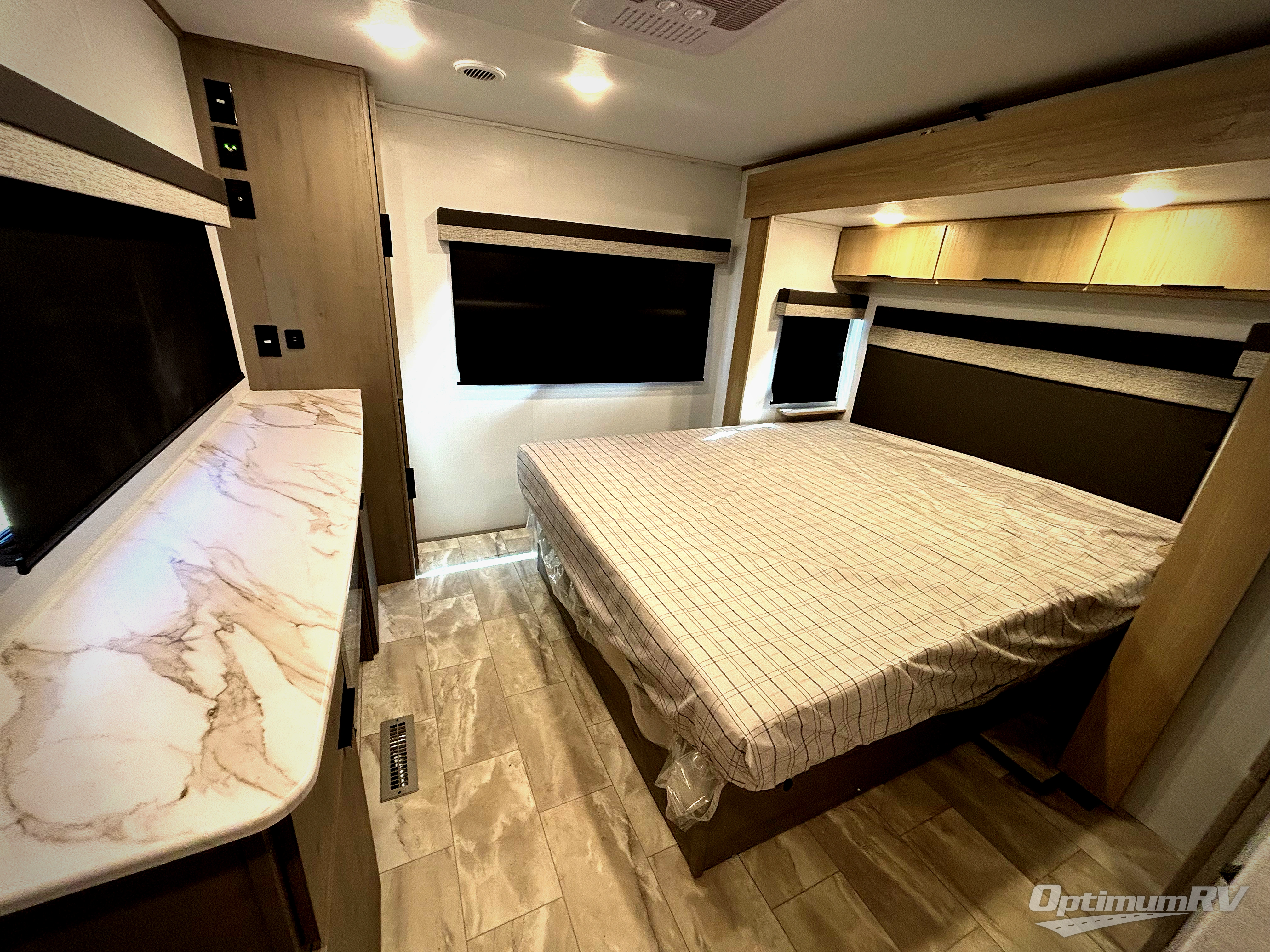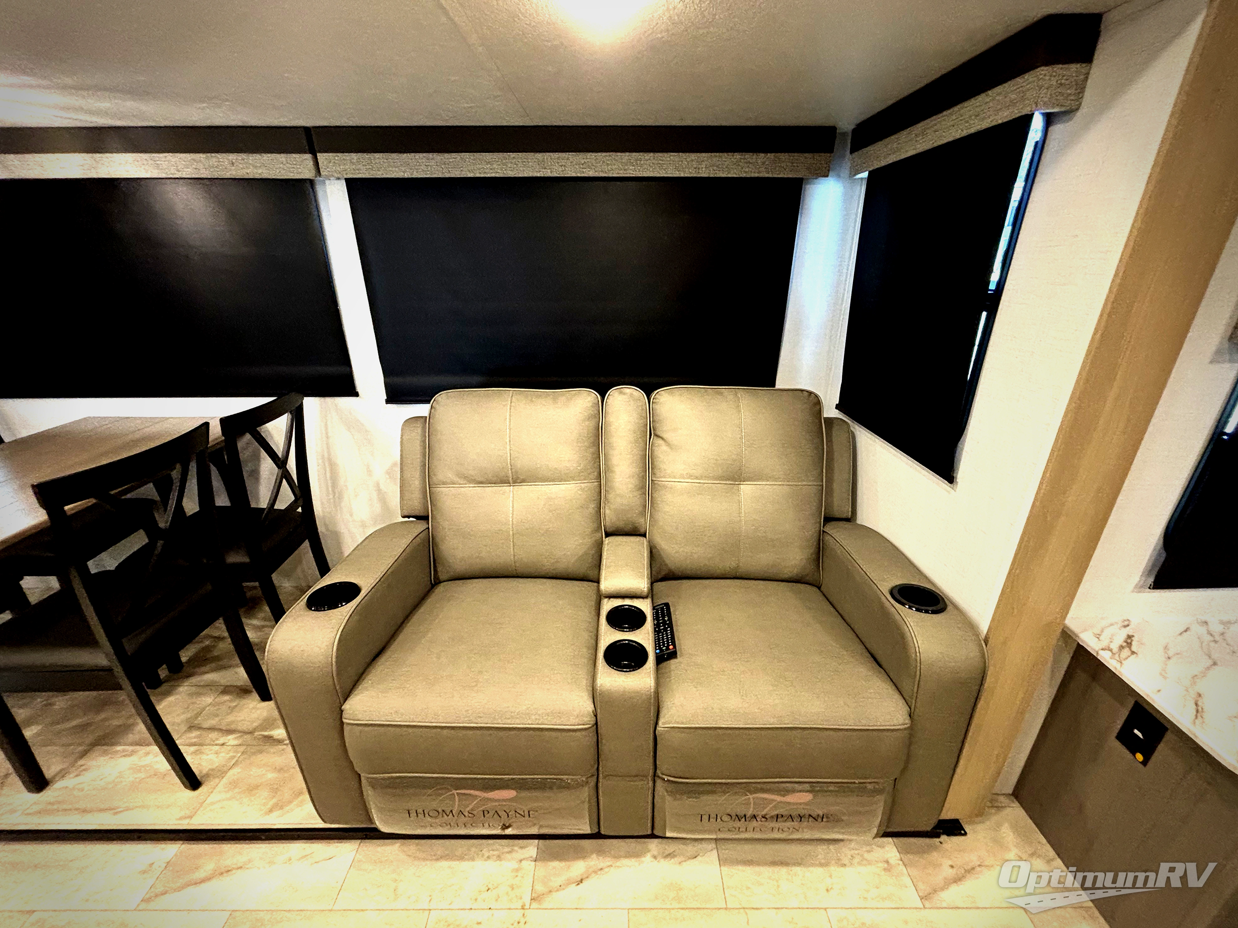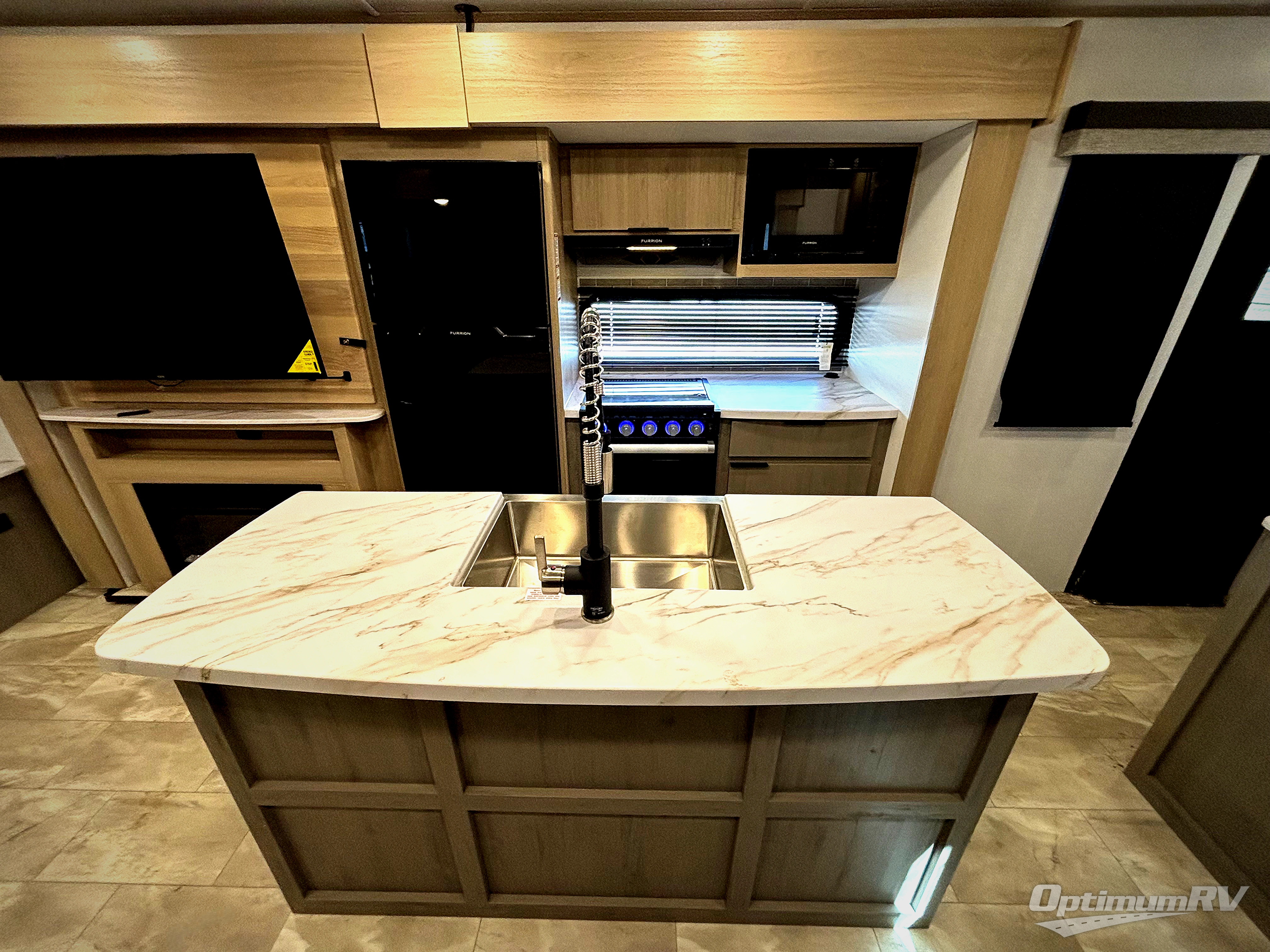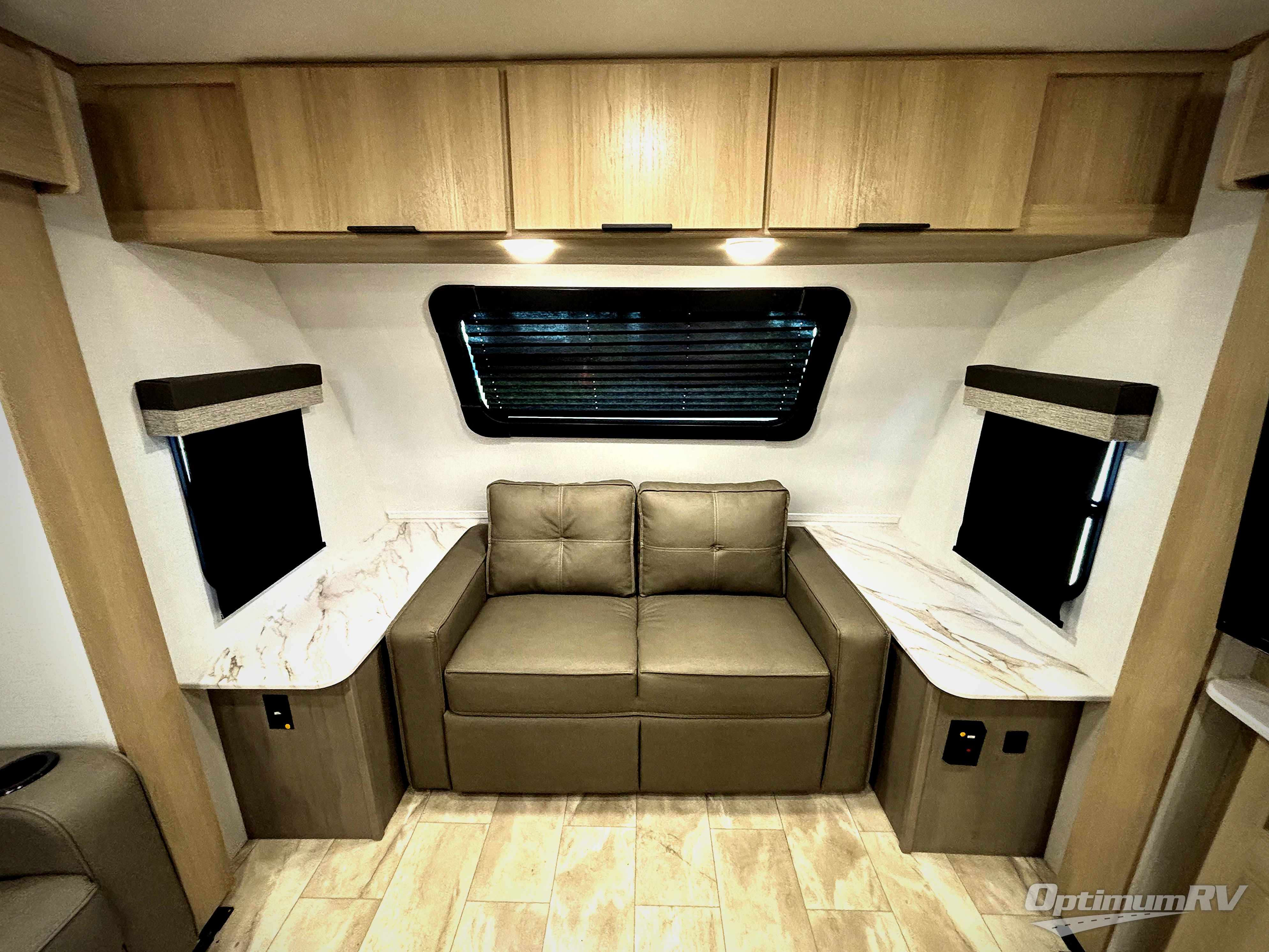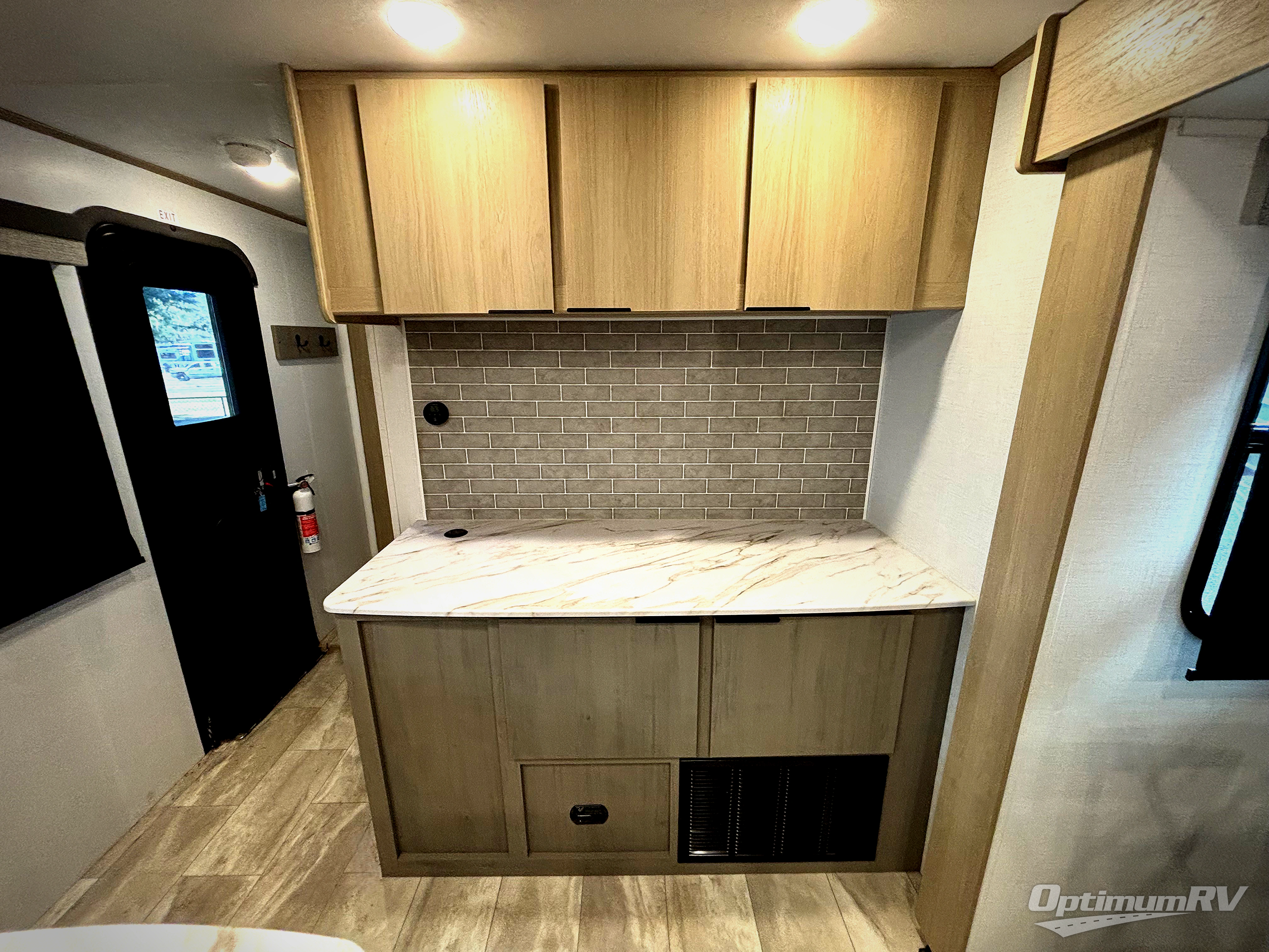 Enjoy ultimate family vacations or trips with friends in this spacious travel trailer. The dual opposing slides in the front living area open up the whole unit for a more at-home feel, and you'll find plenty of seating spaces on the theater seating with a foot rest, booth dinette, and jack knife sofa. The chef of the family will appreciate the extra counter space provided by the kitchen island, plus there is an extra counter with cabinets above for dishes and food. There is an outside kitchen that will come in handy if you like to cook breakfast outdoors, and the power awning with LED lights will provide your crew with shade as they wait for the food to be done. You and your spouse will love retreating to the rear private bedroom for bed each night. Here, the slide out king bed will provide a great night's rest, plus you will have your own fireplace, a closet, and linen storage for more belongings!
