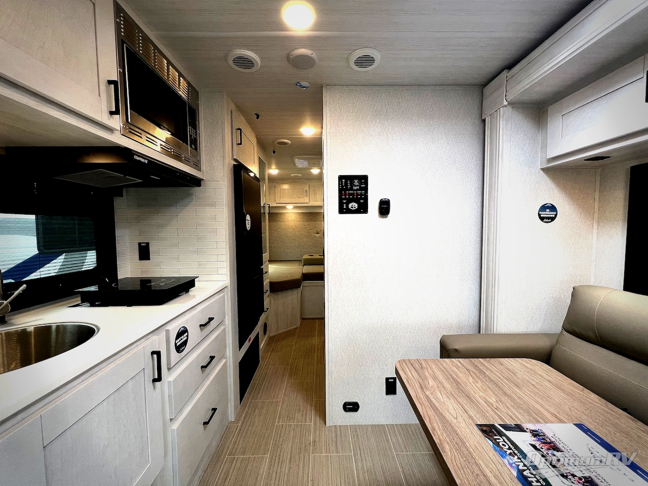 The Alita Class C gas motorhome is fueled by a 3.5L EcoBoost V6 engine which sits on the all-new Ford AWD 350 Transit chassis with 10-speed automatic Selectshift transmission. The Alita features Azdel composite sidewall and slidebox construction along with a one-piece automotive painted fiberglass front cap, Dicor Diflex II TPO roof membrane, and side port solar panel hook-up, plus more. On the inside, a cab over bunk for added sleeping or storage, a portable induction cooktop, a premium subway tile backsplash, and the Alita value package also features a luxury legless Girard awning with LED light strip, panoramic windows with integrated night shades for great views during the day and privacy when you want it at night. You will also appreciate the solar charge package option and so much more!