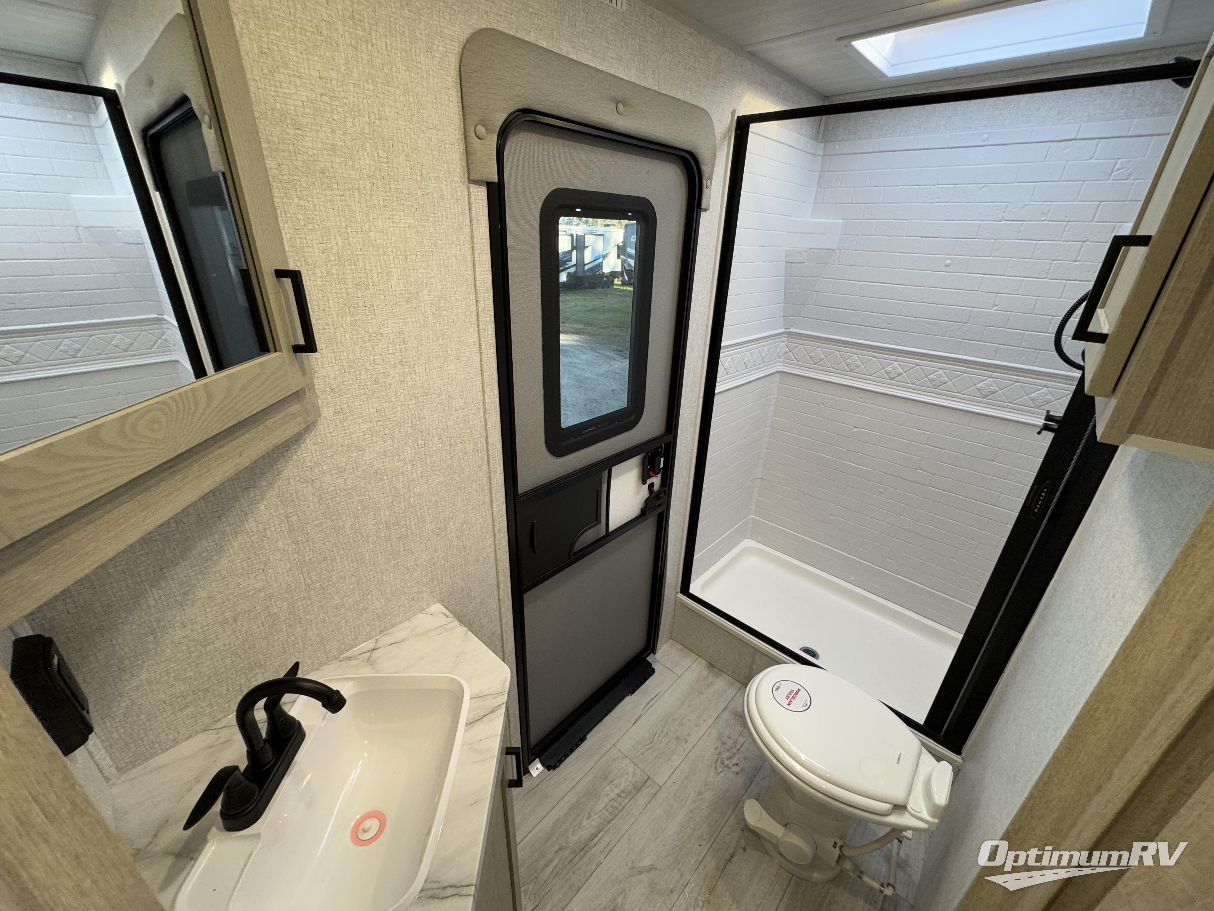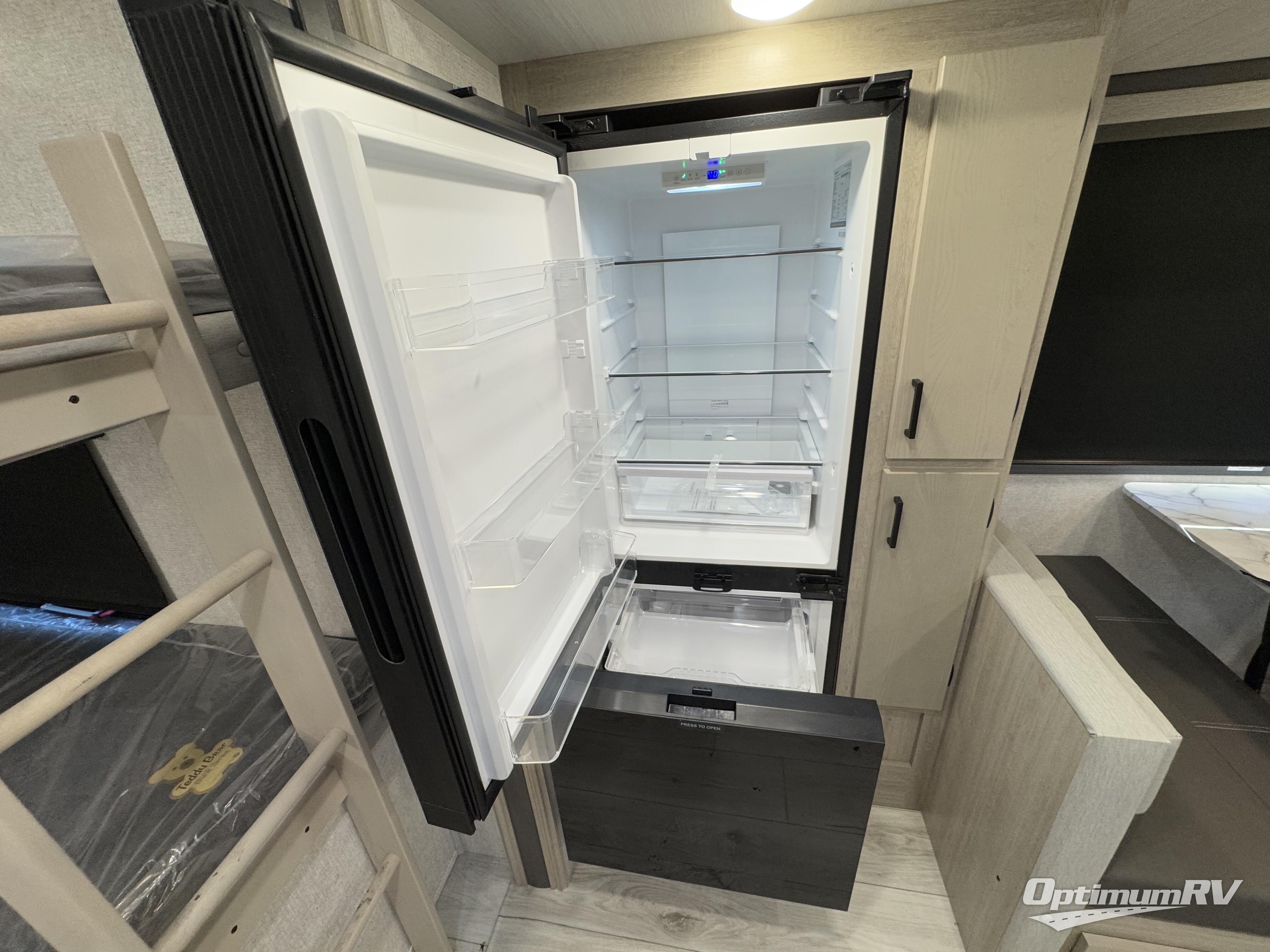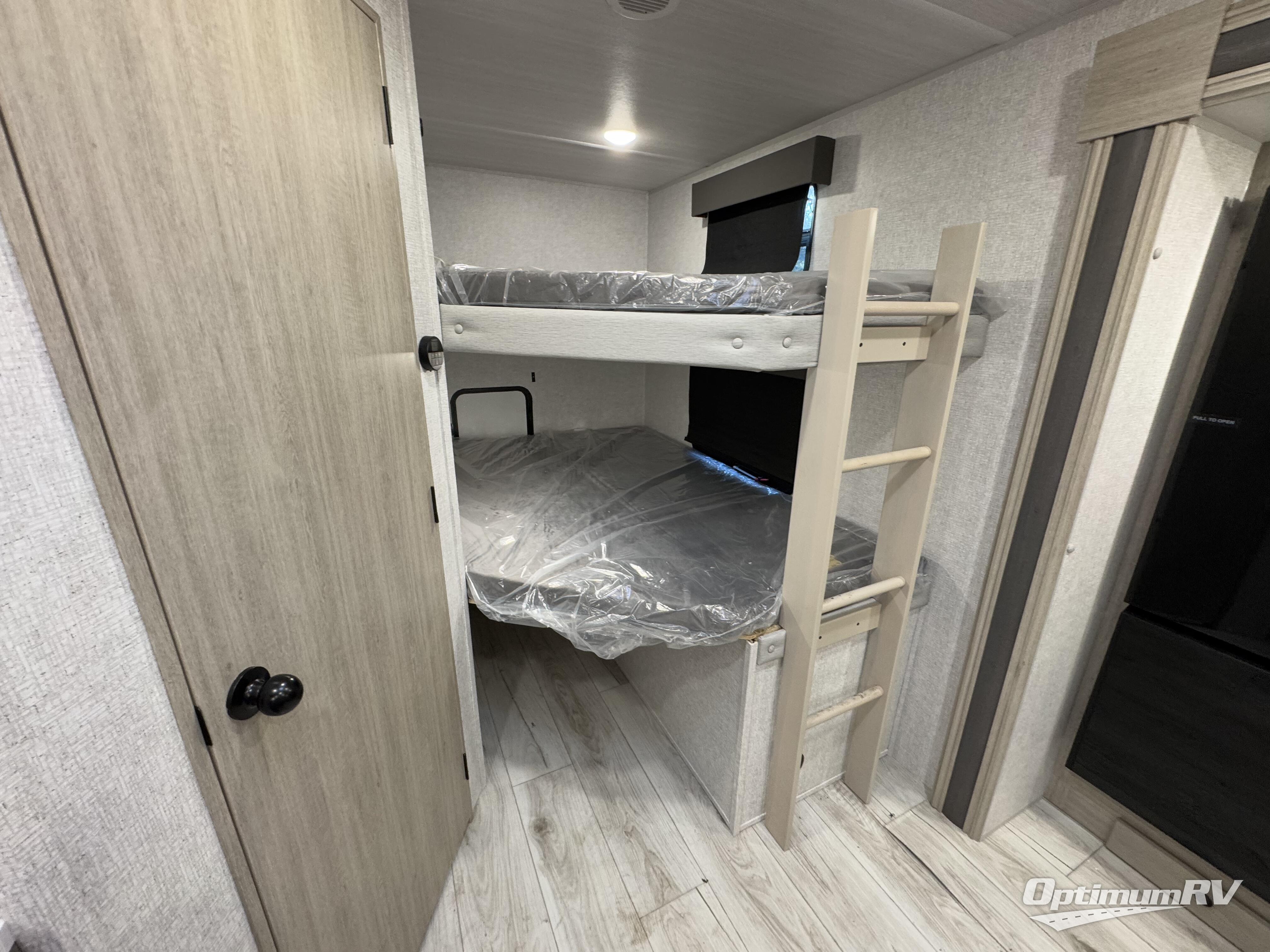 You can comfortably sleep four to six in this travel trailer thanks to the rear double bunk beds and a king bed. There is also additional storage where you will find plenty of space as well as in the overhead cabinets and dual wardrobes and night stands. The combined living area and kitchen includes a large slide for more space, and a booth dinette with an optional free-standing dinette. Great accessibility thanks to the two entry doors. In the exterior, there is also a 21´ awning and a Kayak door, especially for the adventurous ones! finally after a long day take a comfortable and relaxing shower in our full rear bathroom.
