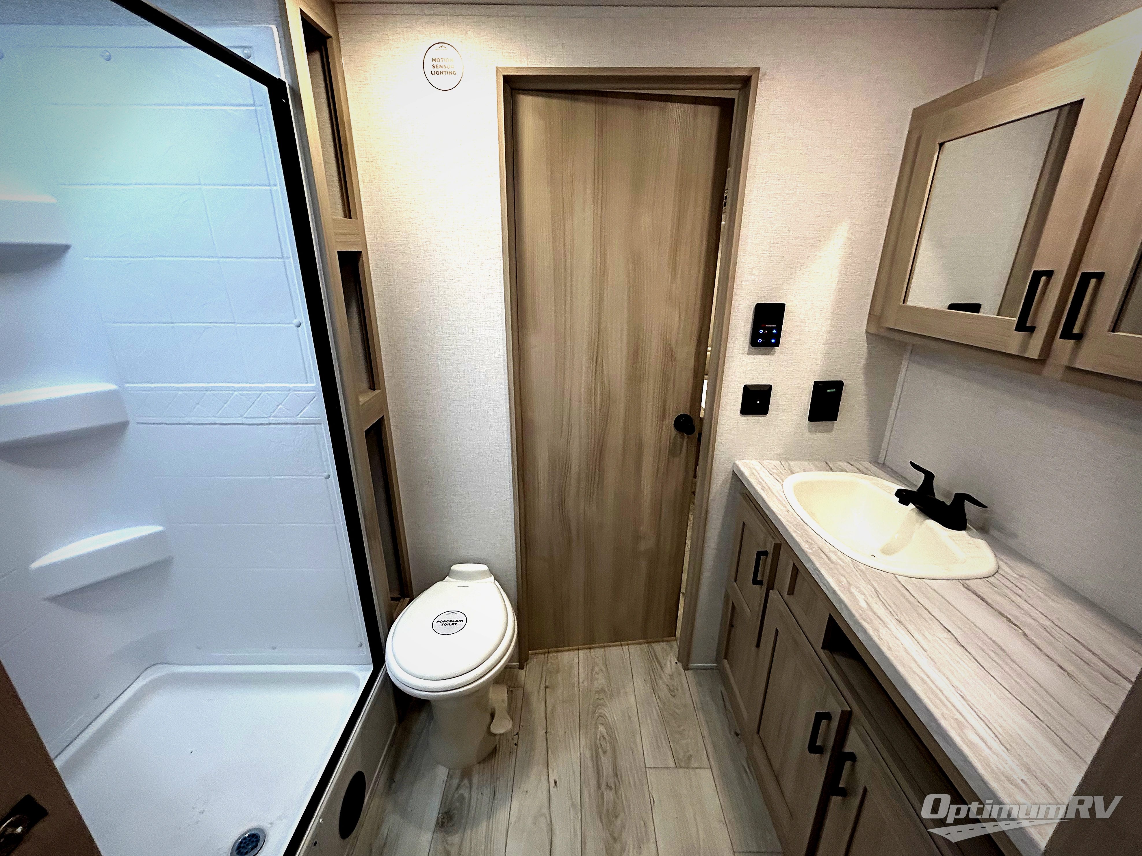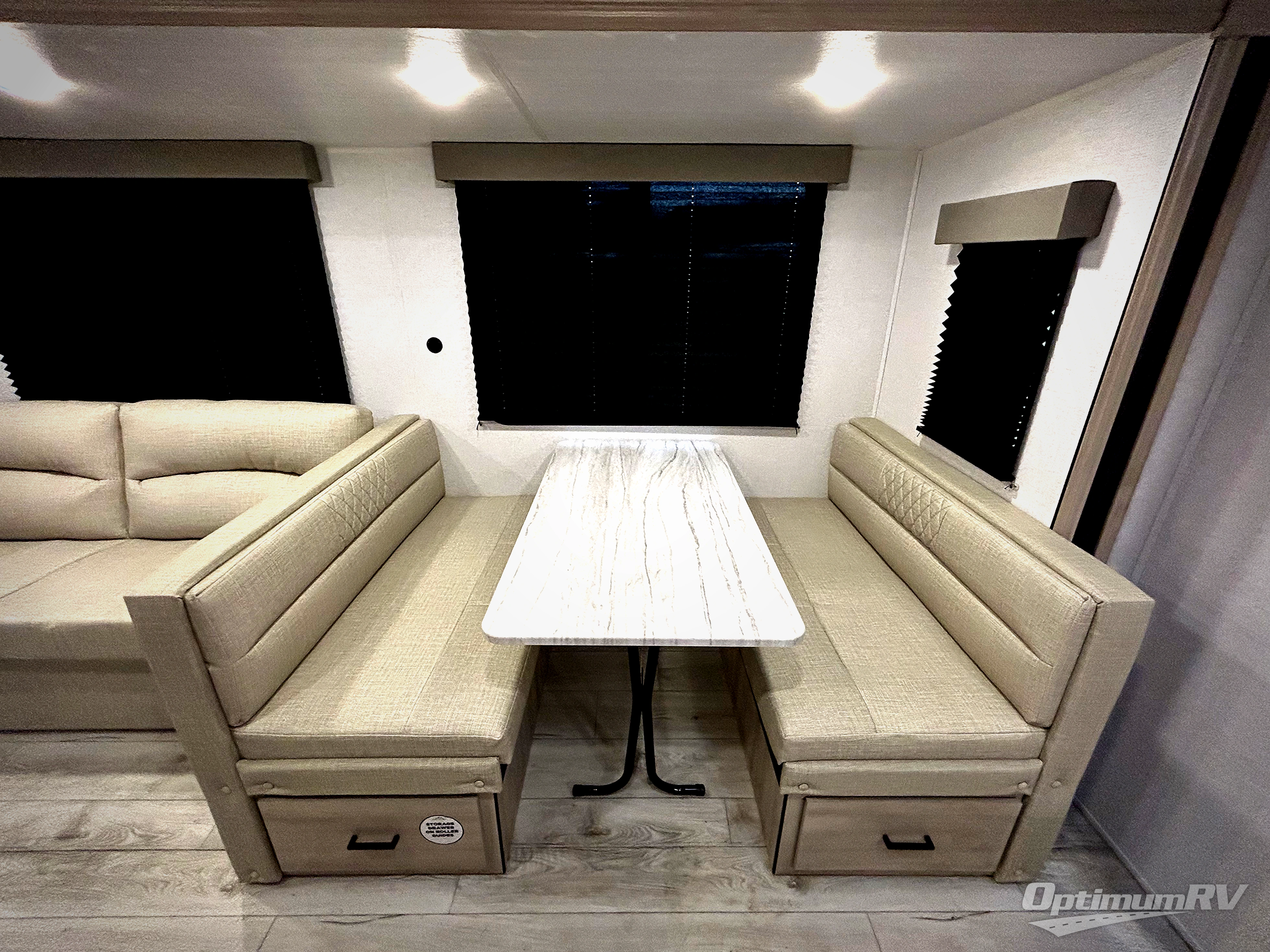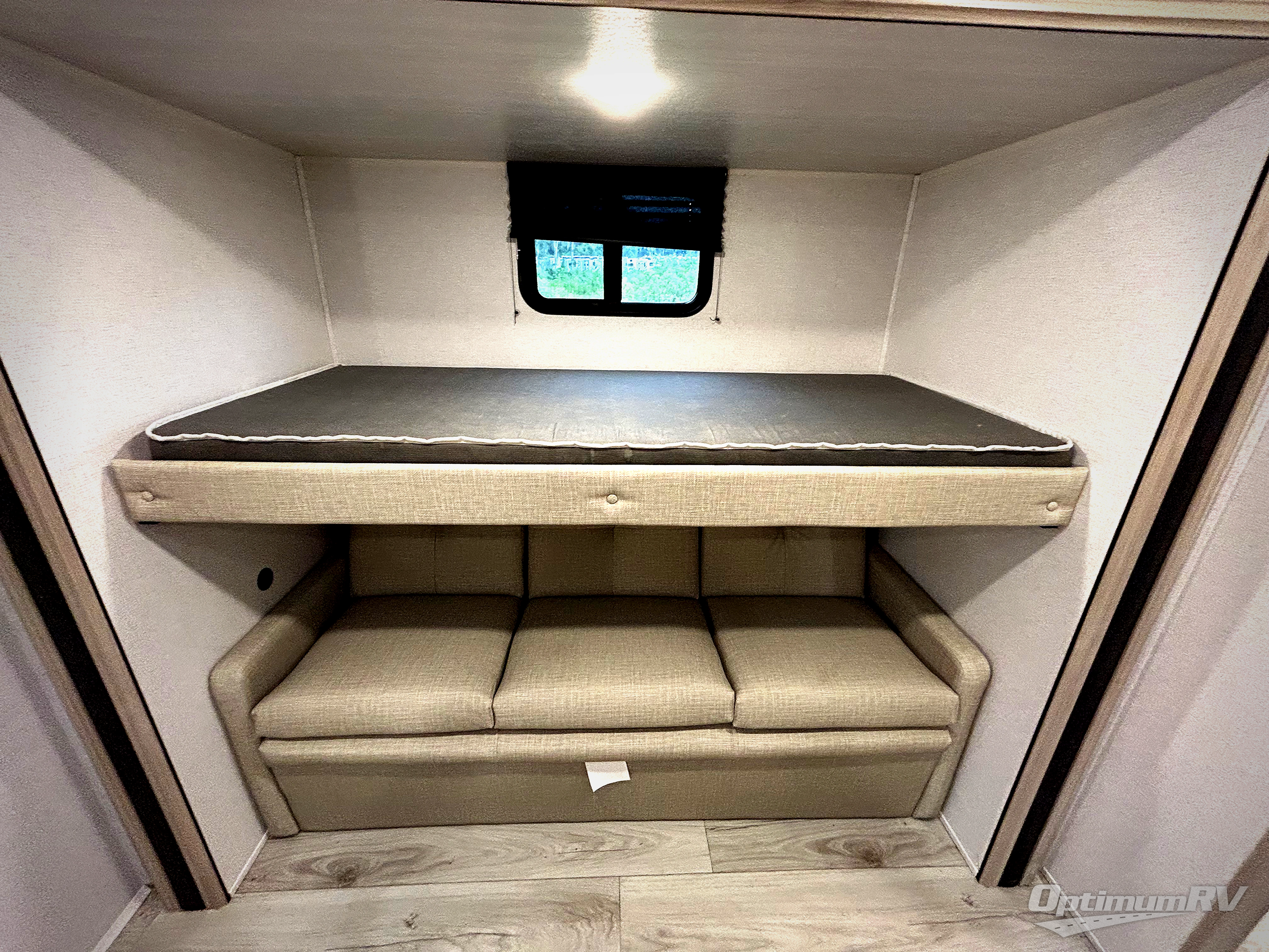 Head to the RV park for a long-weekend or week-long break from your everyday routine with this trailer at your favorite campsite. After setting up the two slide outs and the 15' power awning, you can relax inside on the jack knife sofa, dine at the oversized booth dinette or whip up a meal in the L-shaped kitchen. Everyone will enjoy the fireplace no matter what you are doing. The walk-through bathroom is super convenient, and the front bedroom allows you to live like royalty in privacy. The rear bunkhouse also offers privacy and includes three bunk beds and a sofa, plus storage. Your kids or guests will love having their own room. And the exterior offers an optional outdoor kitchen, an oversized pass-through storage for your larger gear like fishing poles, outdoor tables and bags of charcoal, plus there are two spray ports to easily rinse off dirty bikes, shoes and such.