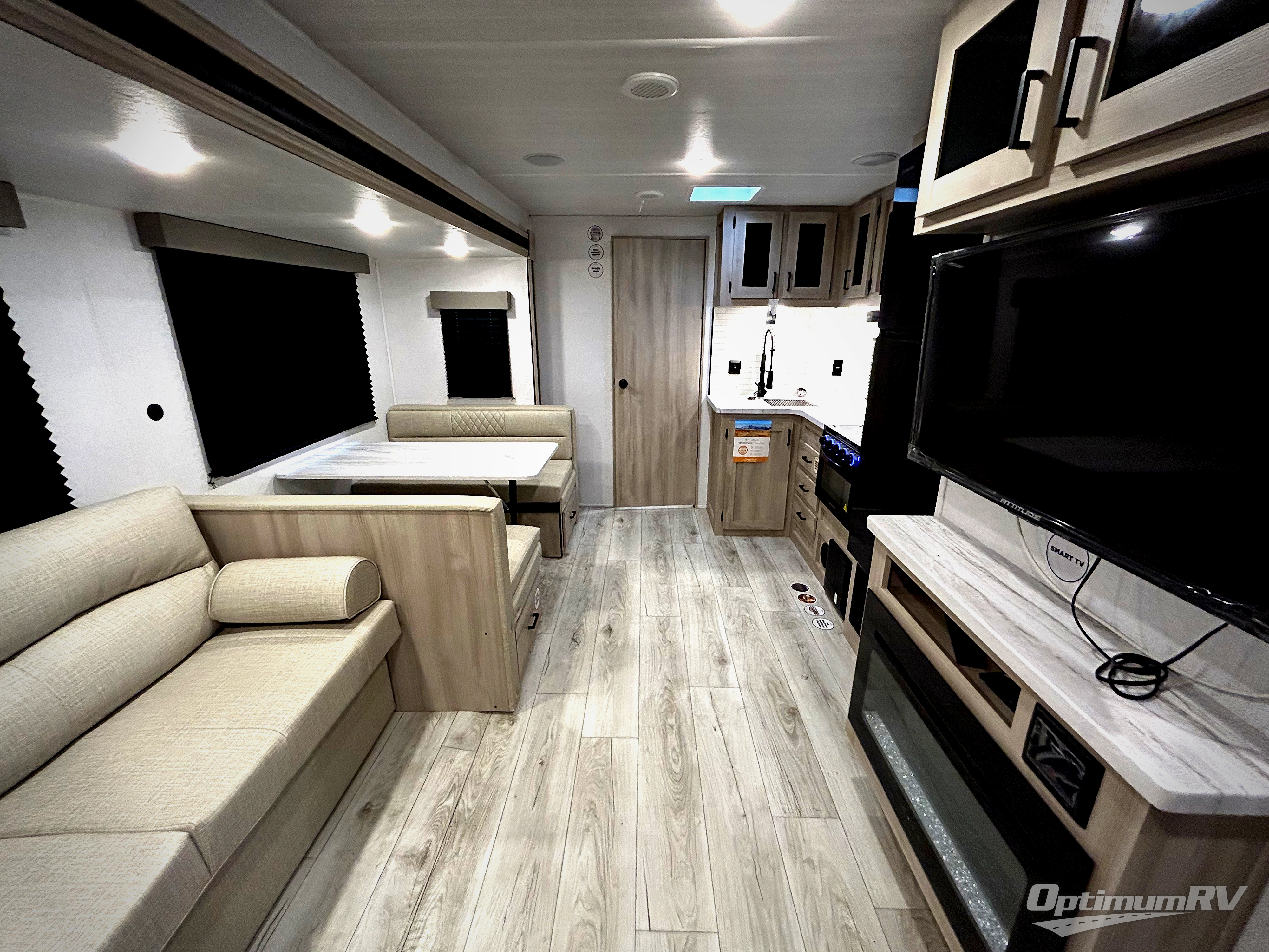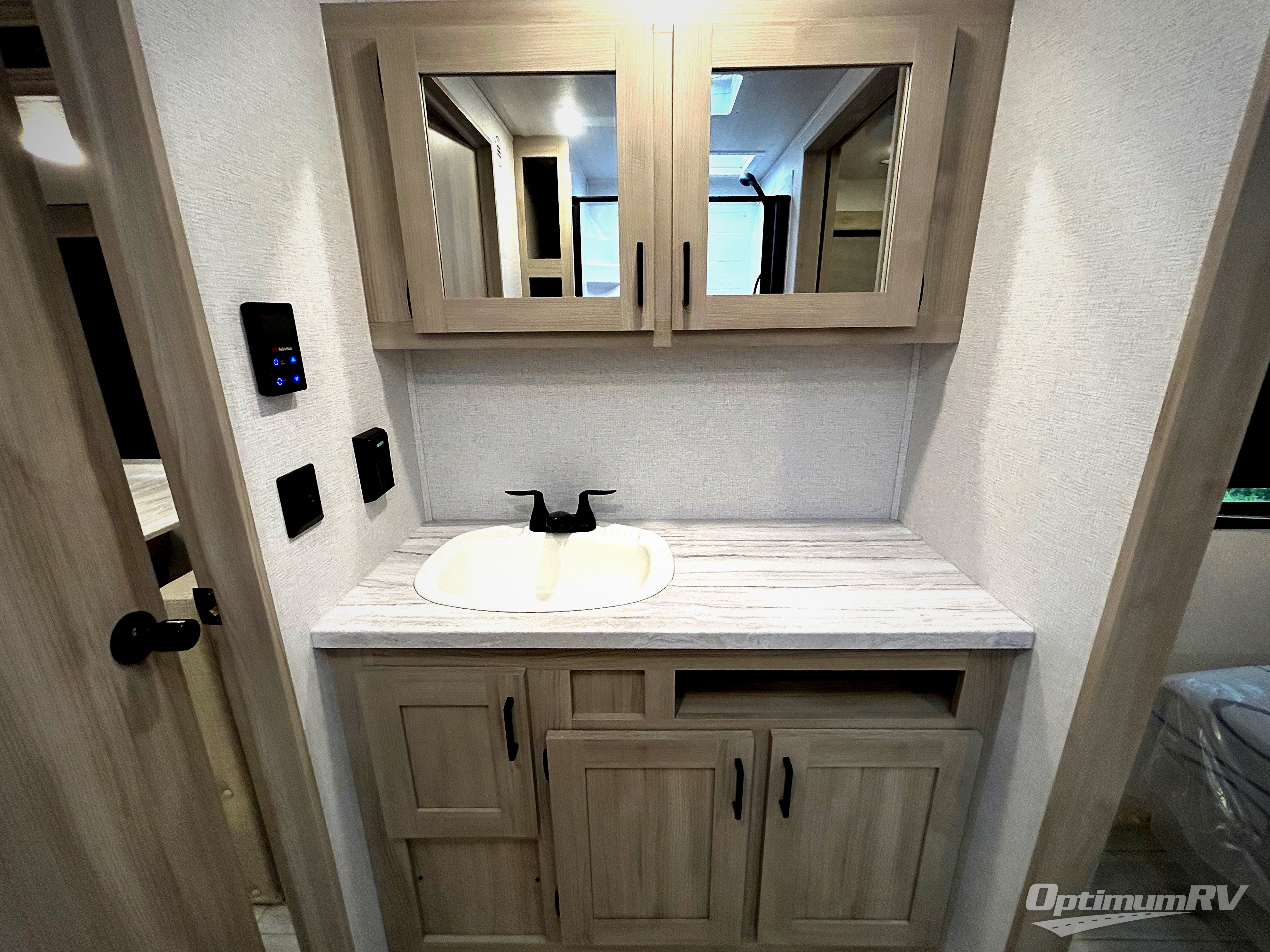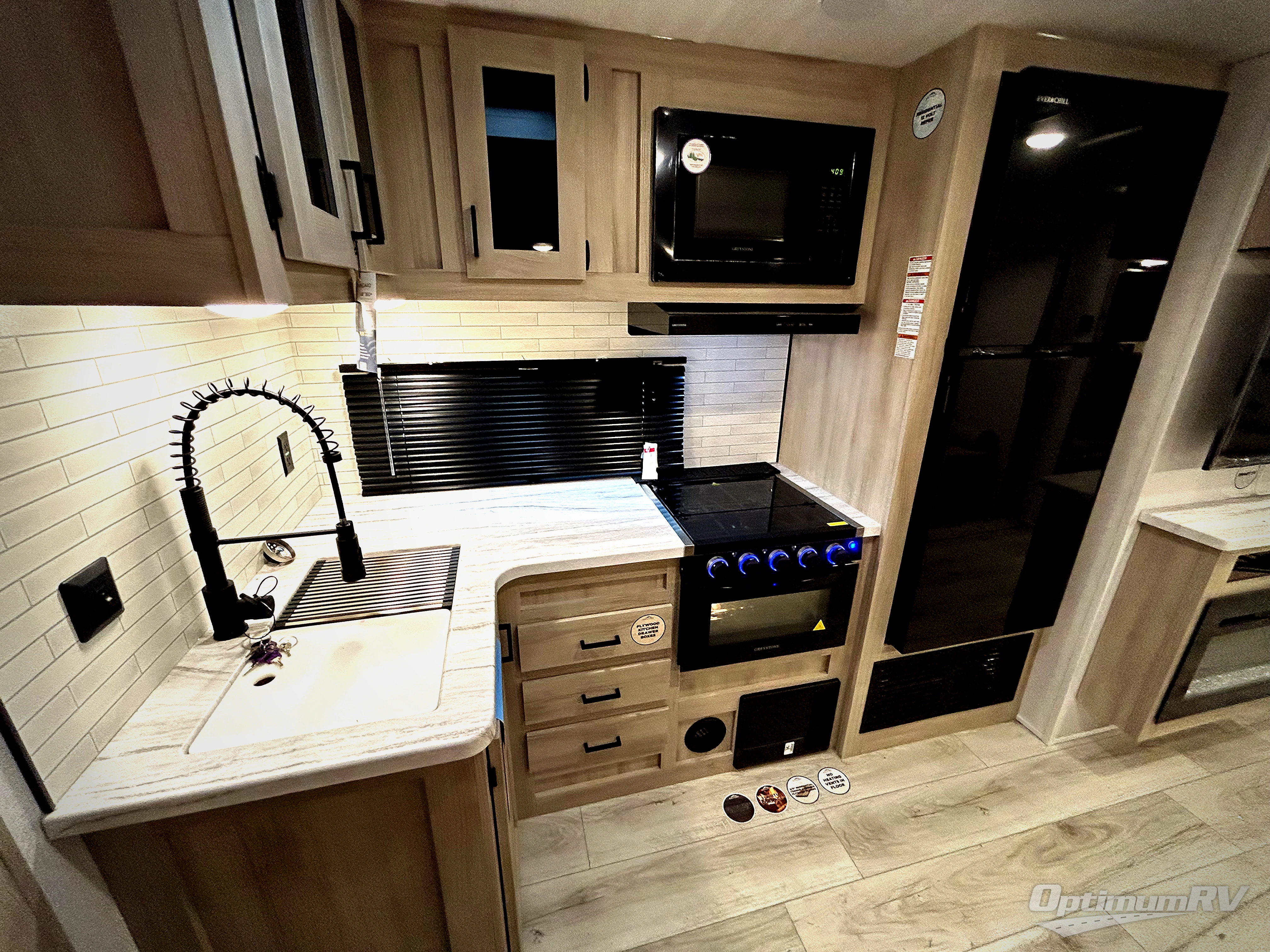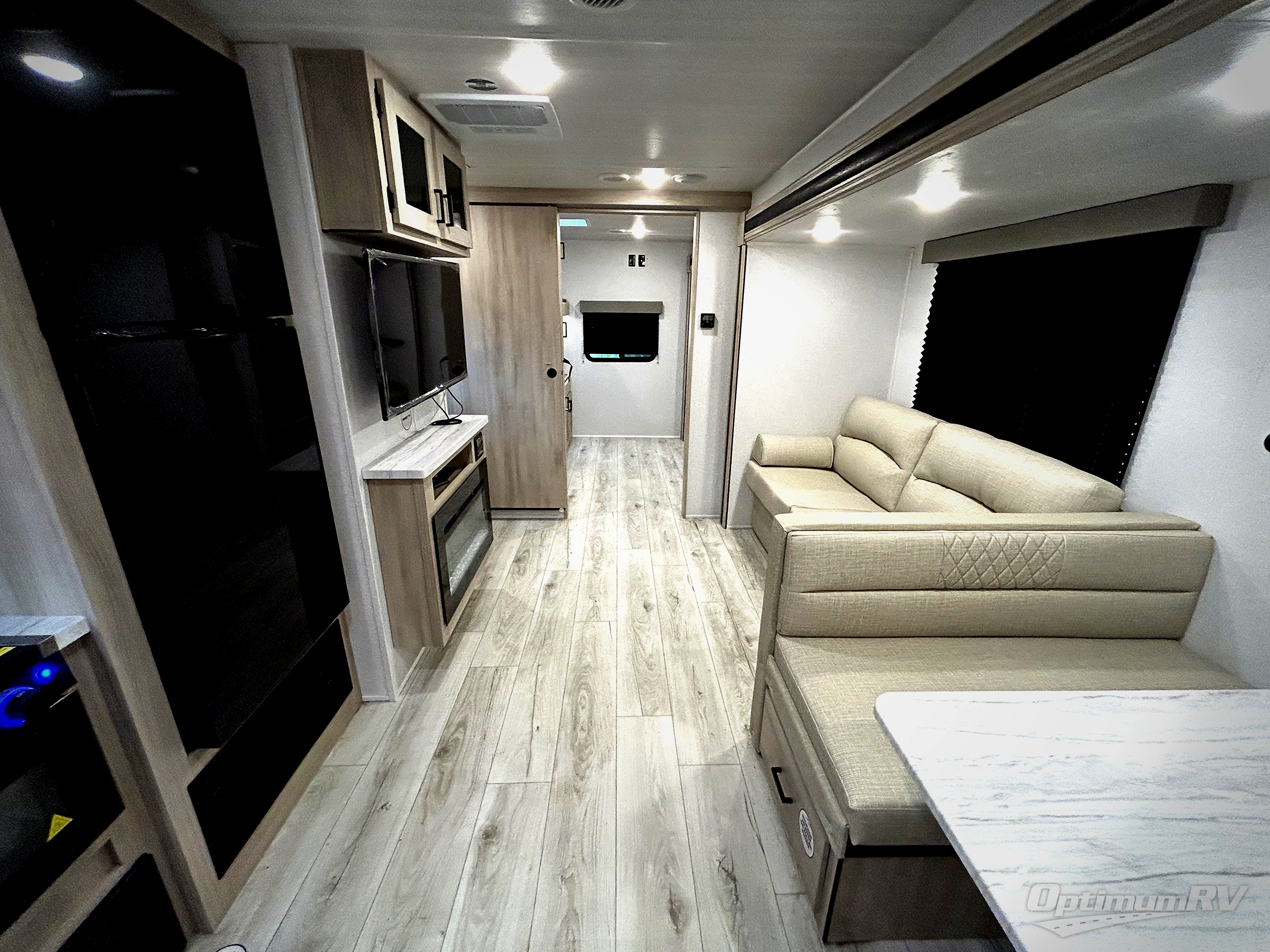 Head to the RV park for a long-weekend or week-long break from your everyday routine with this trailer at your favorite campsite. After setting up the two slide outs and the 15' power awning, you can relax inside on the jack knife sofa, dine at the oversized booth dinette or whip up a meal in the L-shaped kitchen. Everyone will enjoy the fireplace no matter what you are doing. The walk-through bathroom is super convenient, and the front bedroom allows you to live like royalty in privacy. The rear bunkhouse also offers privacy and includes three bunk beds and a sofa, plus storage. Your kids or guests will love having their own room. And the exterior offers an optional outdoor kitchen, an oversized pass-through storage for your larger gear like fishing poles, outdoor tables and bags of charcoal, plus there are two spray ports to easily rinse off dirty bikes, shoes and such.