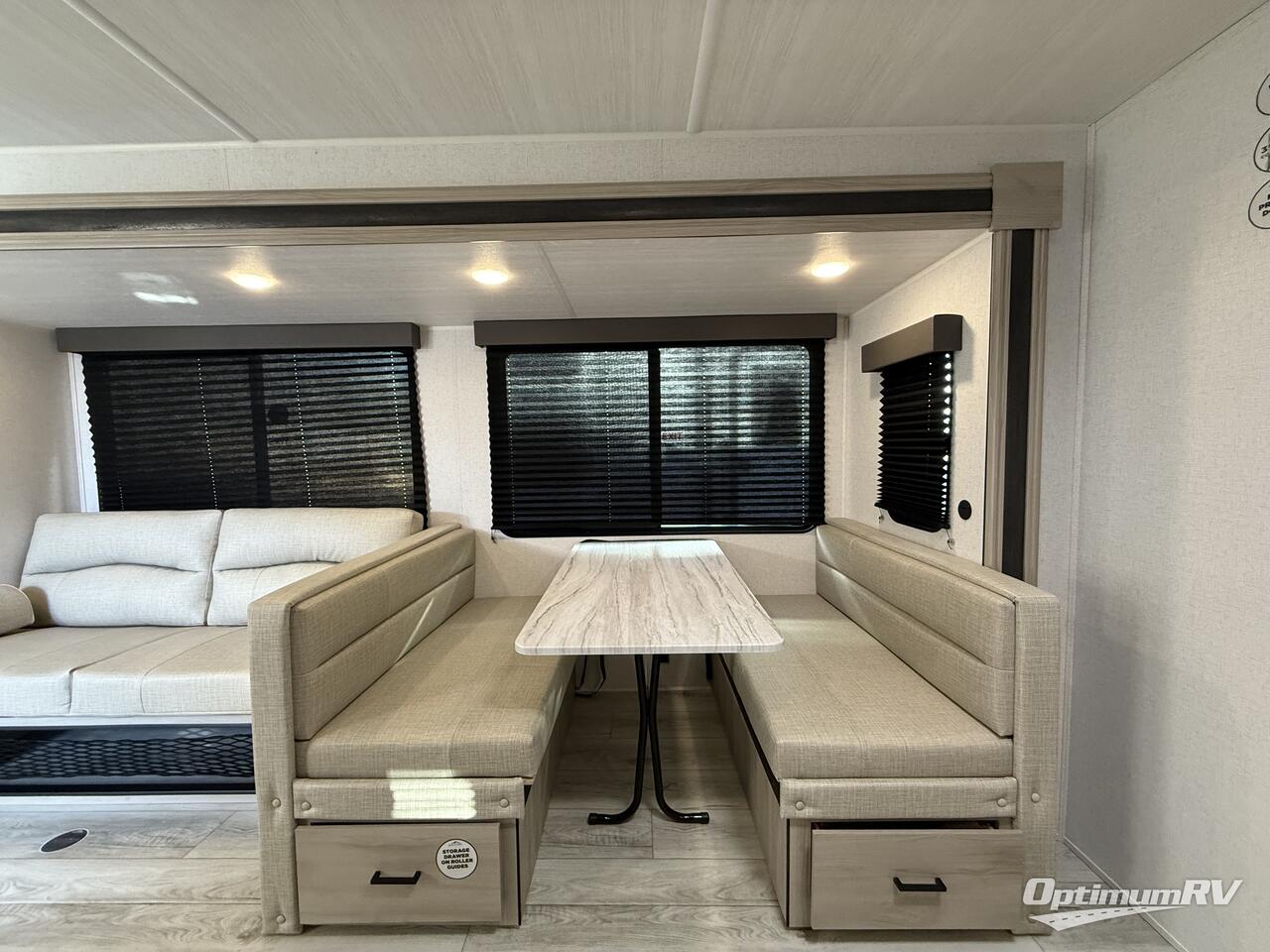 Head to the RV park for a long-weekend or week-long break from your everyday routine with this trailer at your favorite campsite. After setting up the two slide outs and the 15' power awning, you can relax inside on the jack knife sofa, dine at the oversized booth dinette or whip up a meal in the L-shaped kitchen. Everyone will enjoy the fireplace no matter what you are doing. The walk-through bathroom is super convenient, and the front bedroom allows you to live like royalty in privacy. The rear bunkhouse also offers privacy and includes three bunk beds and a sofa, plus storage. Your kids or guests will love having their own room. And the exterior offers an optional outdoor kitchen, an oversized pass-through storage for your larger gear like fishing poles, outdoor tables and bags of charcoal, plus there are two spray ports to easily rinse off dirty bikes, shoes and such.