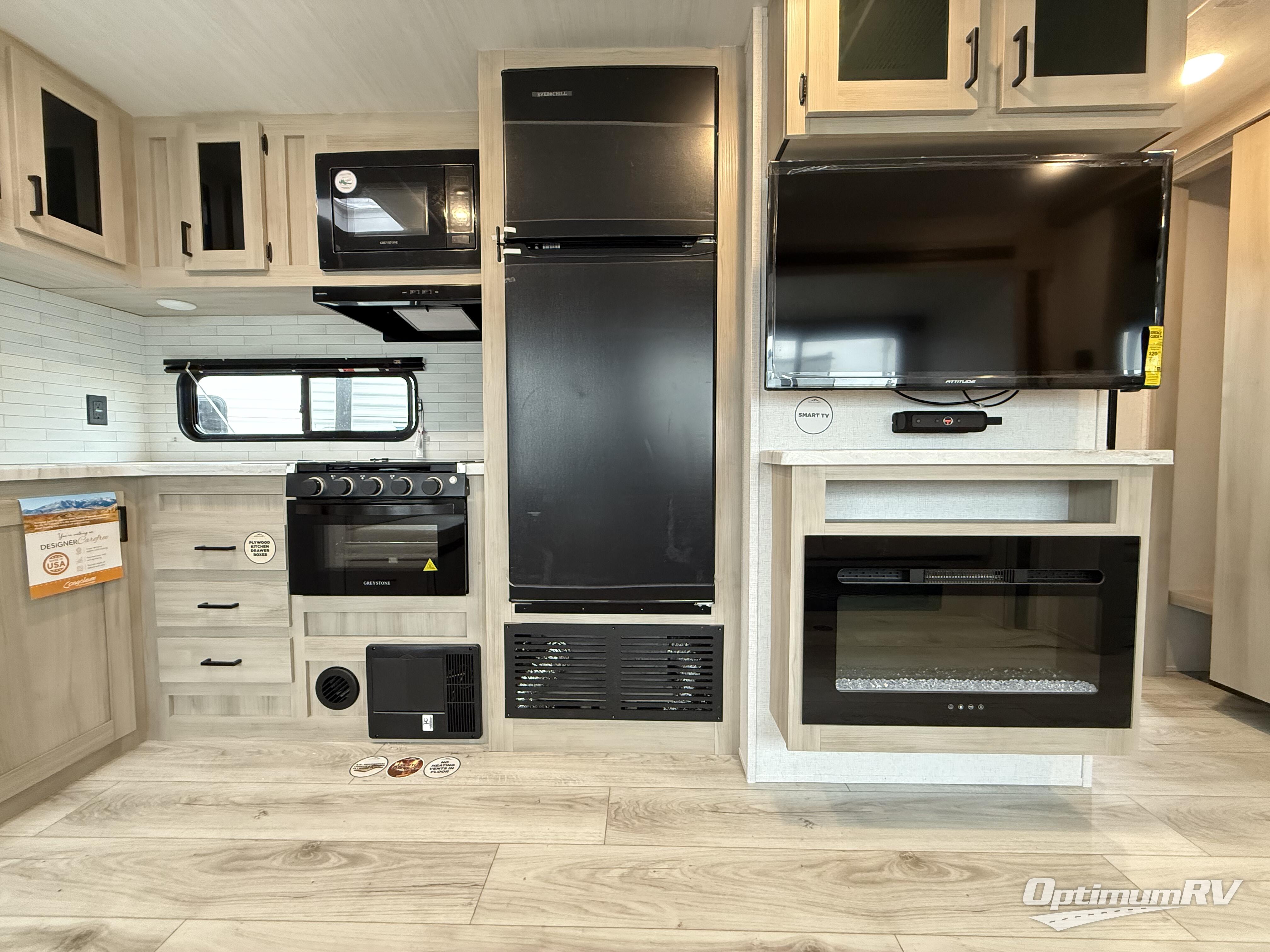 Head to the RV park for a long-weekend or week-long break from your everyday routine with this trailer at your favorite campsite. After setting up the two slide outs and the 15' power awning, you can relax inside on the jack knife sofa, dine at the oversized booth dinette or whip up a meal in the L-shaped kitchen. Everyone will enjoy the fireplace no matter what you are doing. The walk-through bathroom is super convenient, and the front bedroom allows you to live like royalty in privacy. The rear bunkhouse also offers privacy and includes three bunk beds and a sofa, plus storage. Your kids or guests will love having their own room. And the exterior offers an optional outdoor kitchen, an oversized pass-through storage for your larger gear like fishing poles, outdoor tables and bags of charcoal, plus there are two spray ports to easily rinse off dirty bikes, shoes and such.