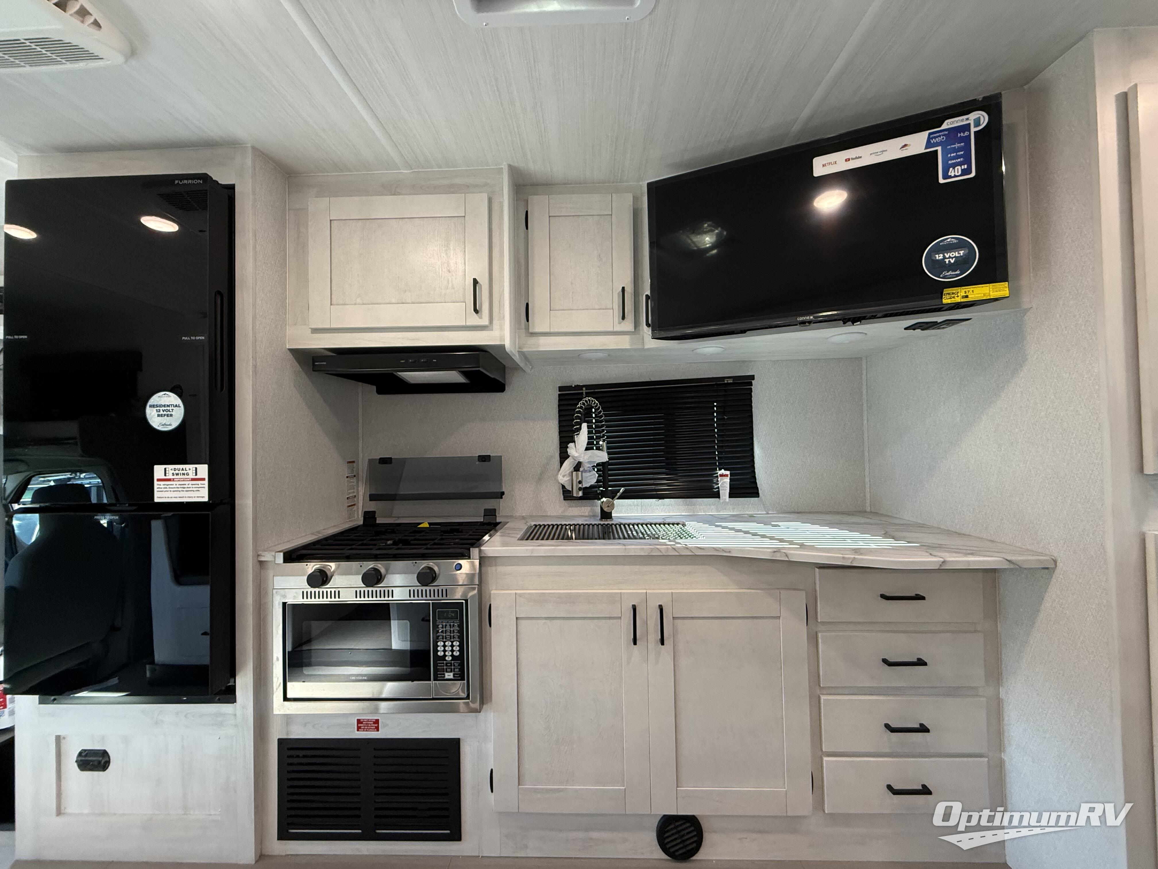 With any Entrada Class C gas motorhome from EAST TO WEST, the construction consists of a completely laminated coach, a one-piece molded fiberglass front cap, 2" thick sidewalls with Azdel composite exterior, a Dicor Diflex ll TPO roof, and integrated entry step. Some of the Entrada value package features include 12V tank heaters to camp during the cooler months, the Winegard Air 360+, plus backup and sideview cameras with monitor for safety on and off the road. The interior offers a 7-foot interior height for a spacious feel, and hardwood shaker style cabinets. Choose an Entrada for its tasteful design, attention to detail, bright interior and/or affordable price-point!