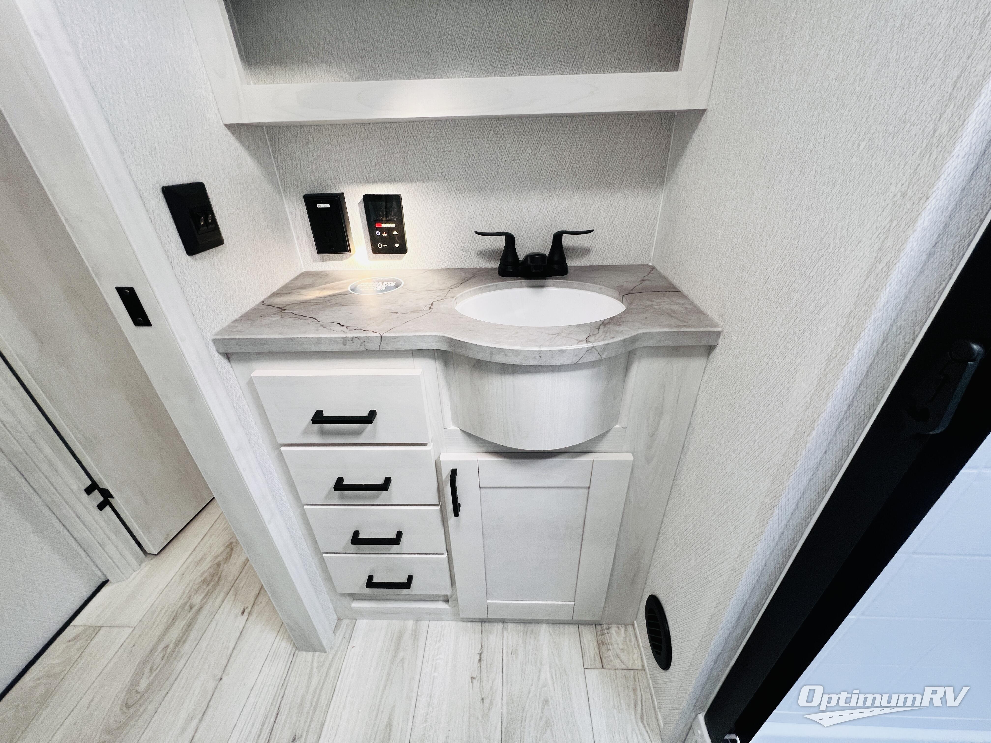 At any point you want to get away to your favorite secluded spot, you can grab your EAST TO WEST Tandara fifth wheel and head out because it has a 4 Seasons Package that will keep you protected during all seasons! There is a MORryde CRE 3000® suspension that will make traveling smooth, and the MORryde StepAbove entry steps provide a stable entrance into the unit. The Tandara has been prepped for a rearview camera, and the interior is very stylish with its artisan maple décor. Some of the luxury features you'll find are the shaker style cabinet doors, deep-seated stainless steel farmhouse sink, plus dimmable LED lights in the living area, kitchen, and bedroom!