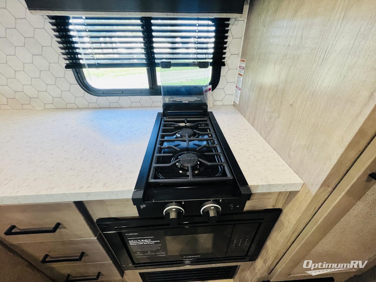 You'll love every minute spent in this spacious travel trailer that can sleep up to six. The patent-pending repositionable EmberTrack E-Track bunk/storage system includes 74" x 45" cargo space, and there are multiple single/double bunk configurations to fit your needs. The front walk-around true residential queen bed includes dual nightstands and dual wardrobes, plus a privacy curtain if you have guests staying over. This E-Series kitchen includes an air fryer convection microwave, a two burner cooktop, plus a breakfast bar with bar stools so you can visit with the chef as they cook meals. A legless dinette or optional theater seating will provide a place to dine, or you can take your plate outdoors to sit under the 14' power awning with a dimmable LED light. You'll also find a pass-through storage outside, along with a docking station and a kayak/bike storage door!