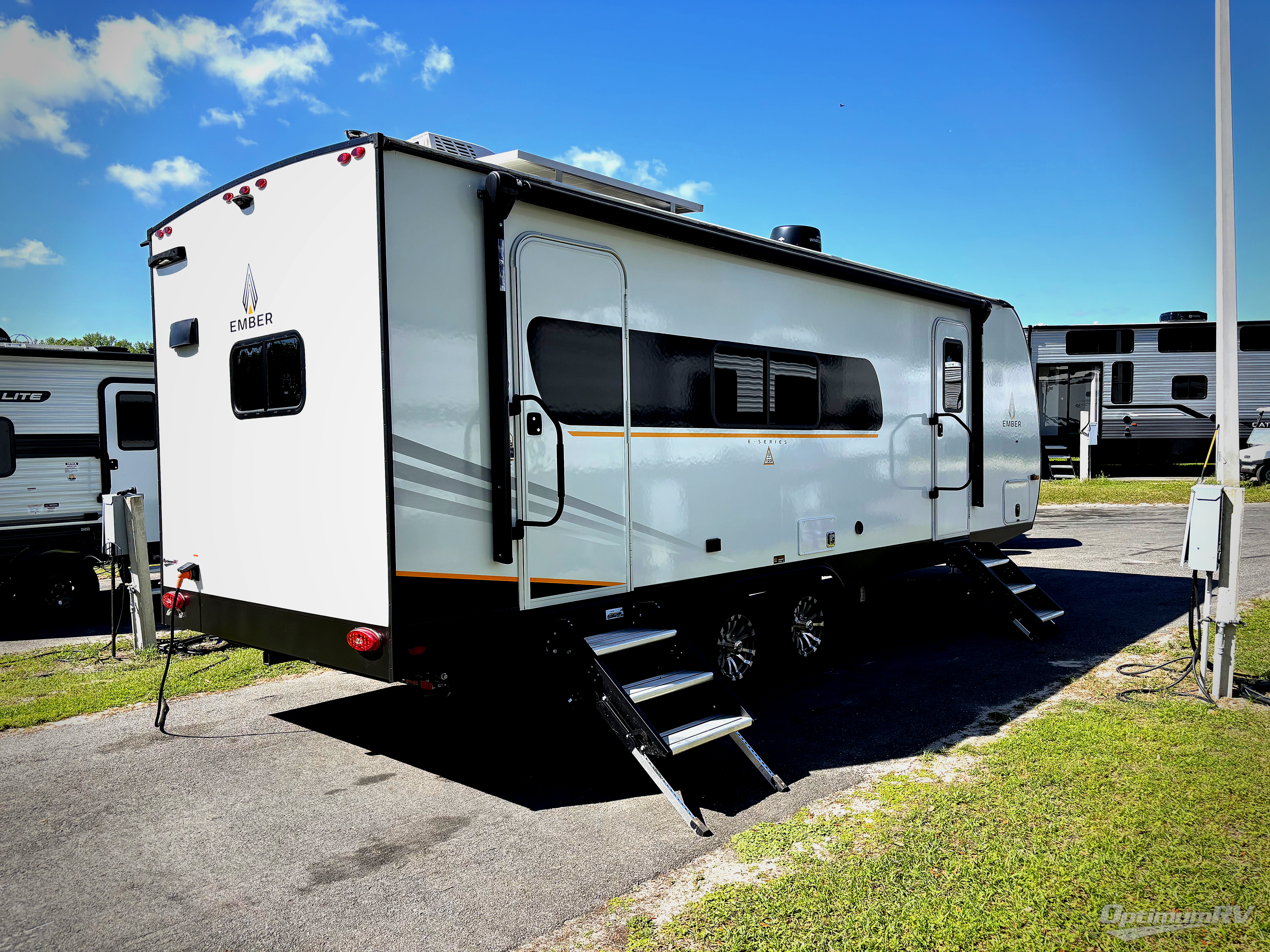 With any E-Series travel trailer by Ember RV you will enjoy a lightweight RV with all the "Essentials" needed for memorable trips in the great outdoors! Each model is constructed with durable laminated Azdel Onboard composite walls, a full walkable roof with a one-piece Tufflex PVC roofing material, and a gel-coated fiberglass exterior. The Dexter axles with E-Z lube hubs and forward self-adjusting electric brakes plus Goodyear Endurance tires will provide a smooth tow from home to campground. You will appreciate the Congoleum DiamondFlor "carpetless" interior that is easy to clean, and the hardwood framed cabinet doors will create a more residential feel. Each model includes a tankless on-demand water heater for endless hot showers and an 18,000 BTU Max Cool "Whisper Quiet" A/C, which is the largest single A/C in its class! An EmberLink Smart RV system will let you easily control features such as lights and slides and you can wash away those rainy day blues by watching the HDTV with a built-in Bluetooth AV system. If you're looking for off-grid capabilities, you might want to choose the optional Off-Grid Solar Package with 400 total watts of solar panels, a 2,000W Pure Sine wave inverter, and a Victron MPPT solar controller!