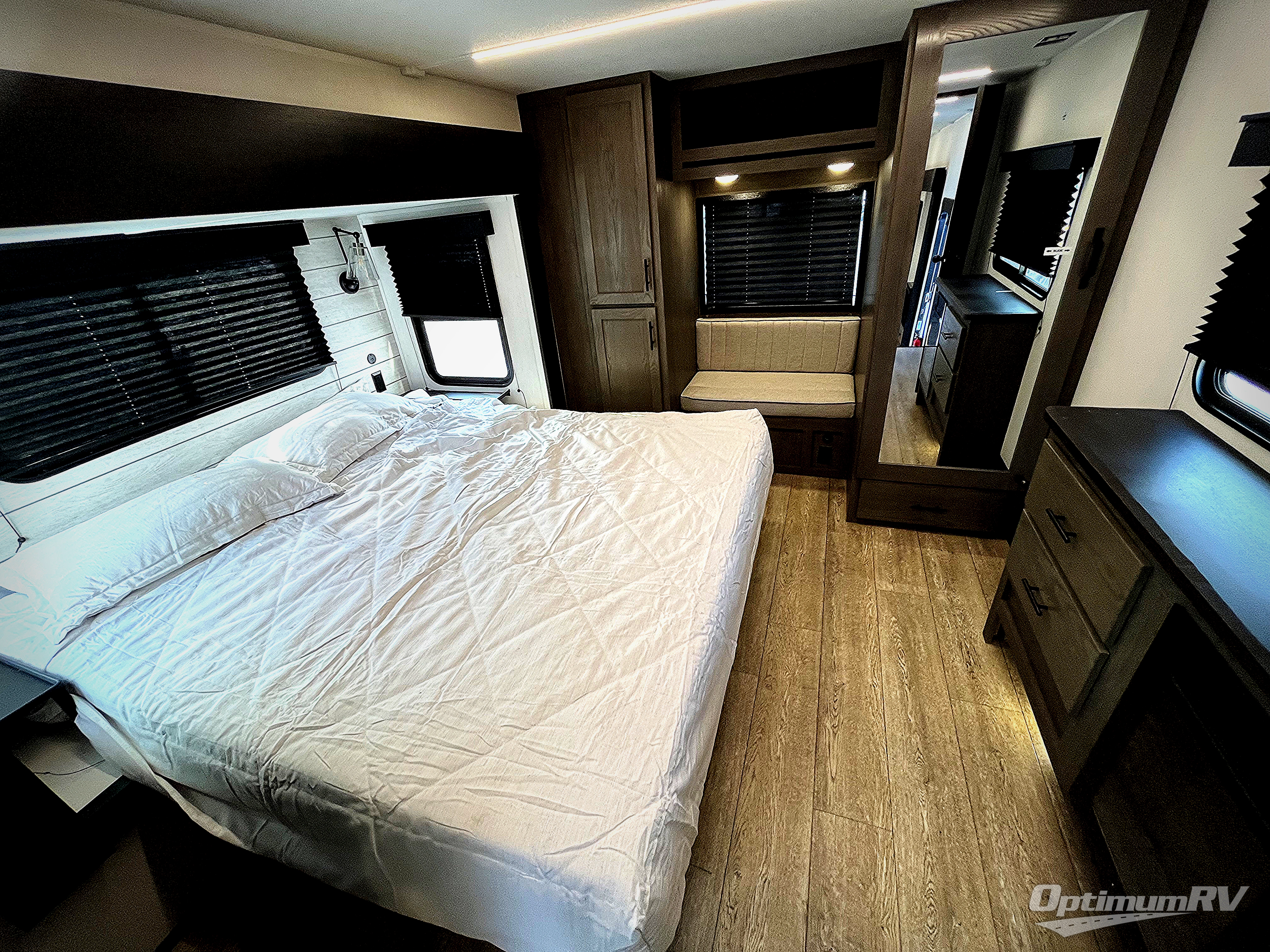 You will have amazing residential comfort in the Forest River Cherokee Arctic Wolf Suite fifth wheels! These units have a “SuperStor” basement storage compartment to allow you to bring more gear, and they have been constructed with a “ToughBend” rigid skirt metal design, a 1x engineered wood “SuperTruss” roof structure with 3/8" decking, and a 5/8” tongue-and-groove plywood floor decking. Each model includes Leash Latch pet safety technology, an outside shower with hot/cold water, preparations for an exterior TV, and motion-sensing lighting. The supersized central air conditioning unit (15,000 BTU) with quick cool and second oversized 15,000 BTU ducted A/C will cool your unit down in a snap when you camp in the hot summer months.