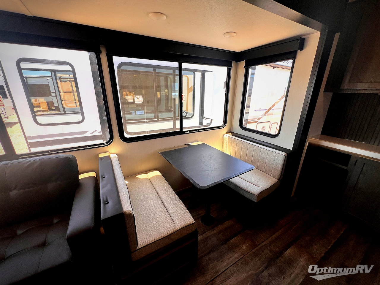 This Cherokee Arctic Wolf Suite fifth wheel is an excellent choice if you have a large family that wants to get away! Not only is there a private bedroom up front for you, but there is also a bedroom suite in the back. This suite has a 54" x 74" bed, a 60" x 80" loft bed, a TV area, a half bathroom all to itself, and the second exterior entry door. What a space! You'll also be highly impressed with the living area because it has a large slide that holds the tri-fold sofa and dinette. The large pantry is another feature you'll appreciate since it can store all of the food needed to feed your group, and the outside kitchen is an added bonus the cook will love!