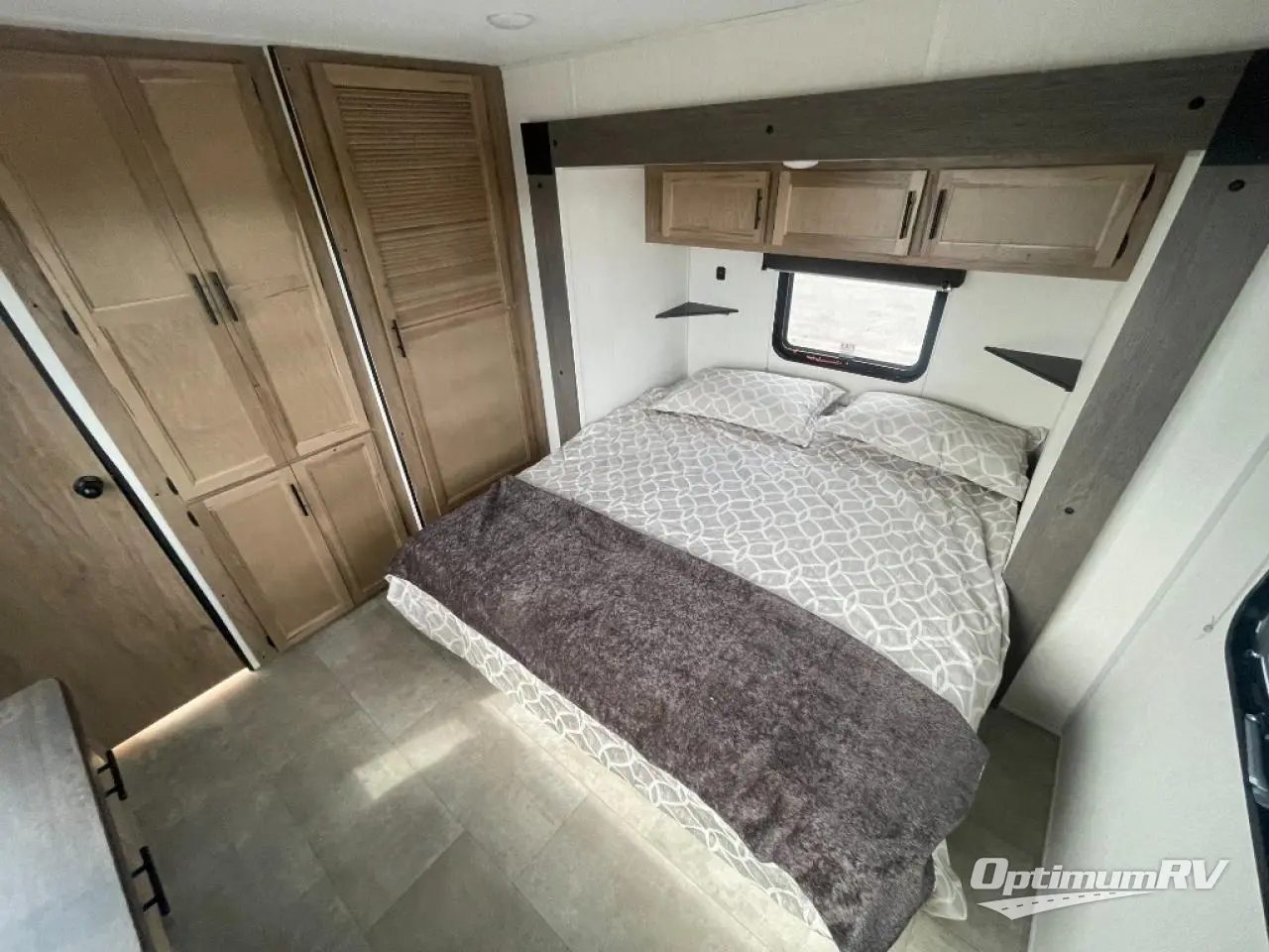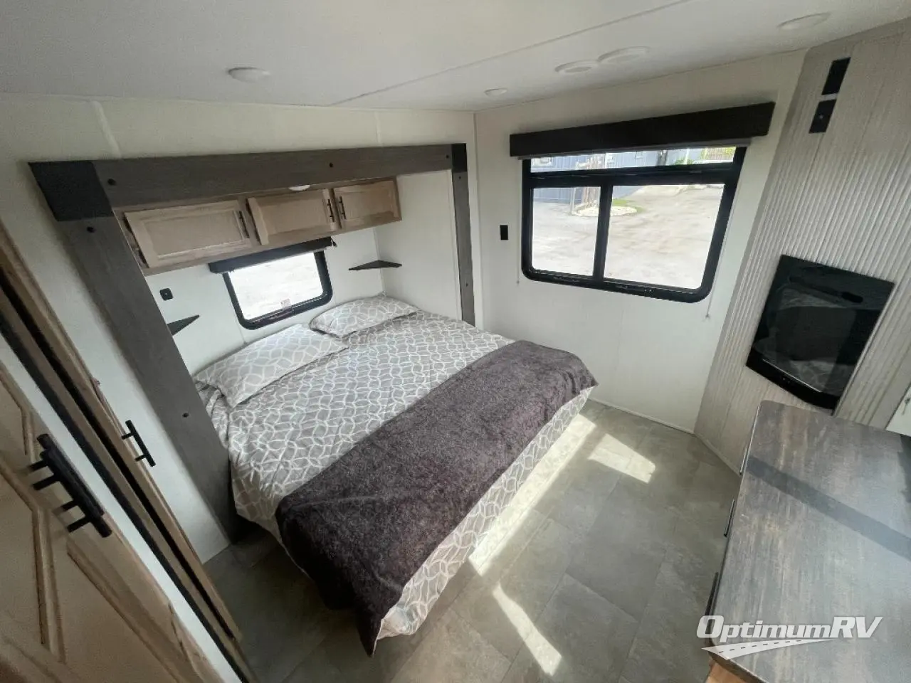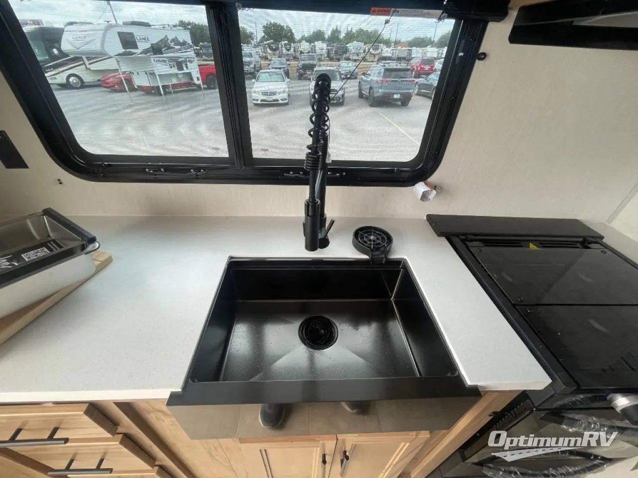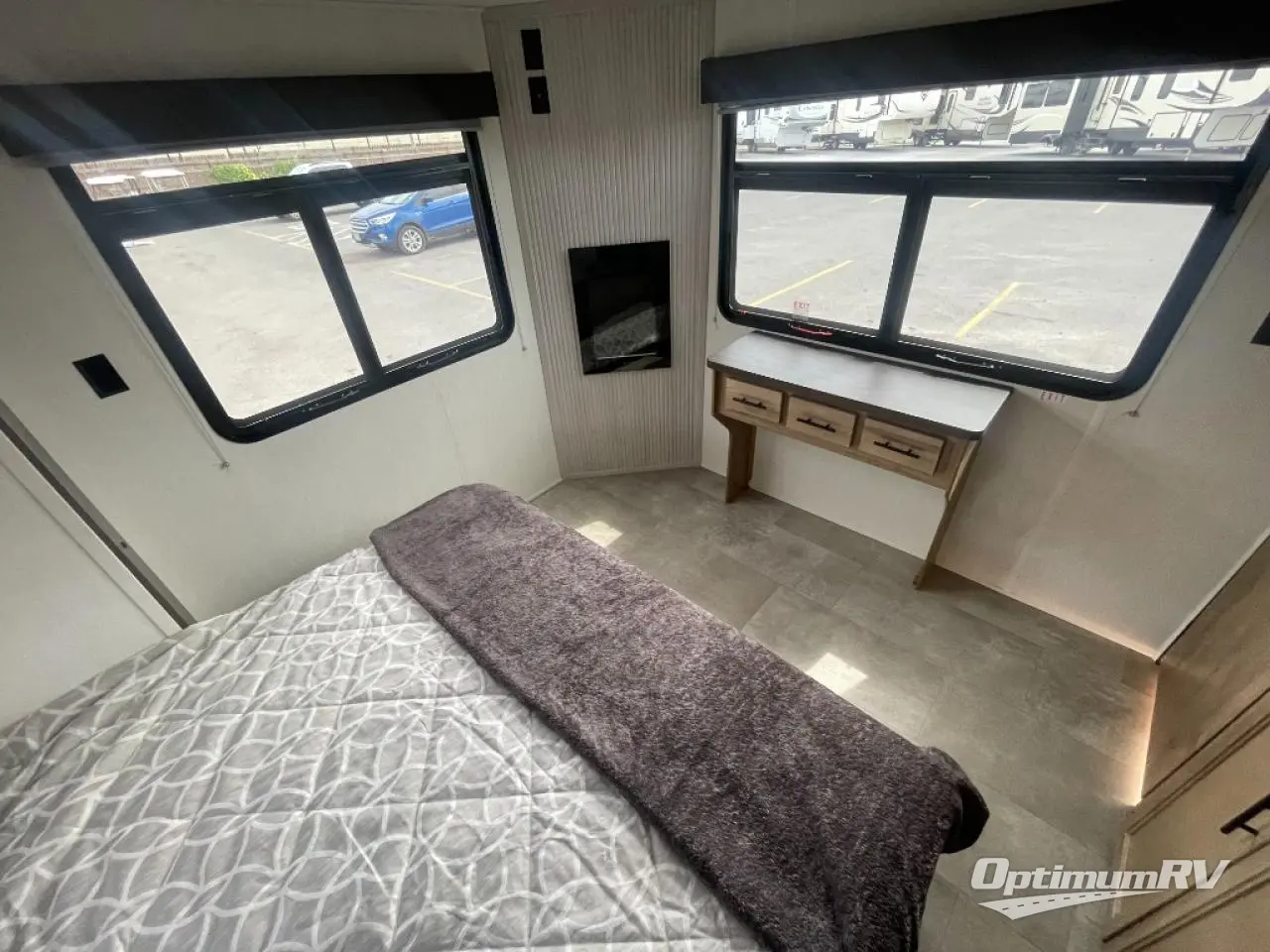 Time spent in this destination trailer will be time well spent! You will appreciate dual entry doors for maximum convenience, plus a spacious full bath that is close by the front private bedroom! Your crew can relax in the middle living area on the L-shaped sofa or on one of the dual lounge chairs. The rear kitchen will be any chef's dream with its island with three stools and all the appliances to create meals each day. This model also features triple slides so you can enjoy more space to relax!