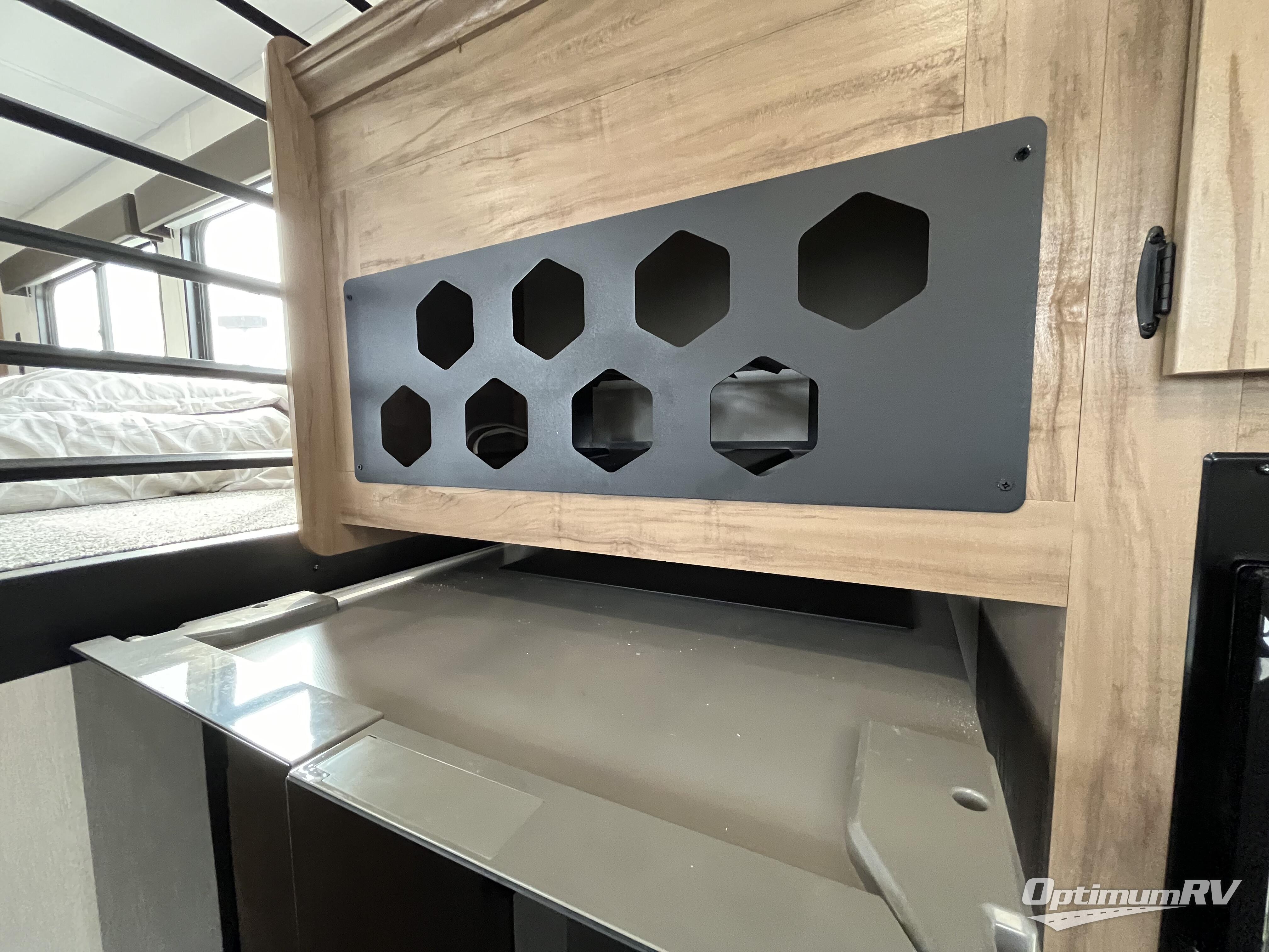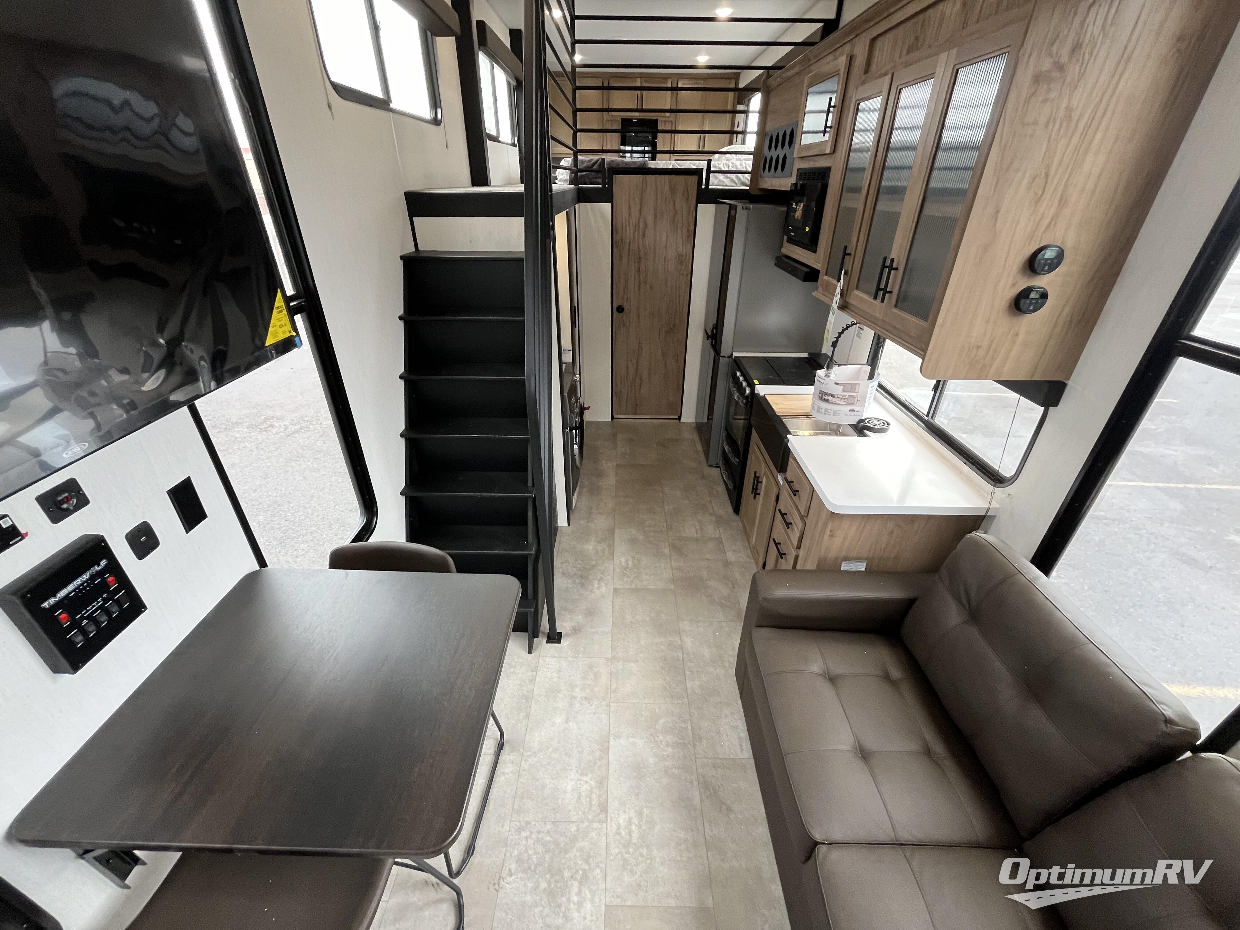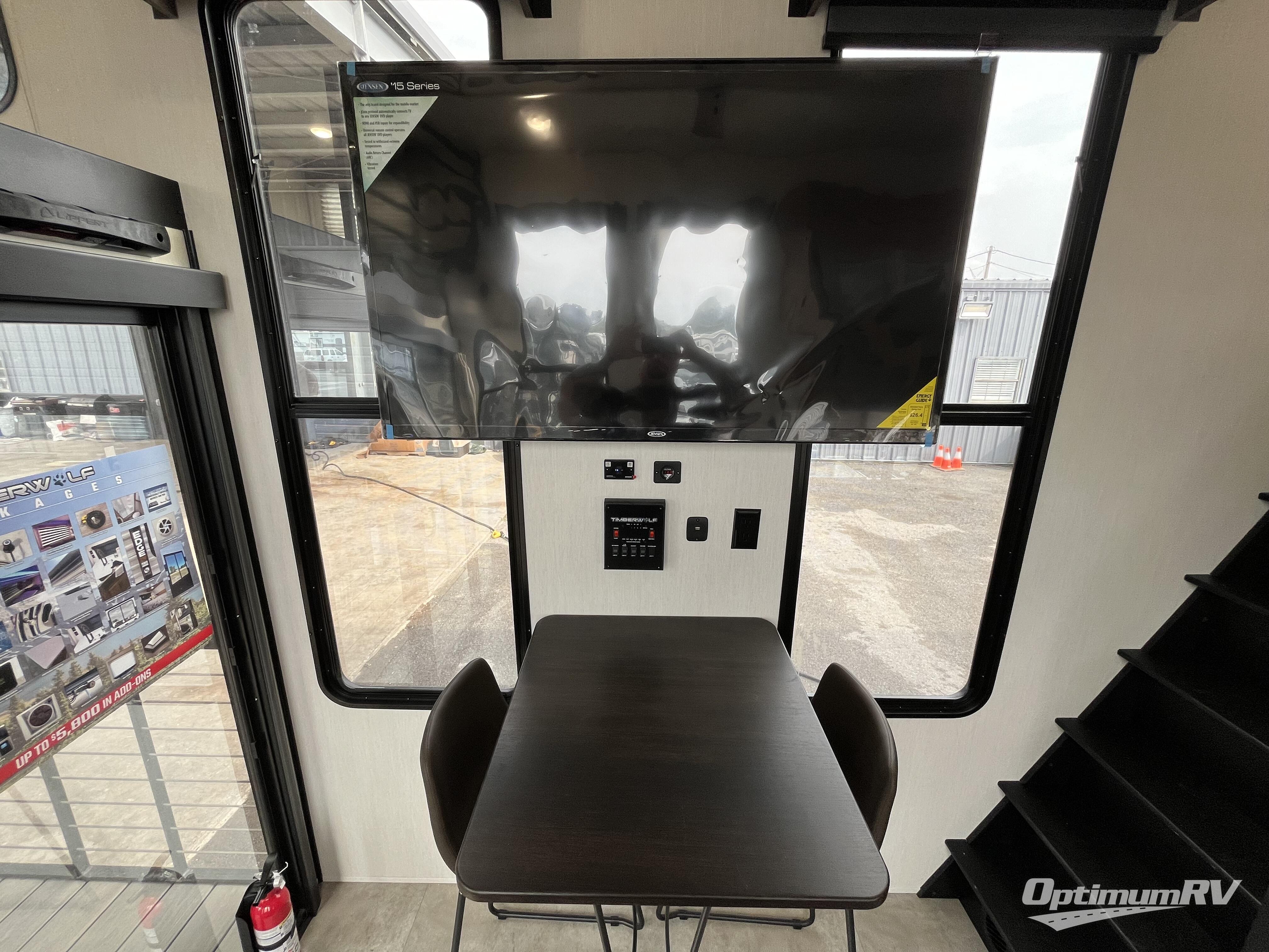 Enjoy comforts of home wherever you decide to roam in a Timberwolf destination trailer by Forest River. The seamless roofing membrane with heat reflectivity and power gear frame technology provide a durable foundation to your RV. You will also appreciate the exclusive solar thermo controlled reflective tinted safety glass windows, tire pressure monitors, and an on-demand tankless water heater to make extended stays easier than ever. Inside, the night shades will provide your crew with privacy, while the LED lights illuminate your space. There are also seamless countertops, along with a premium bedding ensemble and comforter, USB charging stations, a supersized central A/C unit, and many more comforts!