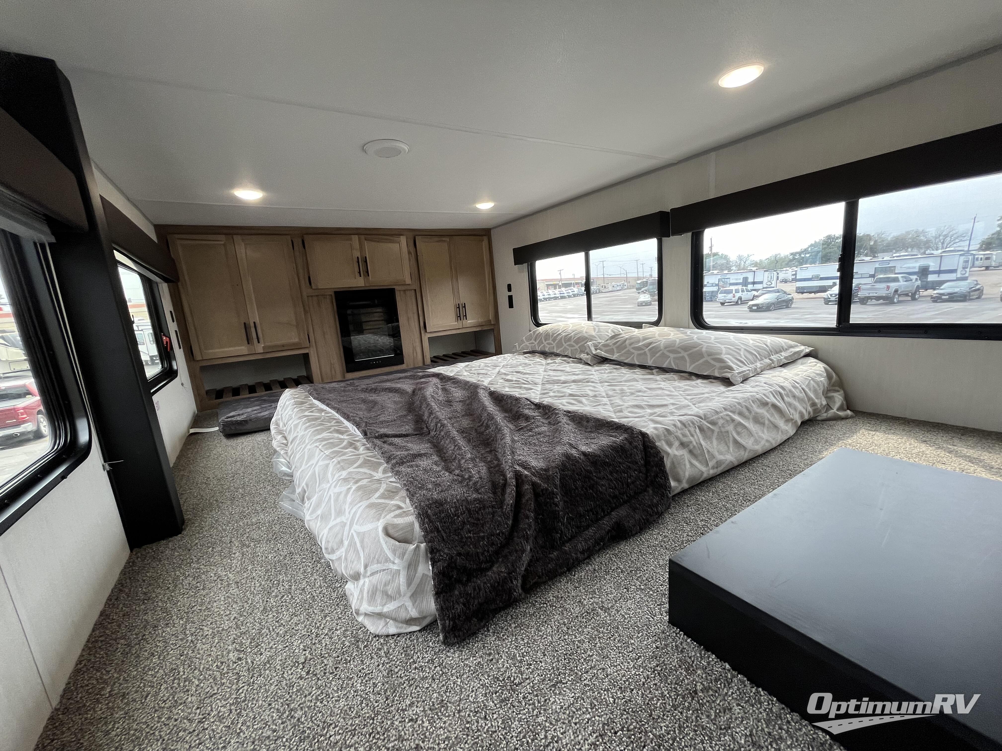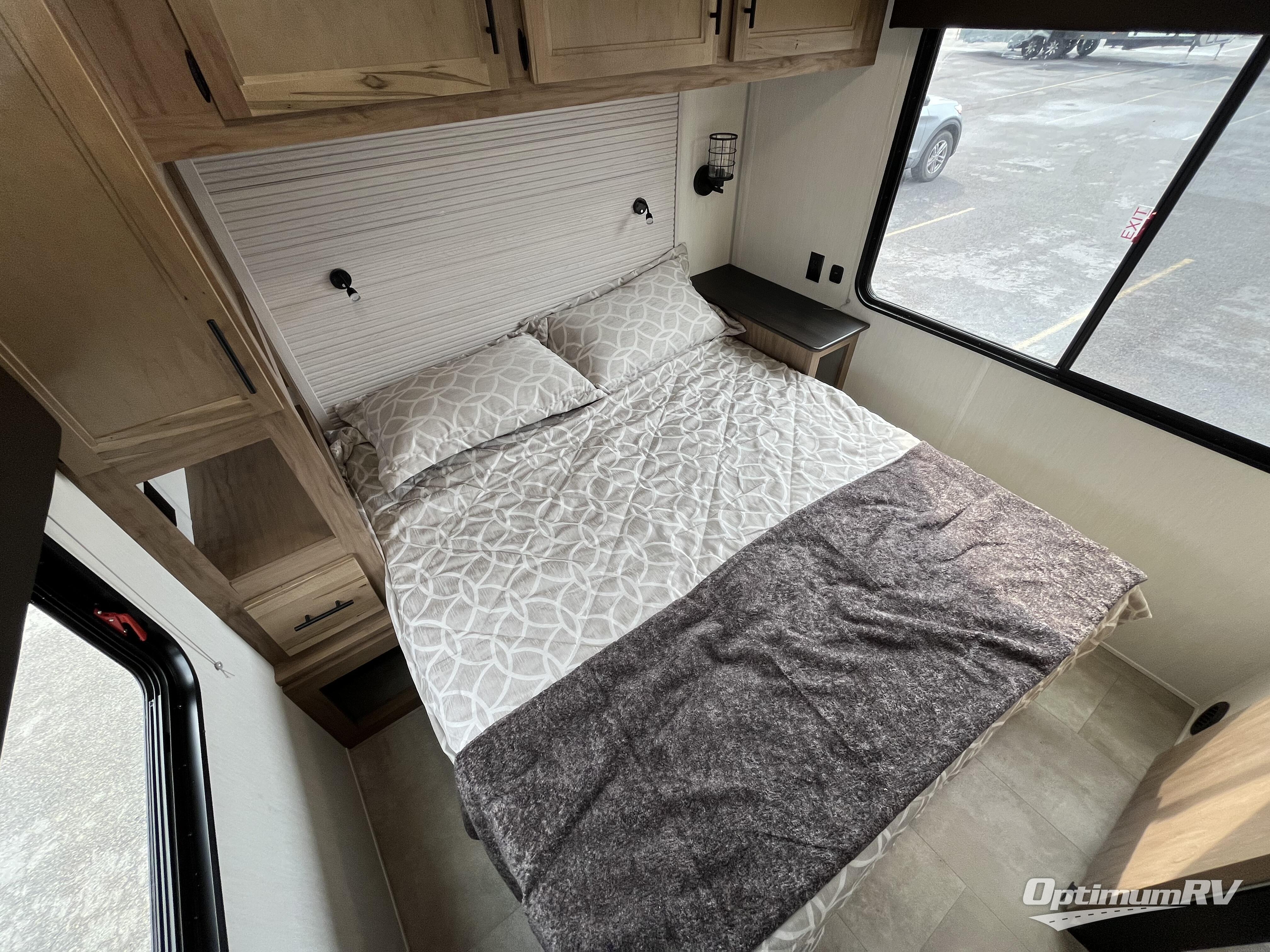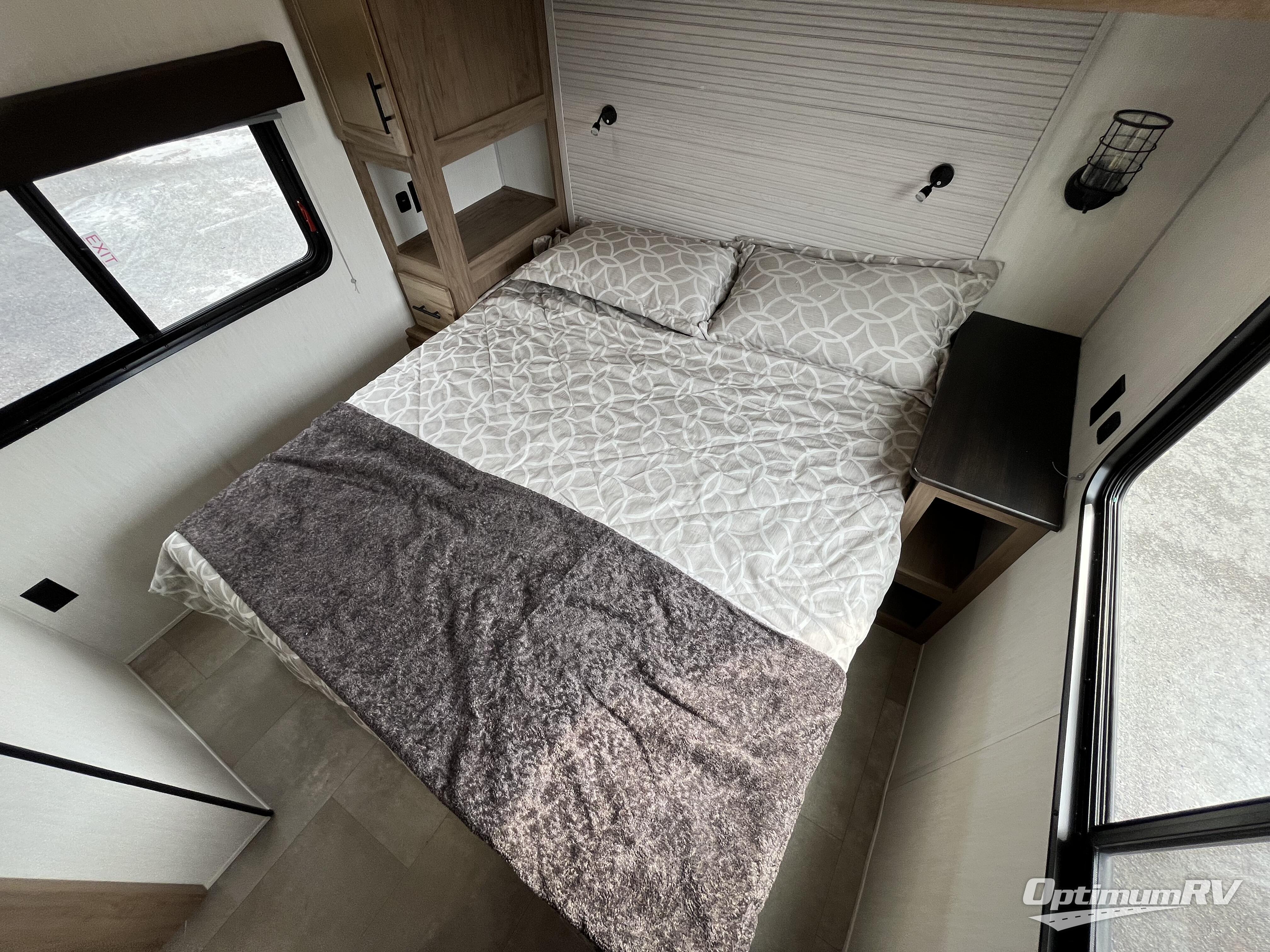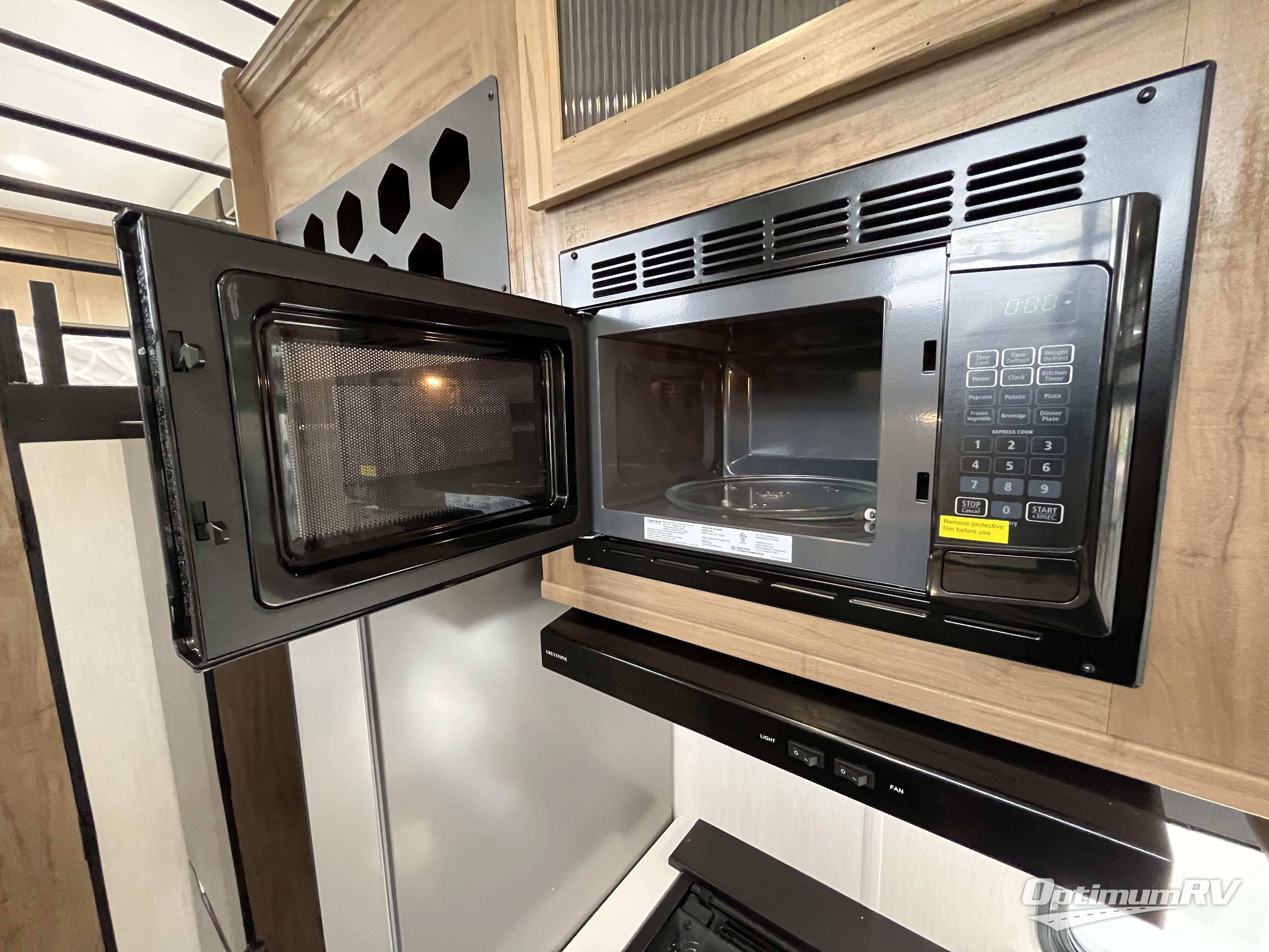 Enjoy comforts of home wherever you decide to roam in a Timberwolf destination trailer by Forest River. The seamless roofing membrane with heat reflectivity and power gear frame technology provide a durable foundation to your RV. You will also appreciate the exclusive solar thermo controlled reflective tinted safety glass windows, tire pressure monitors, and an on-demand tankless water heater to make extended stays easier than ever. Inside, the night shades will provide your crew with privacy, while the LED lights illuminate your space. There are also seamless countertops, along with a premium bedding ensemble and comforter, USB charging stations, a supersized central A/C unit, and many more comforts!