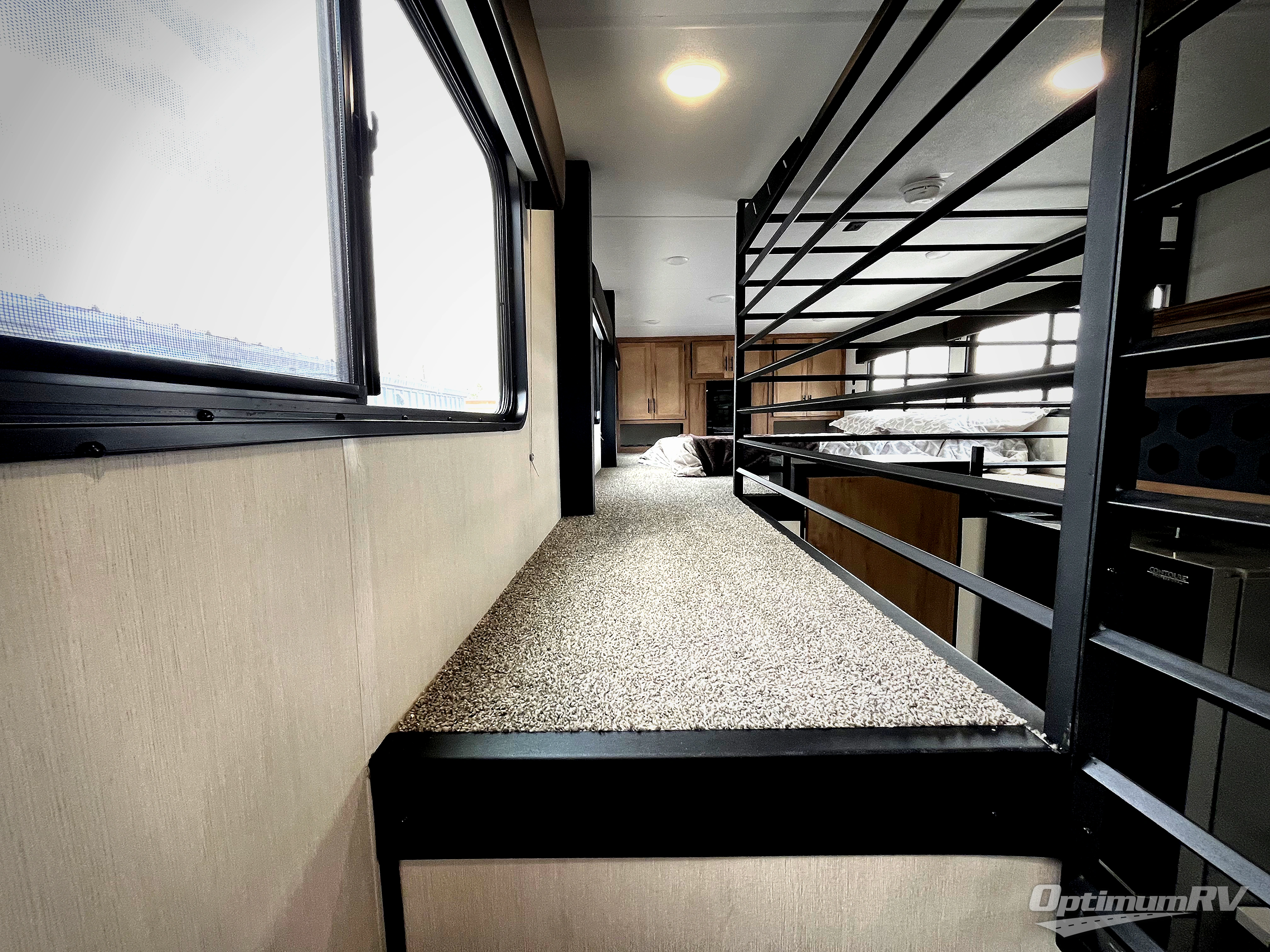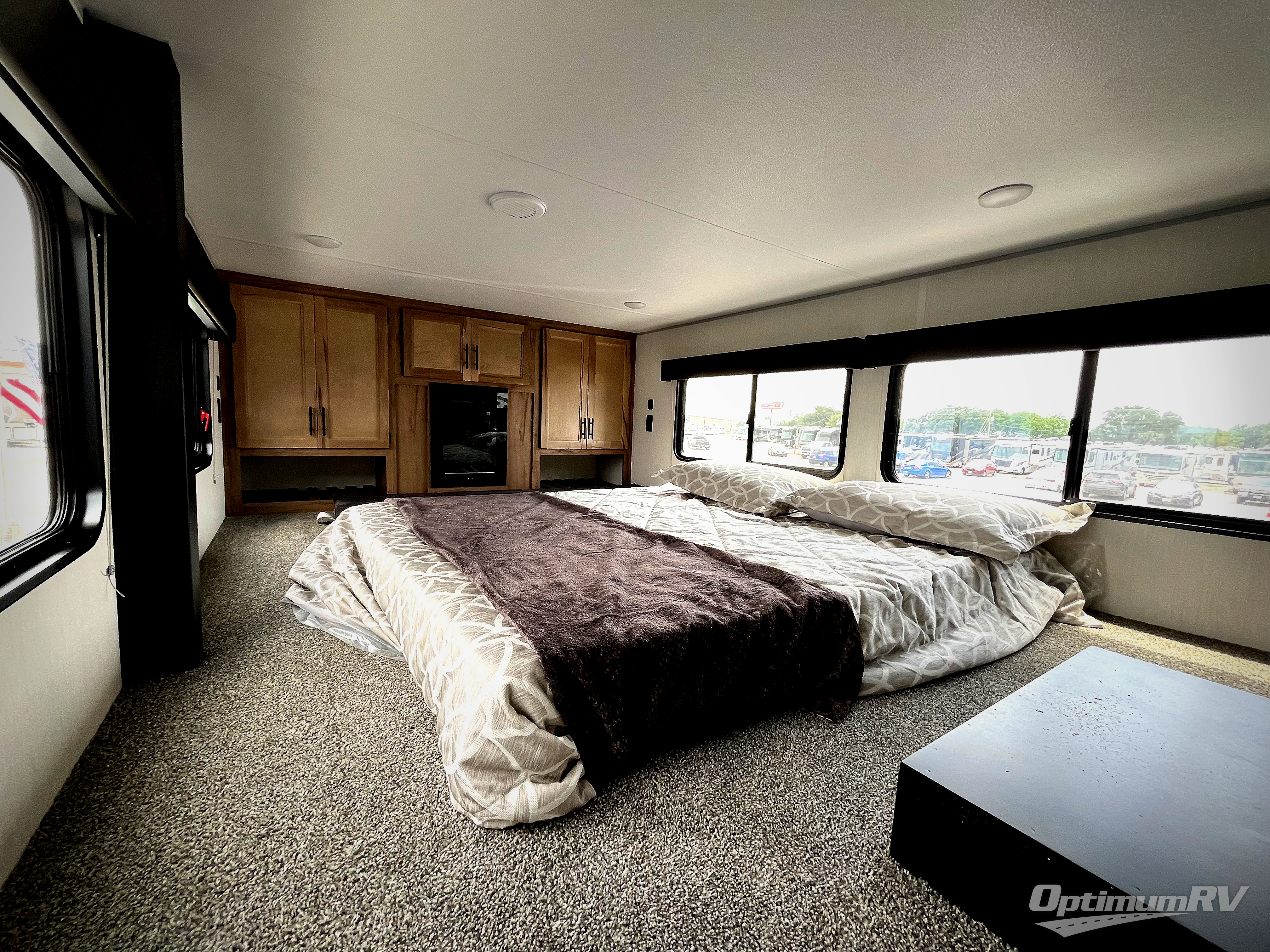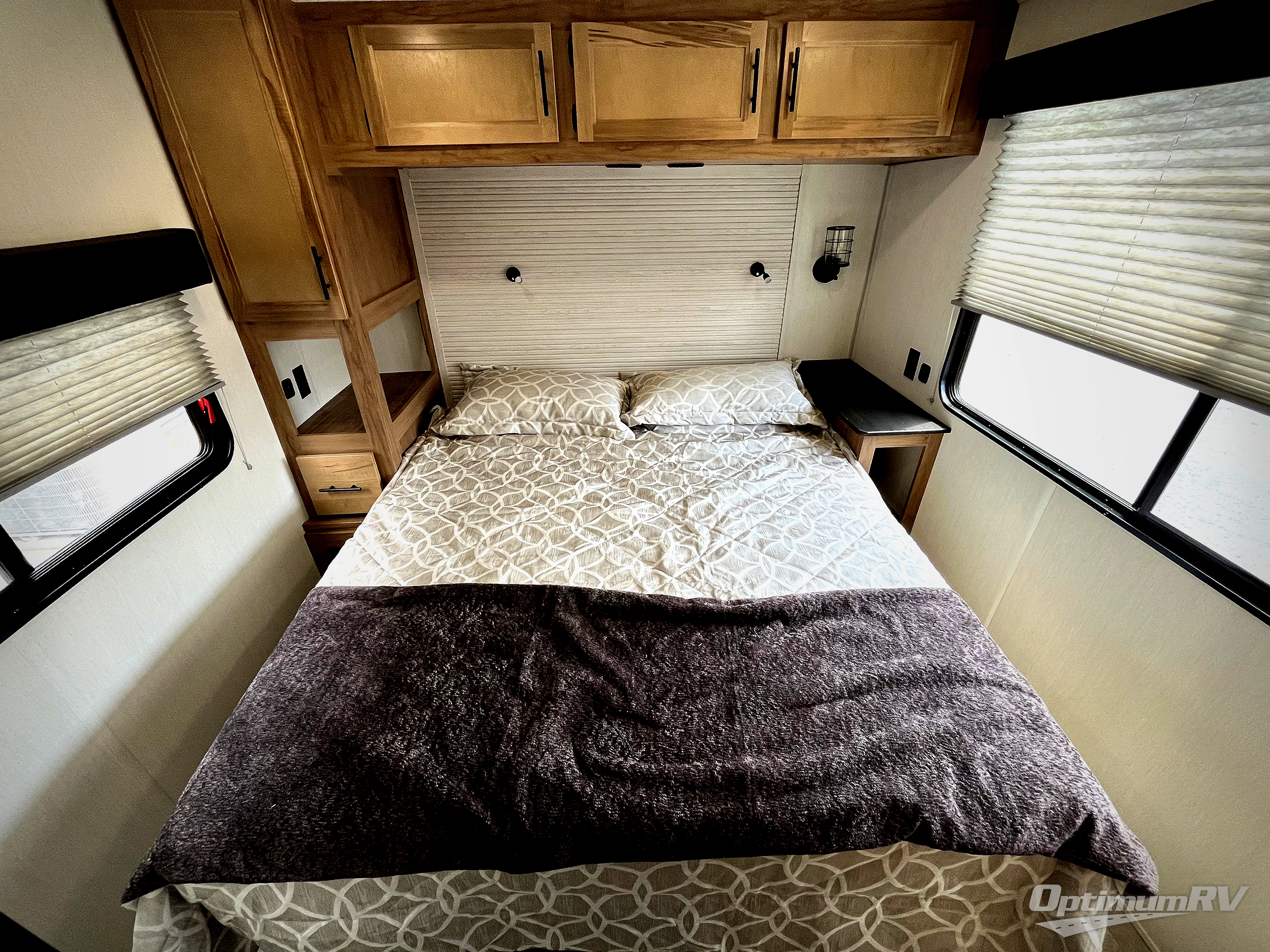 Enjoy comforts of home wherever you decide to roam in a Timberwolf destination trailer by Forest River. The seamless roofing membrane with heat reflectivity and power gear frame technology provide a durable foundation to your RV. You will also appreciate the exclusive solar thermo controlled reflective tinted safety glass windows, tire pressure monitors, and an on-demand tankless water heater to make extended stays easier than ever. Inside, the night shades will provide your crew with privacy, while the LED lights illuminate your space. There are also seamless countertops, along with a premium bedding ensemble and comforter, USB charging stations, a supersized central A/C unit, and many more comforts!