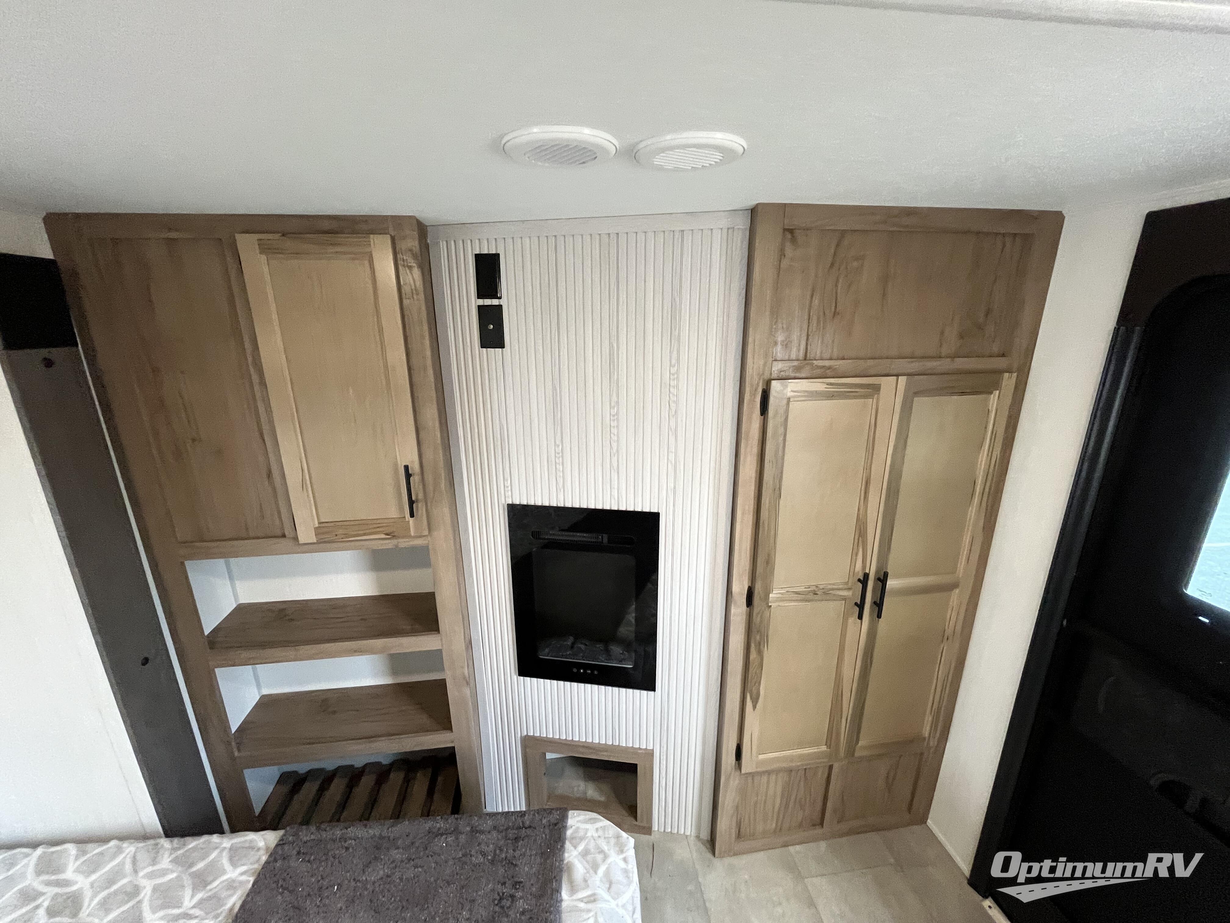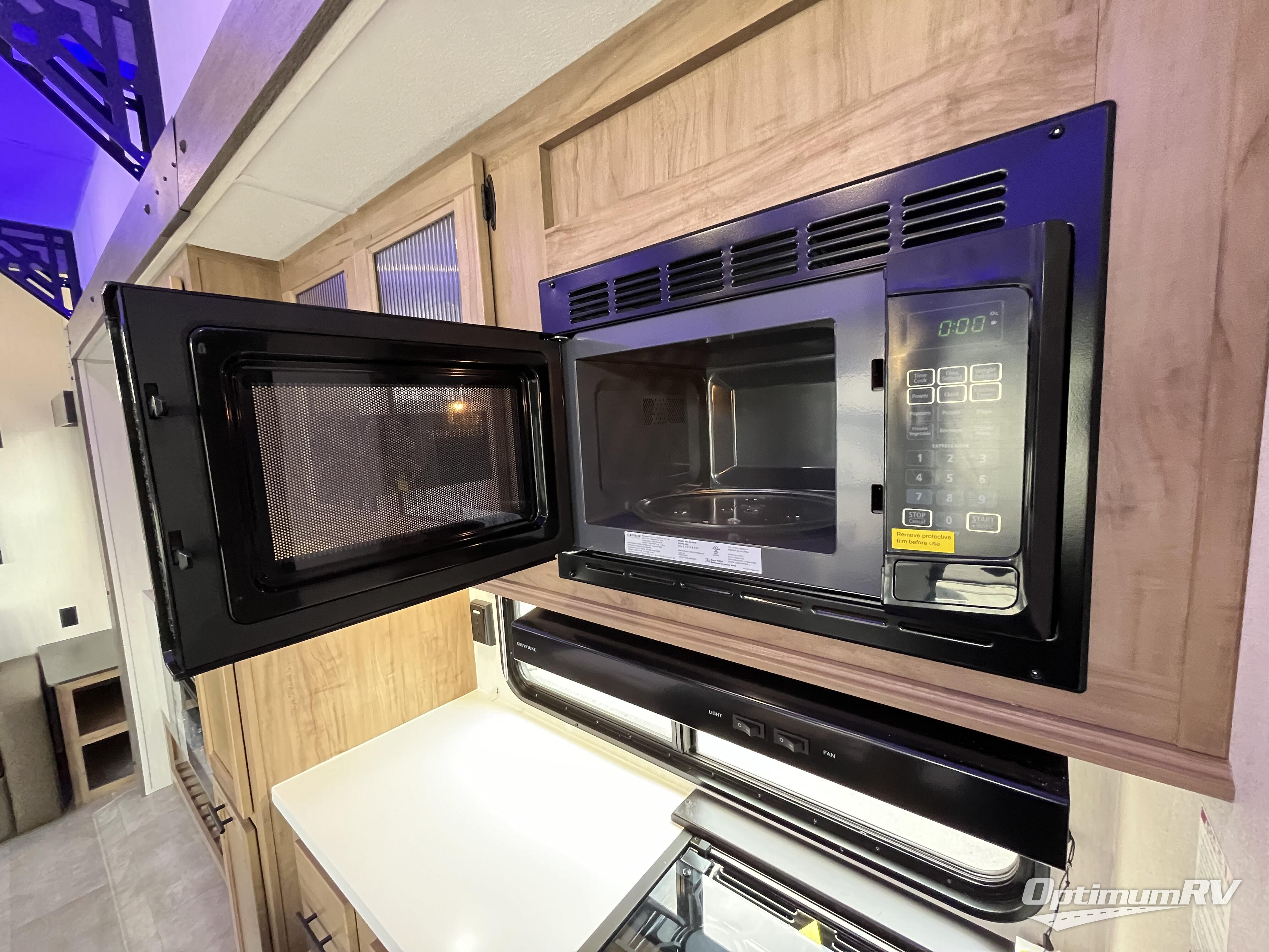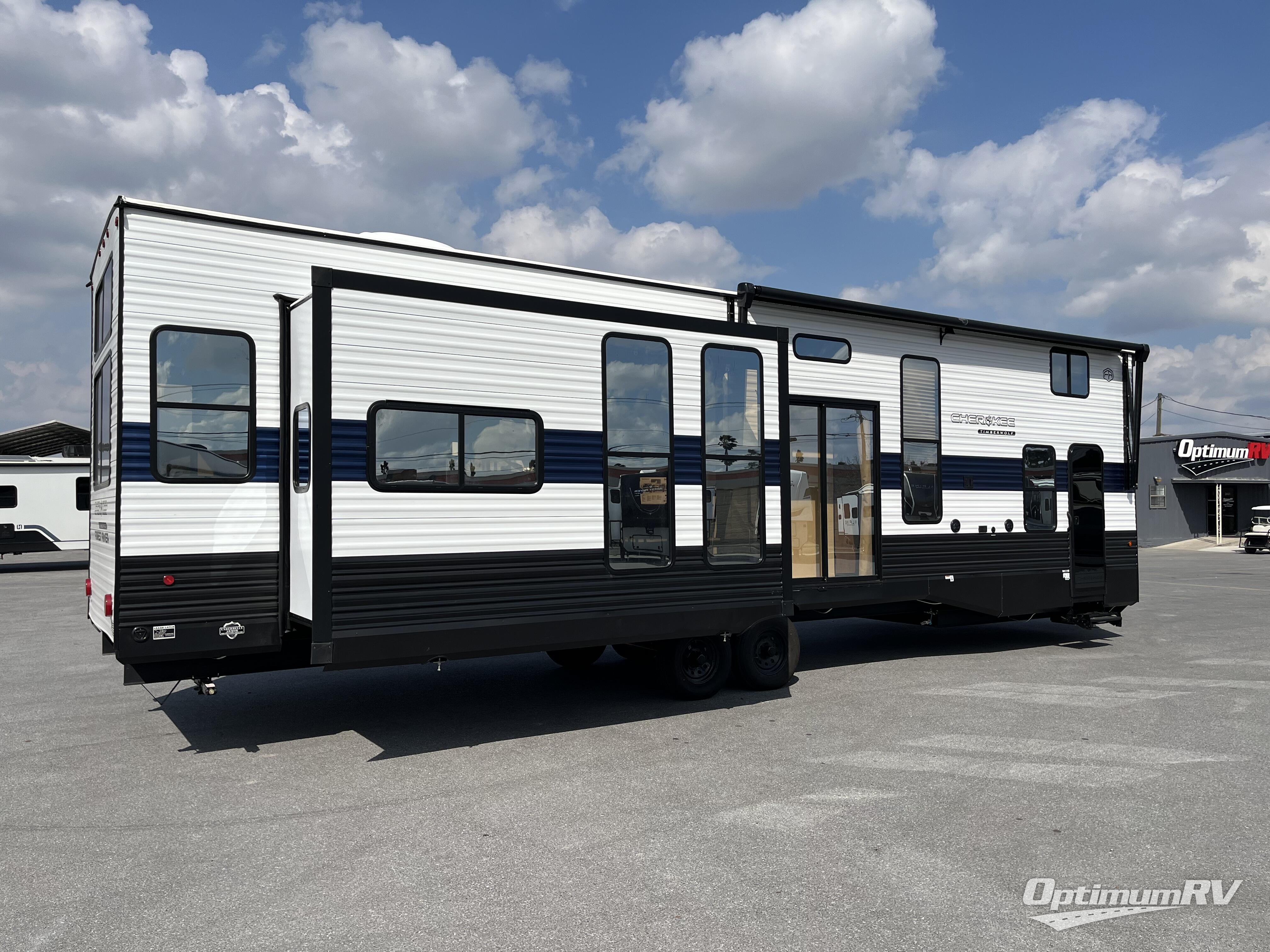Enjoy comforts of home wherever you decide to roam in a Timberwolf destination trailer by Forest River. The seamless roofing membrane with heat reflectivity and power gear frame technology provide a durable foundation to your RV. You will also appreciate the exclusive solar thermo controlled reflective tinted safety glass windows, tire pressure monitors, and an on-demand tankless water heater to make extended stays easier than ever. Inside, the night shades will provide your crew with privacy, while the LED lights illuminate your space. There are also seamless countertops, along with a premium bedding ensemble and comforter, USB charging stations, a supersized central A/C unit, and many more comforts!