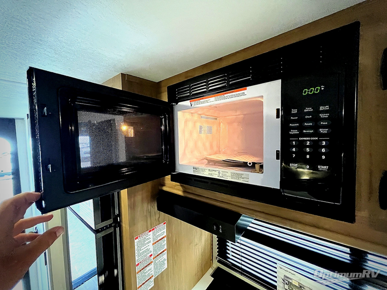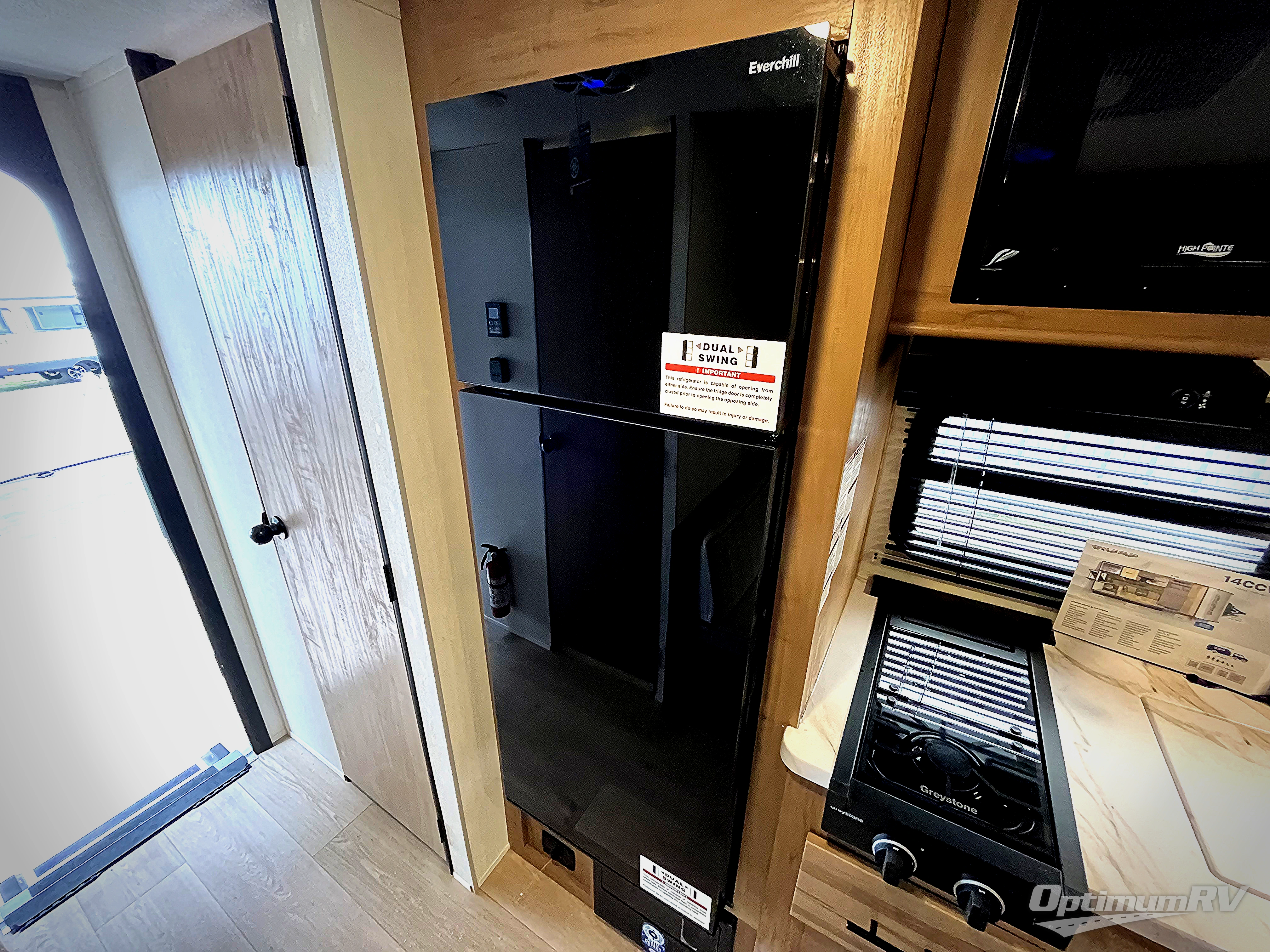 There are lots of features packed into this 19' travel trailer! The rear entry design creates a split bathroom for one person to use the private toilet while another freshens up in the private shower. You can prepare your best home cooked meals with the high output cooktop, the 12V high efficiency refrigerator, and a sink to make clean up easier, plus you can comfortably enjoy your meals at the booth dinette with a TV mount location. The front queen bed provides a comfortable place to lay your head at night. Store your outdoor gear in the outside storage area, rinse the mud off your feet with the outside shower, and watch the big game outdoors with the outside TV mount!