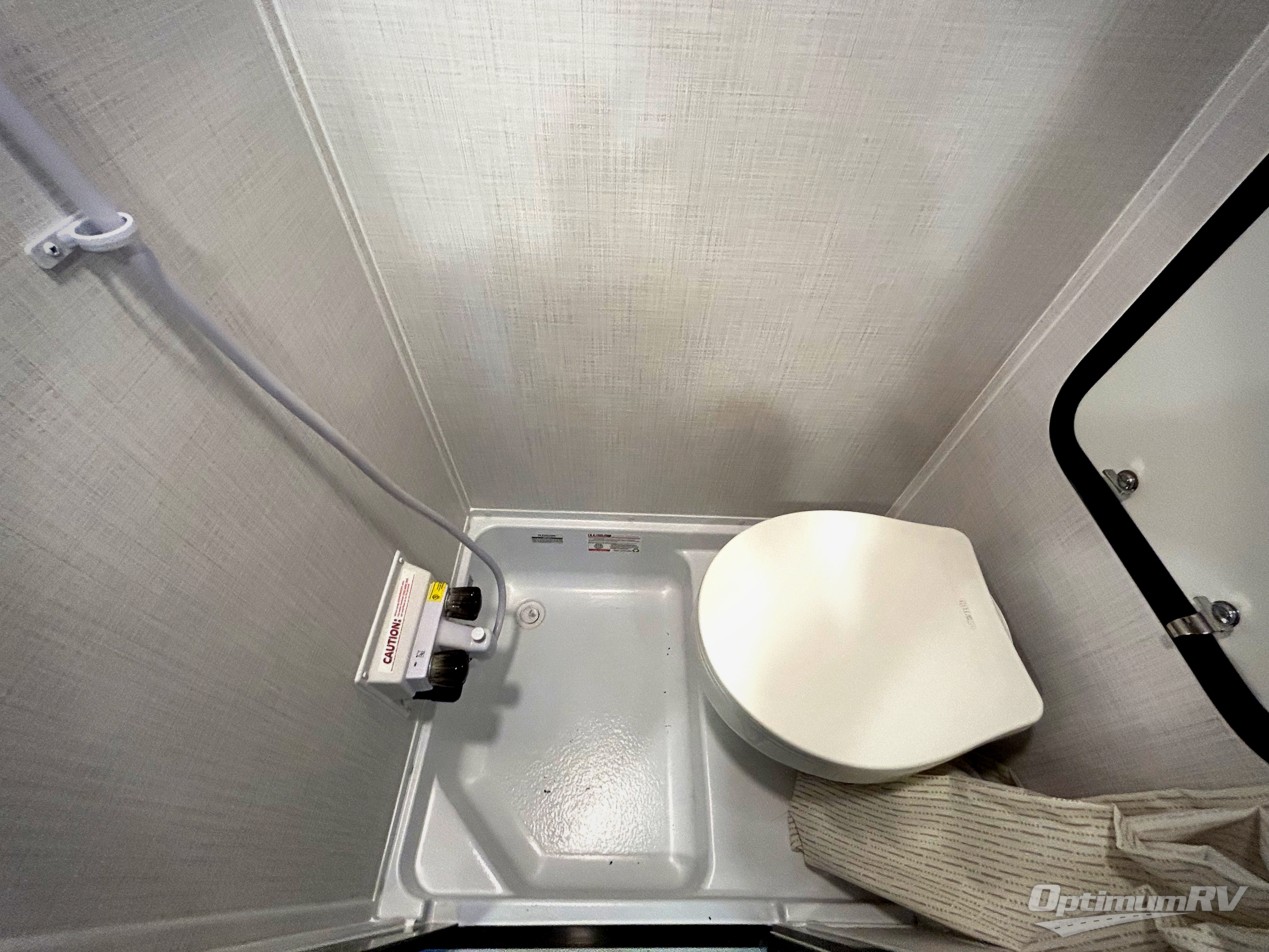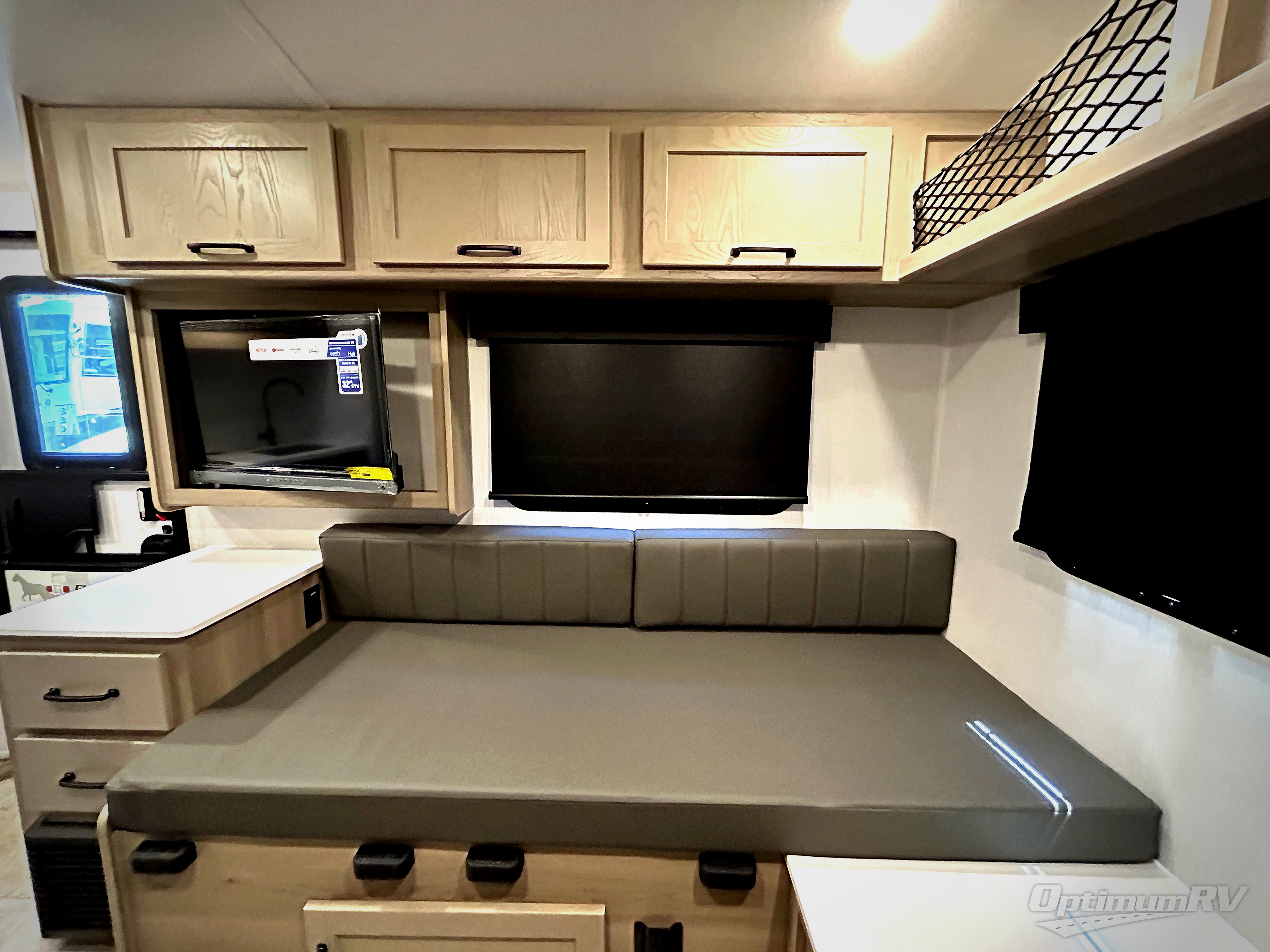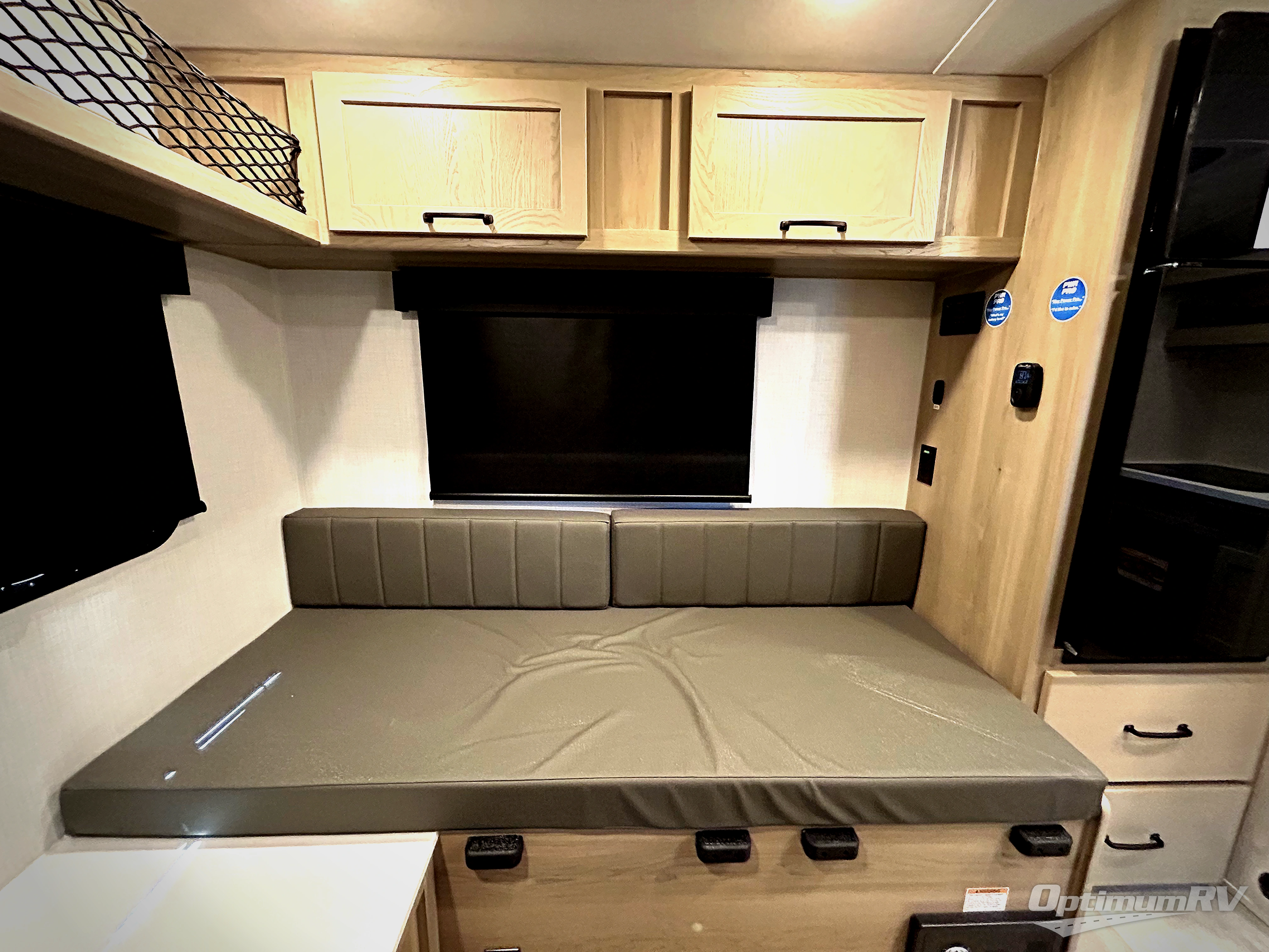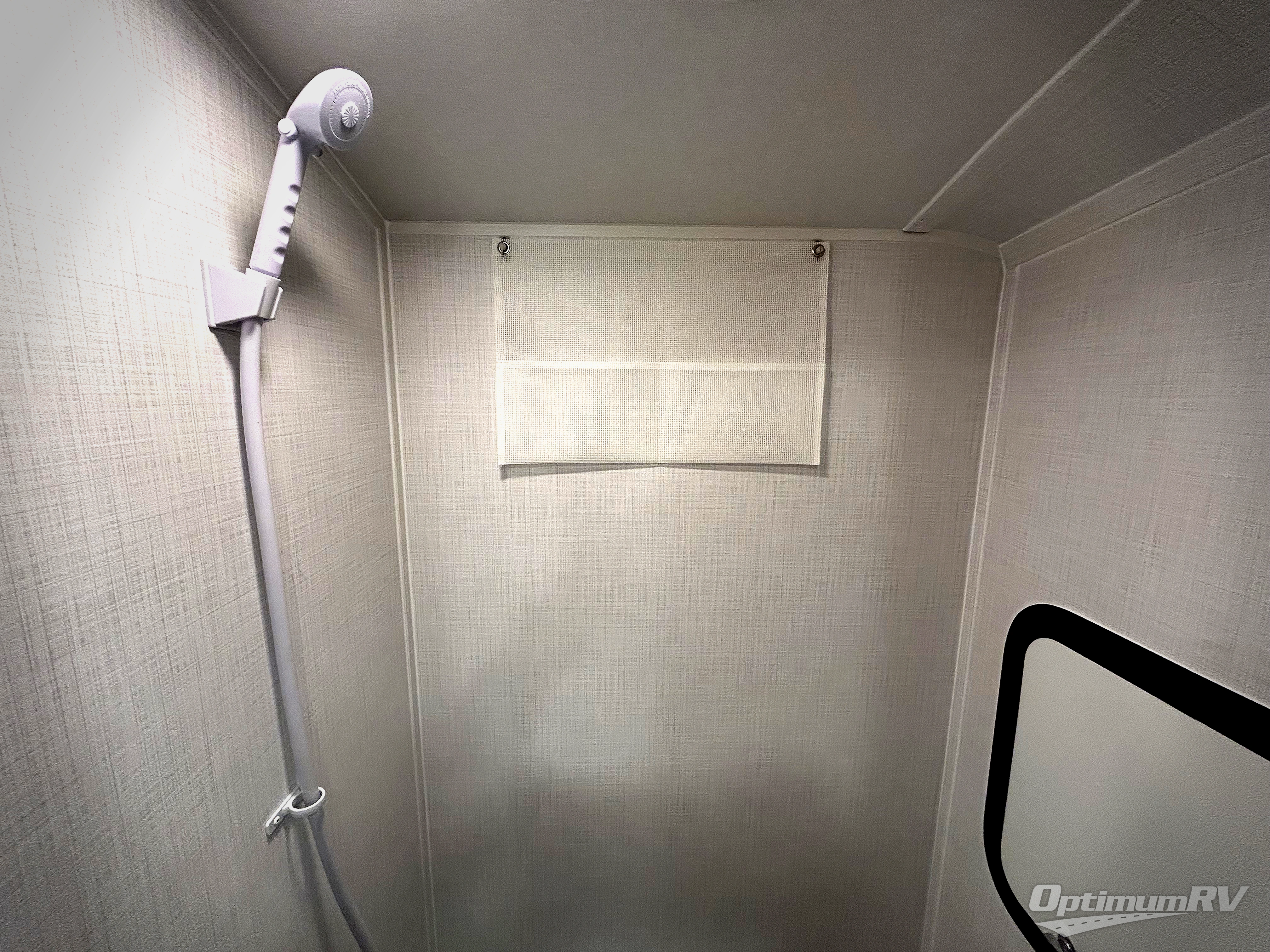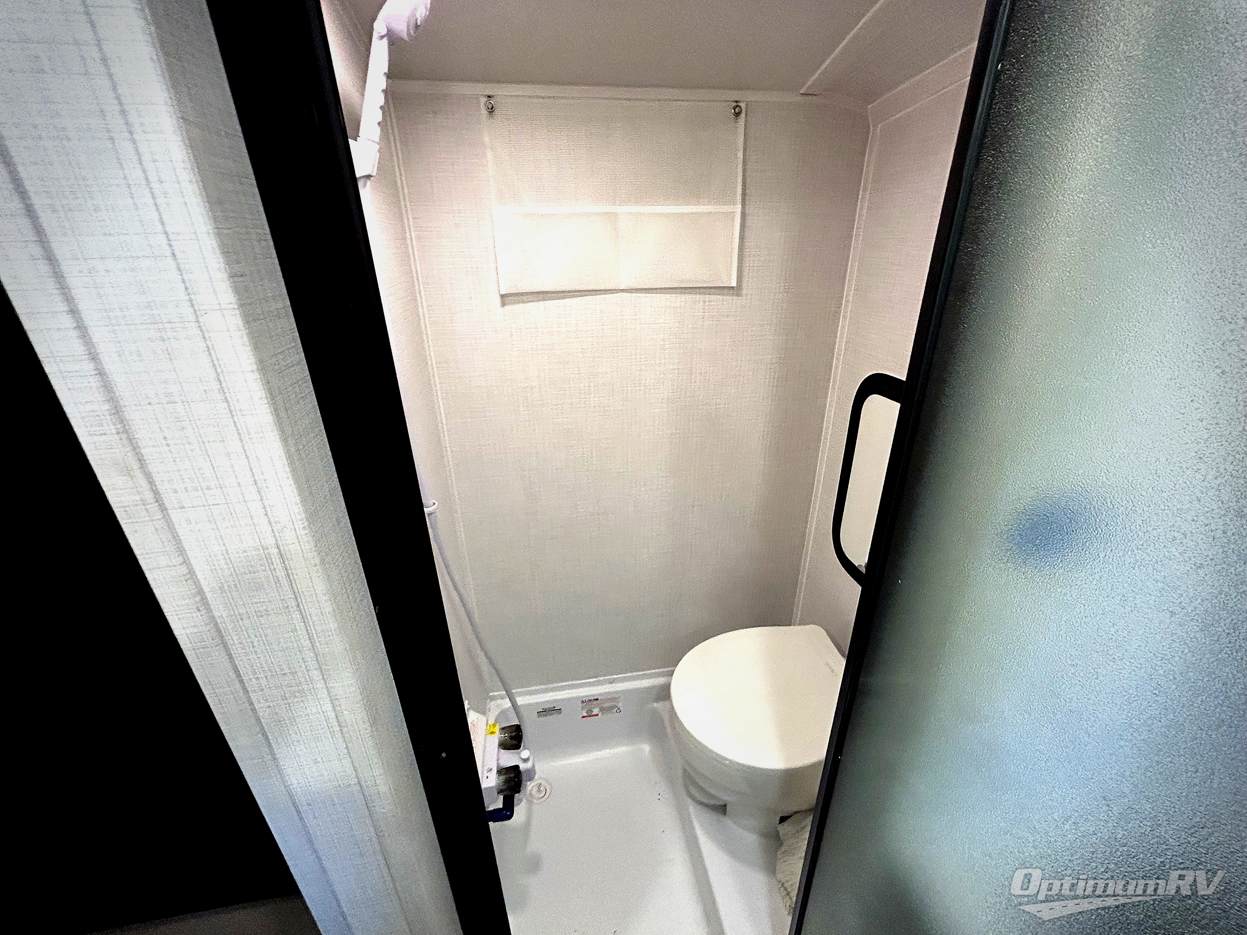It's time to hit the road in this small, yet walkable travel trailer that is versatile to your needs and offers everything you will want to stay comfortable at a campground or off-grid. You can make meals using the cooktop and microwave up front, and store your cold items in the 12V refrigerator. Take turns getting cleaned up in the wet bath so you can skip the public facilities, and store your clothing in the overhead cabinets. You can watch the 32" TV while dining or sleeping on the twin beds that offer a table top to help you convert this area into a king bed. And the 10' power awning will give you a place to hang out while you use the outdoor griddle.