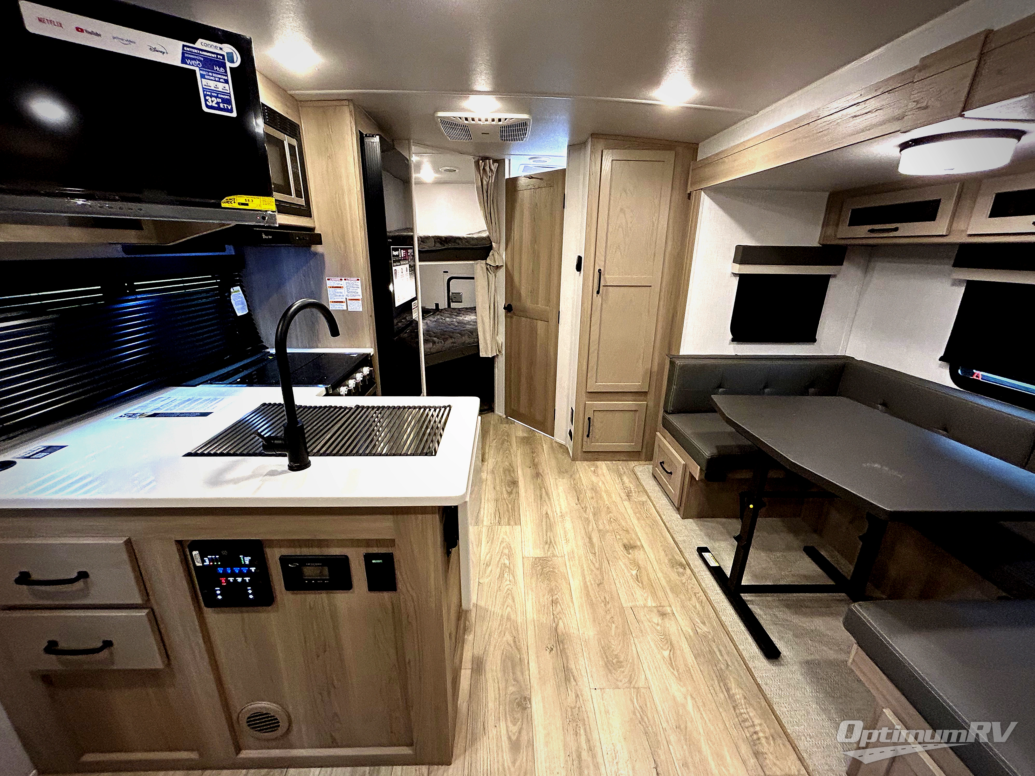Load up your family of eight and head out to the campground of your choice with this Flagstaff Micro Lite travel trailer in tow! The kids will enjoy the double-size bunks so that they can invite their friends or cousins. This unit features a single slide with a U-shaped dinette so you can gather around for family game night. And the dinette can be replaced by an optional theater seat or optional hide-a-bed sofa, depending on your needs! Relax on the sofa and visit with friends before converting the sofa into a Murphy bed. Everyone will appreciate having a full bathroom with a shower skylight above the shower for some extra sunlight while getting ready. And don't over look the exterior with its outside kitchen, 18' power awning, pass-through storage, and more!