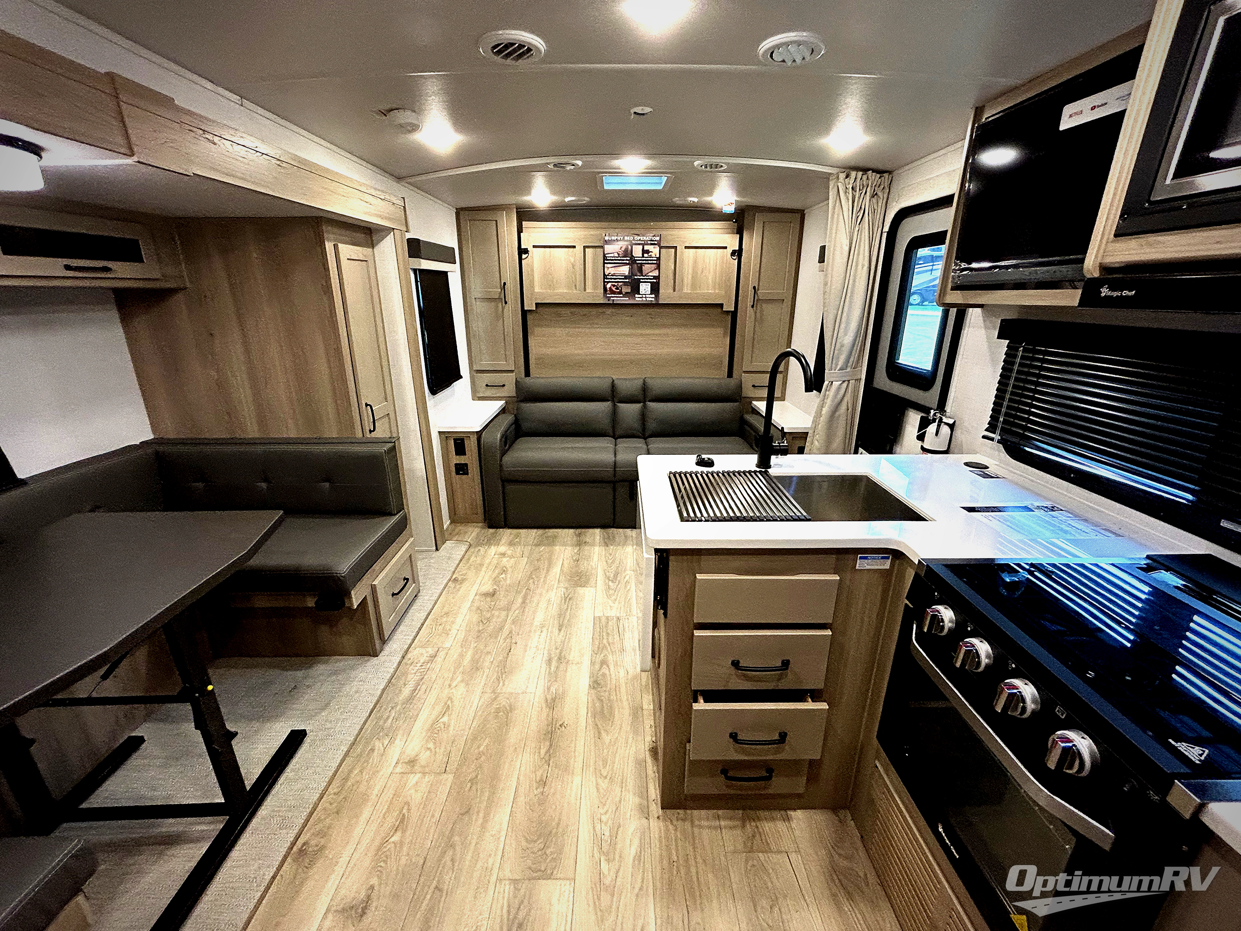 Load up your family of eight and head out to the campground of your choice with this Flagstaff Micro Lite travel trailer in tow! The kids will enjoy the double-size bunks so that they can invite their friends or cousins. This unit features a single slide with a U-shaped dinette so you can gather around for family game night. And the dinette can be replaced by an optional theater seat or optional hide-a-bed sofa, depending on your needs! Relax on the sofa and visit with friends before converting the sofa into a Murphy bed. Everyone will appreciate having a full bathroom with a shower skylight above the shower for some extra sunlight while getting ready. And don't over look the exterior with its outside kitchen, 18' power awning, pass-through storage, and more!