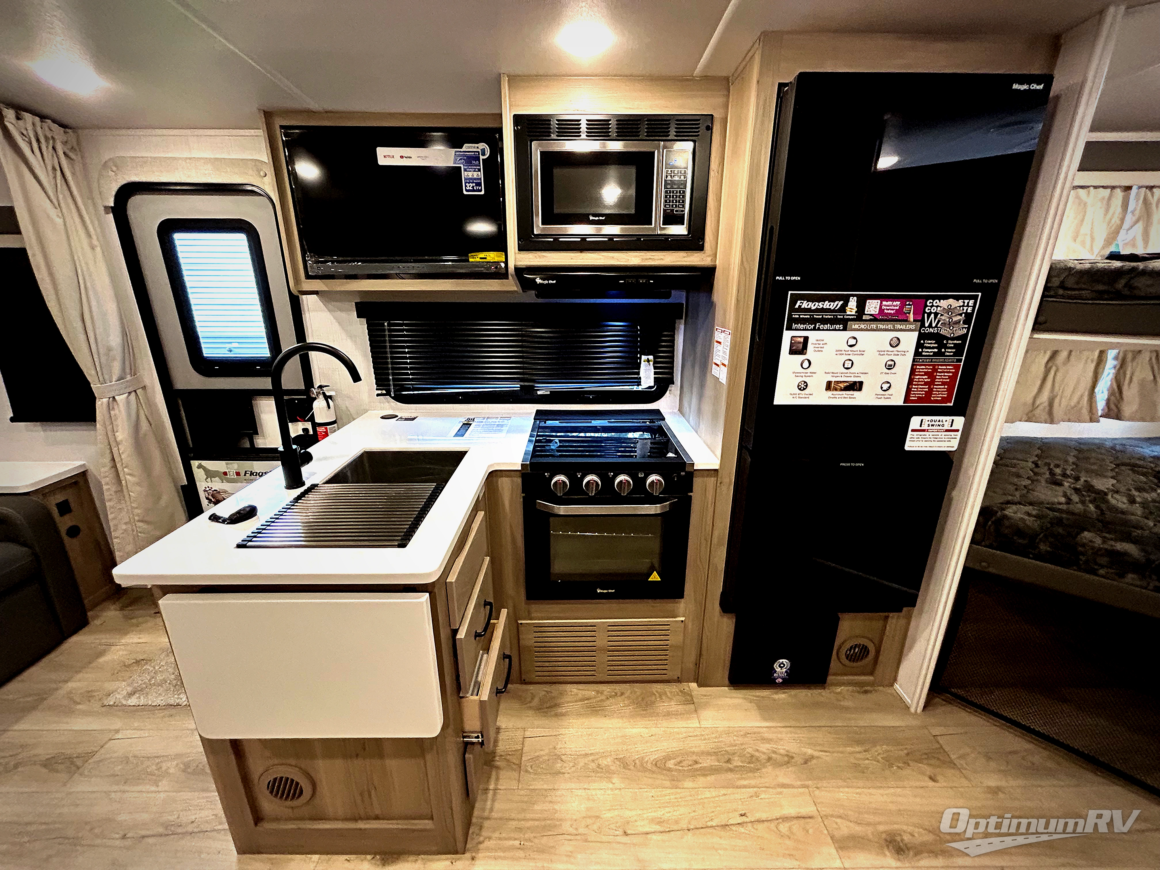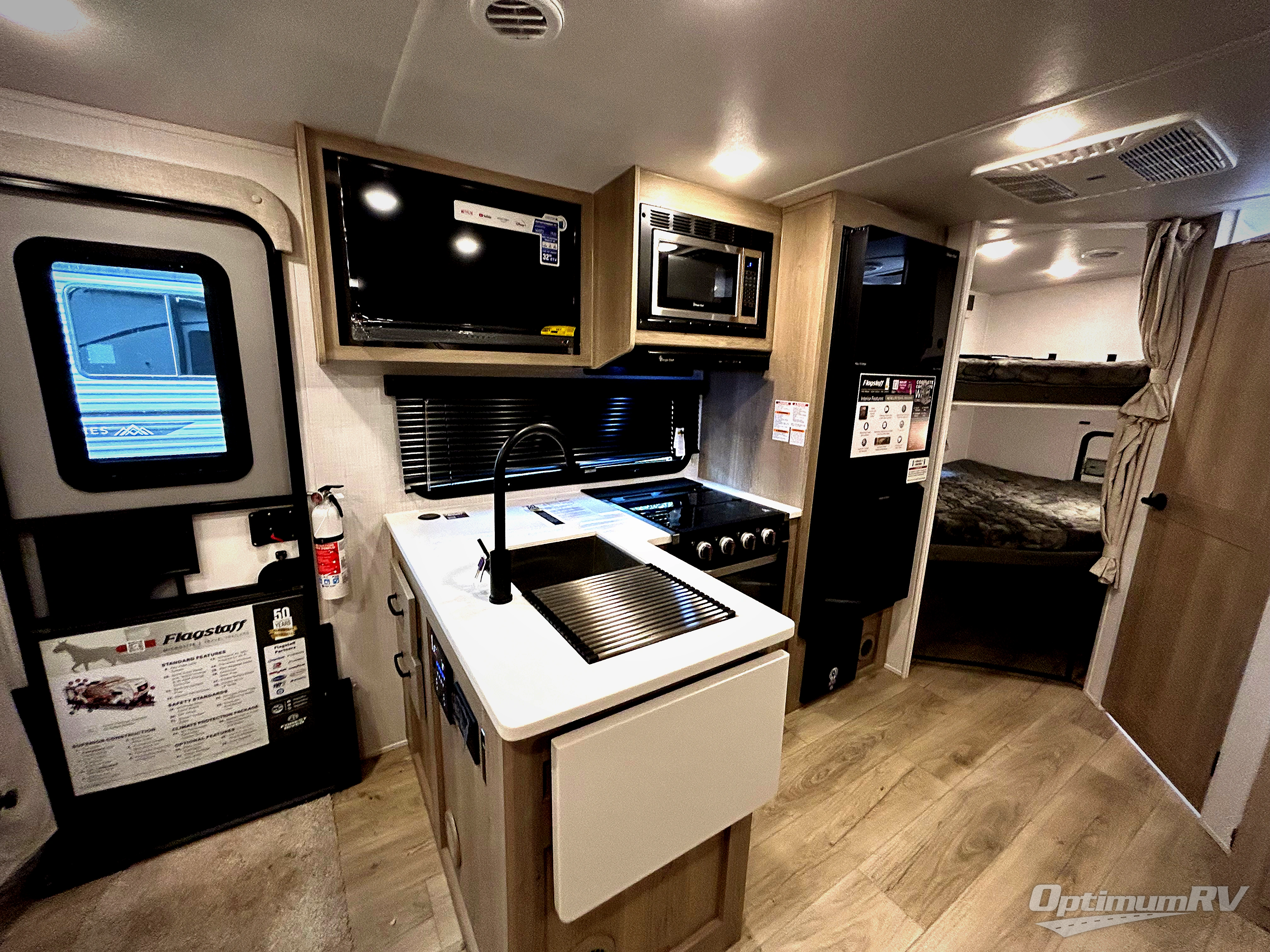 With any Flagstaff Micro Lite travel trailer by Forest River you will enjoy lightweight towing, durable construction, and added interior comforts to make each trip memorable! Each model features a torsion axle, Rubber-Ryde suspension, nitrogen filled, Goodyear Endurance tires, and easy lube axles with Nev-R-Adjust brakes for smooth towing from home to campground. The 6-sided aluminum framed construction provides a strong foundation so you can enjoy your RV for years to come, plus electronically controlled heated holding tanks and an enclosed underbelly will let you camp all year long. Head inside to find hybrid woven flooring in the slide outs, Sedona wood cabinetry, solid surface kitchen countertops, and many more amenities. These travel trailers also include exterior conveniences for hassle-free camping, like the power tongue jack, magnetic compartment door catches, Keyed Alike locks, and rear ladder to name a few!