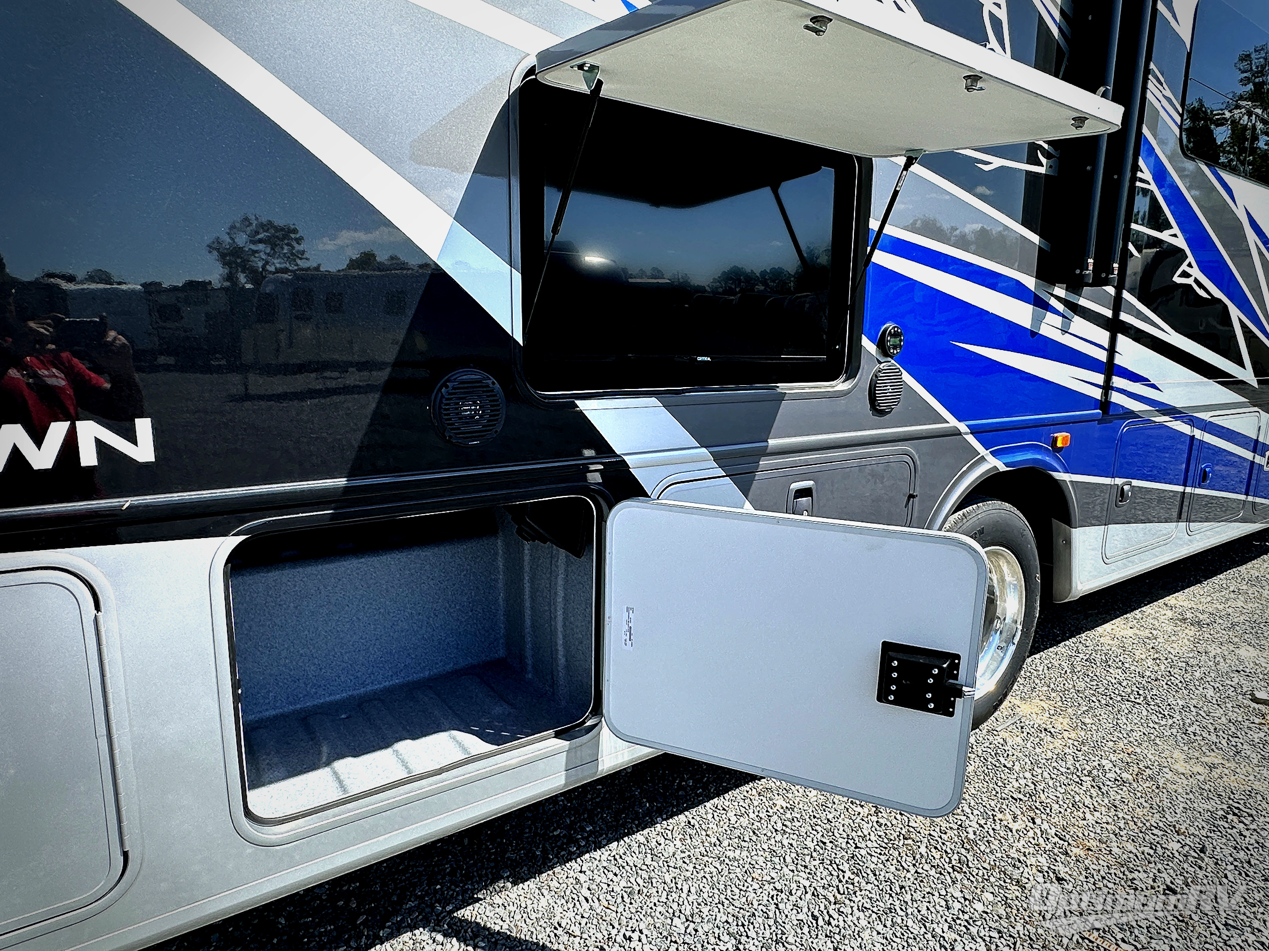 A spacious design and true luxury come together to create these Forest River Georgetown 5 Series Class A gas motorhomes! Their solid surface kitchen countertops, day and night shades throughout, and designer bedspread will have you feeling right at home. The color side and rear cameras help to prevent any dings or bumps while you travel, and the automatic hydraulic leveling jacks will keep your unit leveled where ever you set up. Durable construction consists of a crowned roof, 2" aluminum framed vacuum bonded gel coated sidewalls, plus high density block foam insulation that will allow you to travel in all seasons. You will appreciate the 50 Amp service, two house batteries, and 6,000 watt Yamaha generator to keep you powered up. An outside shower is also included on all models, along with rotocast storage compartments with drains, a power awning, and so much more!